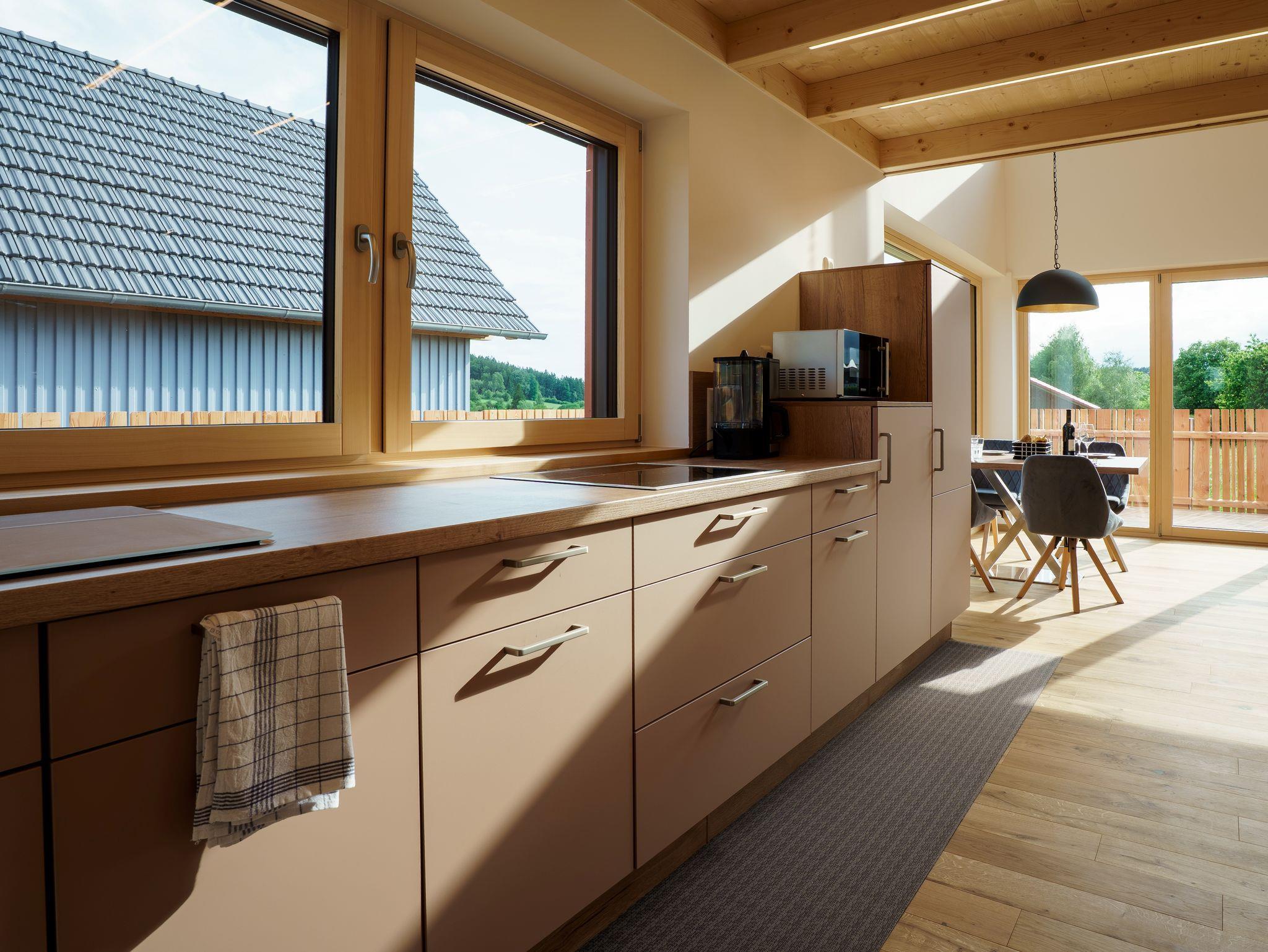 Auf 80?Quadratmetern finden bis zu fünf Personen Platz. Ein gemütliches Elternschlafzimmer mit Boxspringbett befindet sich im Erdgeschoss, zwei weitere Schlafzimmer mit Einzelbetten – eines davon mit zusätzlichem Schlafsessel für ein Kind – liegen im Obergeschoss. Herzstück des Hauses ist der helle Wohn- und Essbereich mit großer Fensterfront, offener Galerie und voll ausgestatteter Küche. Das moderne Bad verfügt über eine begehbare Regendusche, Fußbodenheizung sorgt für behagliche Wärme. Auf der großzügigen Terrasse lädt ein beheizter Außen-Whirlpool zum Entspannen ein – mit Blick auf die stille Natur ringsum.