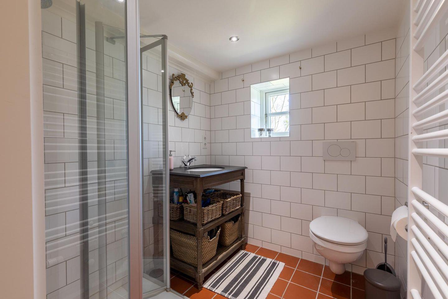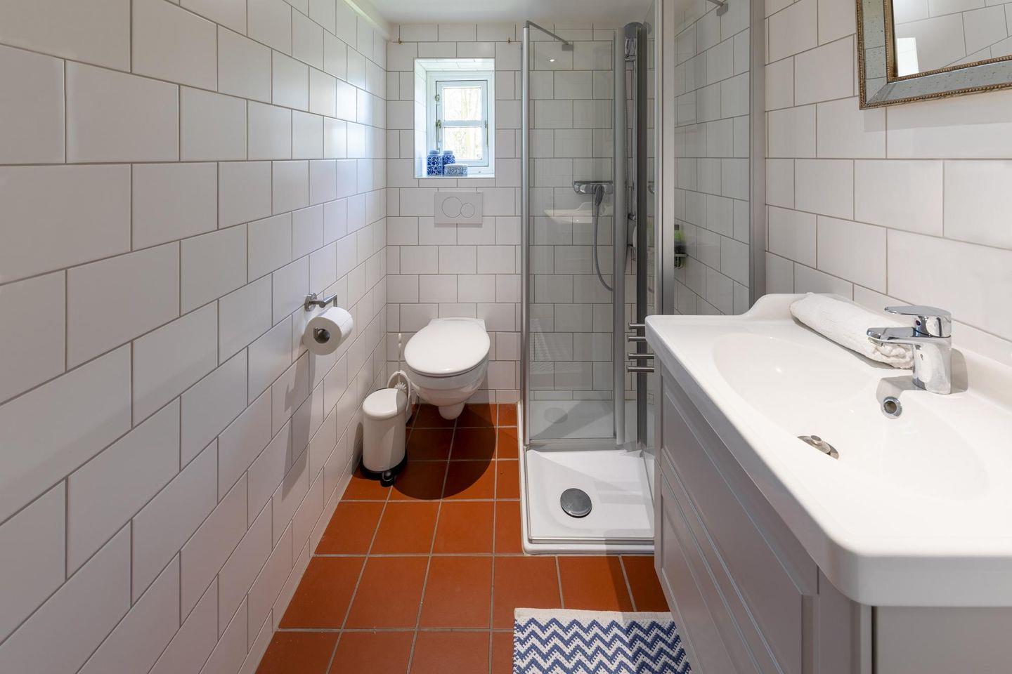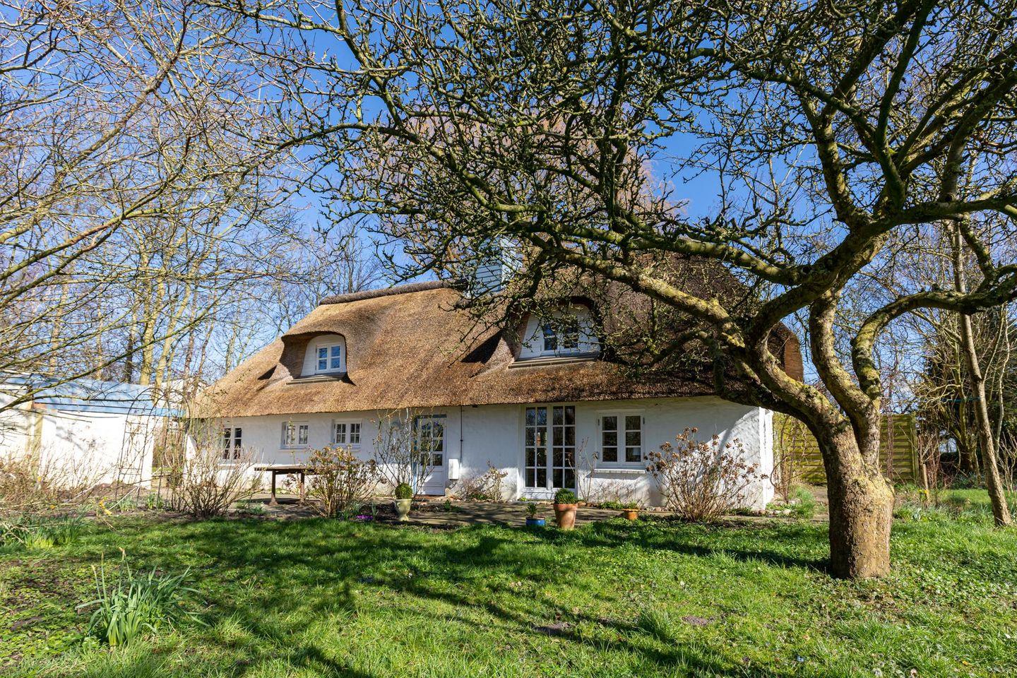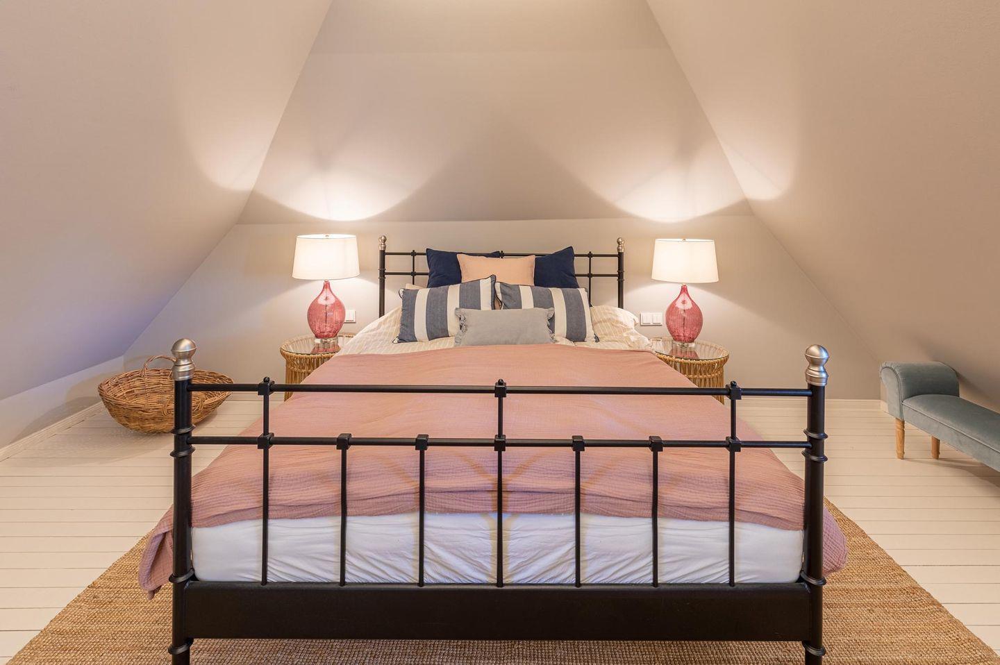 Das liebevoll sanierte Reetdachhaus kombiniert einen gemütlichen Landhausstil mit modernen Elementen. Der offen gestaltete Ess- und Wohnzimmerbereich mit integrierter Küche gestaltet das Erdgeschoss großzügig. Die neue, gut ausgestattete Küche mit Kücheninsel verfügt über ein Cerankochfeld und einen Geschirrspüler. Gleichzeitig erzeugt der gusseiserne, schwedische Ofen im Wohnzimmer eine gemütliche Atmosphäre. Das Erdgeschoss beinhaltet zudem ein Schlafzimmer mit Doppelbett sowie zwei moderne Duschbäder mit Fußbodenheizung. Zwei weitere Doppelbettschlafzimmer befinden sich im Obergeschoss. Alle Betten im Haus haben eine Breite von 1,60 m.