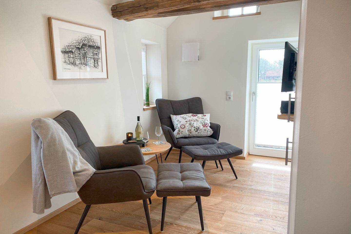 Der Hof umfasst sechs individuell gestaltete Maisonettewohnungen für 3 bis 5 Personen sowie ein kleines Backhaus für zwei – gemeinsam bieten sie Platz für bis zu 22 Gäste. Urlaub auf dem Land mit Stil, Herz und Charakter – ideal für Familien, Paare oder Gruppen, die das Besondere suchen. Ein zauberhafter Bauerngarten mit Lagerfeuer- und Grillplatz lädt zum Verweilen ein und schafft Raum für Begegnung, Entspannung und laue Abende unter freiem Himmel.