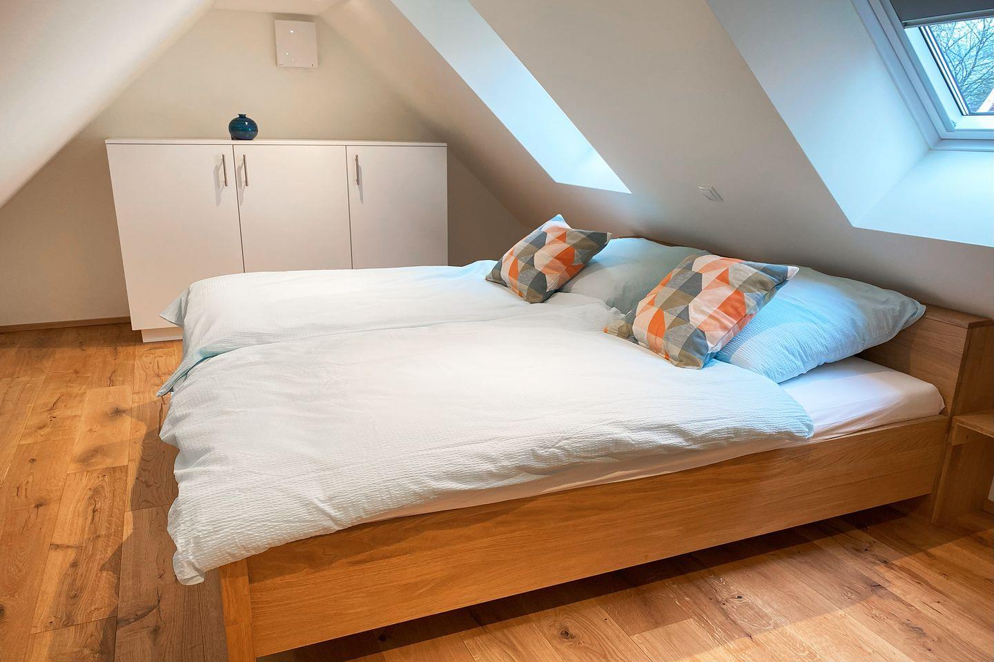 Die Wohnung eignet sich ideal für Paare oder Familien mit einem Kind. Neben dem gemütlichen Doppelbett gibt es ein separates kleines Einzelzimmer mit Tür – ein Pluspunkt gegenüber vielen anderen Wohnungen im Feriendorf.