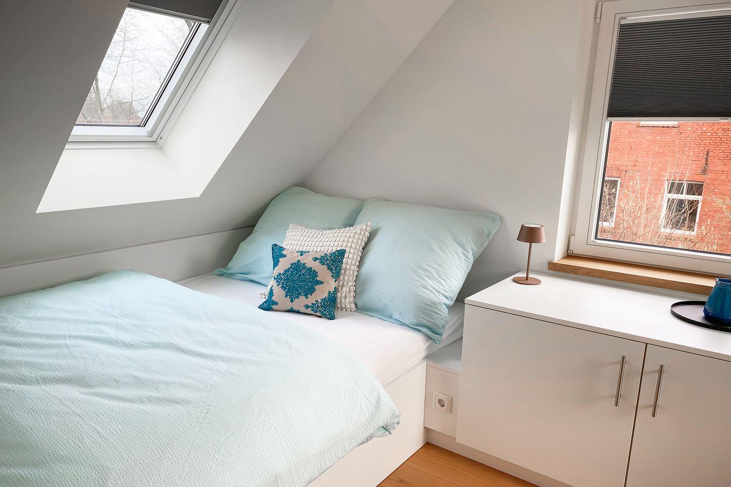 Die Wohnung eignet sich perfekt für Paare oder eine kleine Familie mit Kind. Das Schlafzimmer verfügt über ein Doppelbett – gern darf hier auch ein Kind mit übernachten.