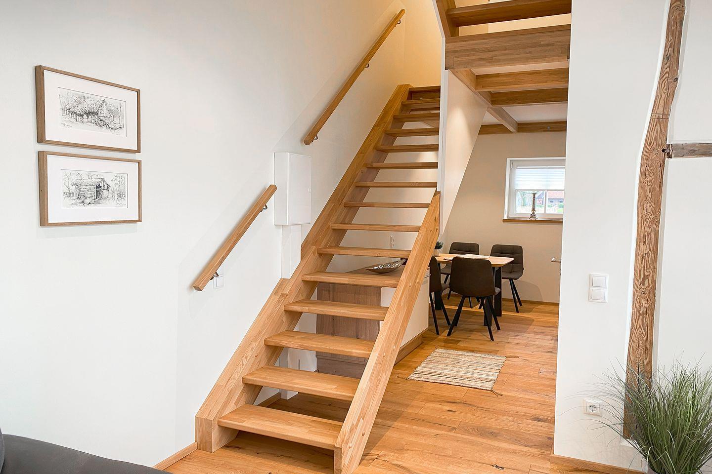 Willkommen in der „Alten Scheune – Wiesenblick“, einer charmanten Maisonettewohnung mit Geschichte. Der historische Charakter des alten Bauernhofs wurde liebevoll bewahrt und mit hochwertigen Details ergänzt – für einen stilvollen und zugleich naturnahen Aufenthalt.