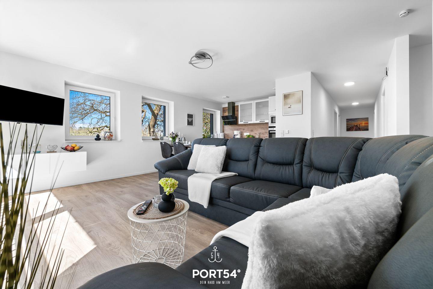 Die Wohnung befindet sich im 1. OG und bietet auf ca. 80m² Platz für bis zu 4 Personen. Der Wohn- und Essbereich besticht mit bodentiefen Fenstern, die einen tollen Blick auf die Schlei ermöglichen. Die offene Küche ist mit allem notwendigen ausgestattet, um leckere Gerichte zu zaubern. Ein geräumiges Duschbad mit ebenerdiger Dusche und 1 Gäste-WC stehen Ihnen zur Verfügung. Das eine Schlafzimmer ist mit 1 Doppelbett und das andere mit 2 Einzelbetten ausgestattet. Eine E-Ladesäule ist vorhanden.