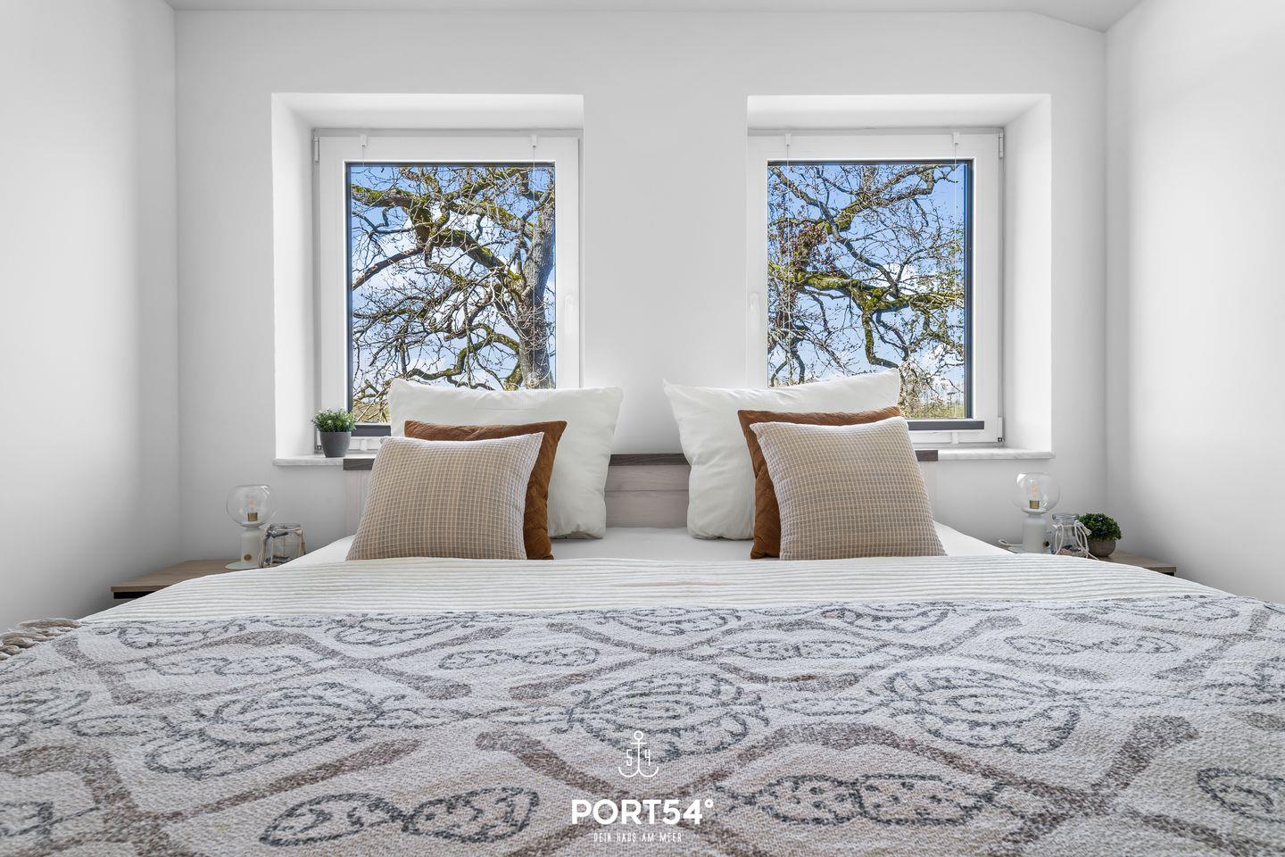 Willkommen an der Schlei! In der Ferienwohnung "Winningmay II" können Sie sich vom Alltagsstress erholen und die Seele baumeln lassen. Die frisch sanierte Wohnung befindet sich im 1. Obergeschoss und bietet auf ca. 80m² Platz für bis zu 4 Personen. Der großzügige Wohn- und Essbereich besticht mit bodentiefen Fenstern, die einen hervorragenden Blick auf die Schlei ermöglichen. Machen Sie es sich auf dem Sofa gemütlich und genießen Sie bei einem Film die Aussicht auf die Landschaft und die Schlei. Die angrenzende offene Küche ist mit einem Essbereich und allem notwendigen ausgestattet um leckere Gerichte zaubern zu können. Ein geräumiges Duschbad mit ebenerdiger Dusche und ein Gäste-WC mit Waschmaschine stehen Ihnen zur Verfügung. Das eine Schlafzimmer ist mit einem Doppelbett und das andere mit zwei Einzelbetten ausgestattet. Erholsame Nächte werden Ihnen dank Verdunkelungsmöglichkeiten und der abgelegenen Lage sicher sein. Alle Fenster sind mit Fliegengitter ausgestattet. Ein Kinderhochstuhl und ein Kinder-Reisebett stehen Ihnen ebenfalls zur Verfügung. Es gibt einen gemeinschaftlichen Außenbereich mit den anderen Ferienwohnungen. Die Ferienwohnung verfügt über einen Stellplatz und eine gemeinschaftliche E-Ladesäule für beide Wohnungen in dem Gebäude.