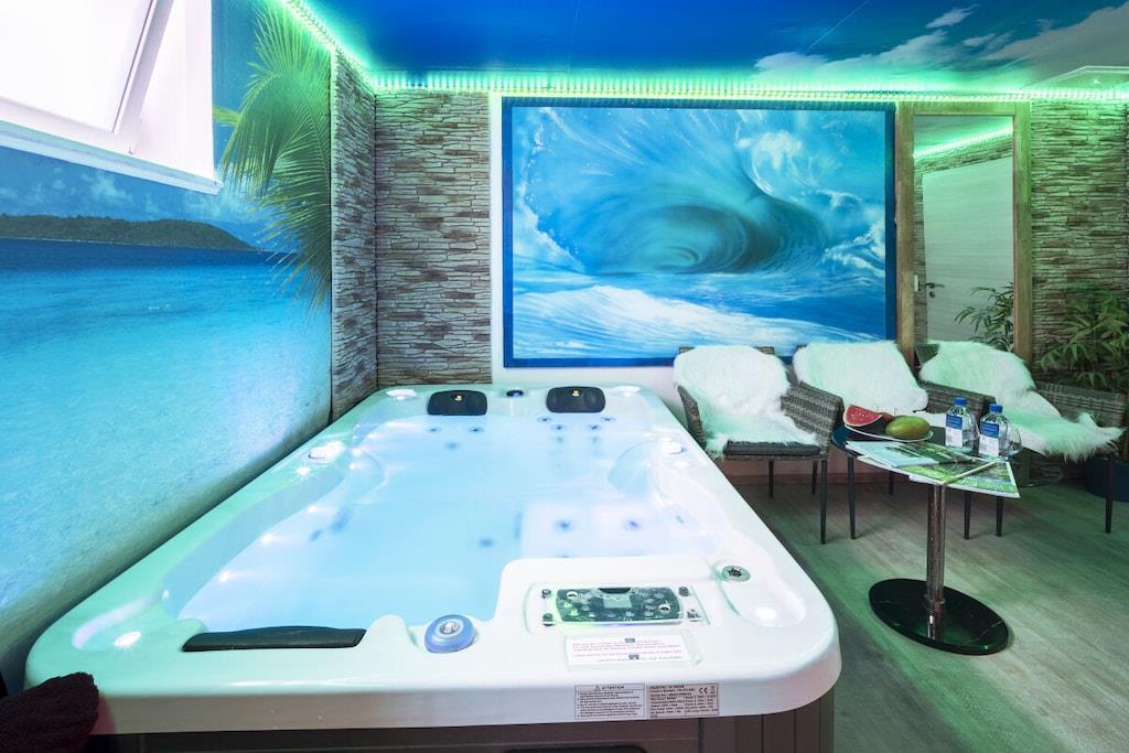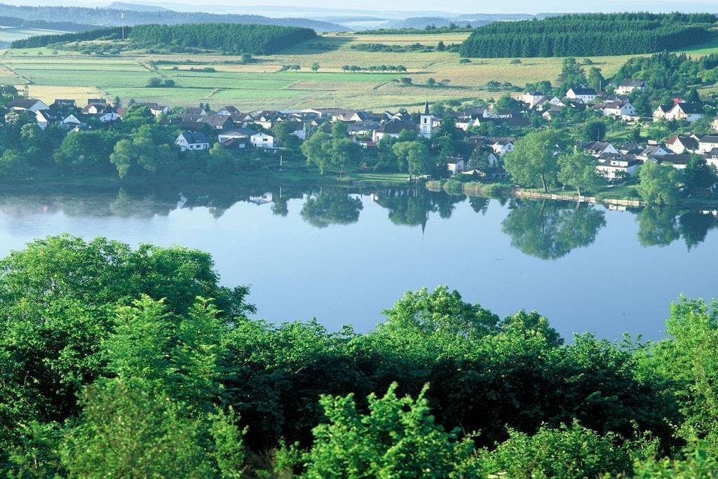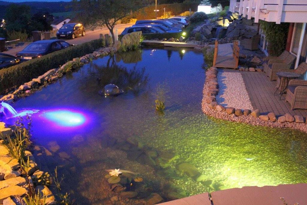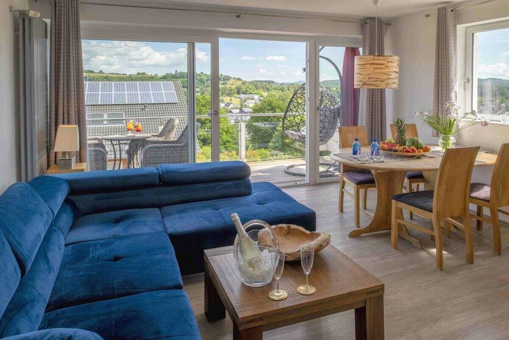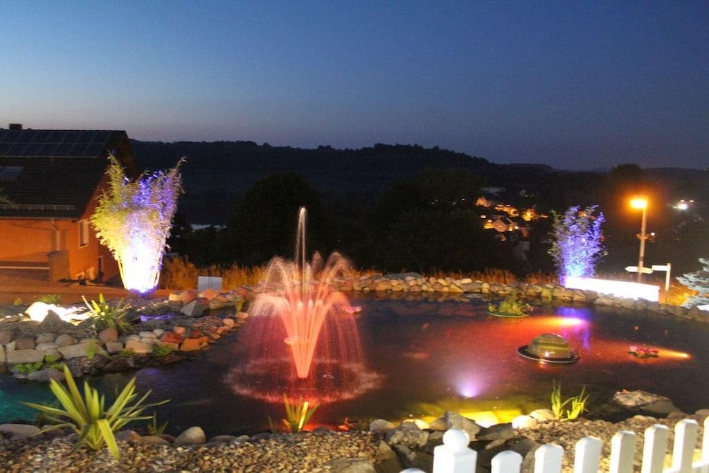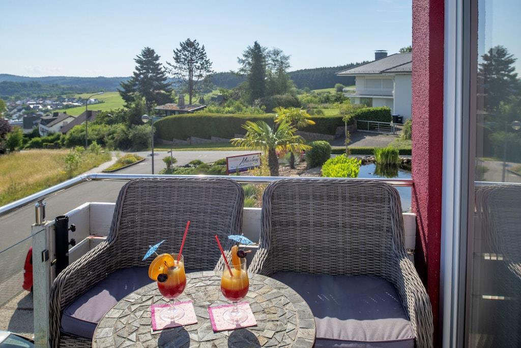 Stilig ferieleilighet i leilighetskomplekset «Maarberg Resort» i Schalkenmehren am See. Med boblebad for 2 personer! Røykfri leilighet. Leilighetskomplekset «Maarberg Resort» er nylig renovert og pusset opp. Det ligger vakkert til i utkanten av Schalkenmehren am See. En rolig beliggenhet i en åsside i utkanten av skogen. Sjøen og sentrum ligger bare ca. 400 meter unna. Byen tilbyr gode restauranter, kafeer og et shoppingområde. I bydelen Daun, 5 km unna, finner du også mange butikker og supermarkeder. Fra noen av leilighetene i Maarberg Resort kan du nyte vakker utsikt over innsjøen. Hver leilighet har Wi-Fi. Internett/Wi-Fi: Gratis bruk i alle rom! I bygningen: Lobby med resepsjon, sitteplasser og spill (tilgjengelig for bruk). Den nye badstuen og boblebadet ligger i kjelleren på «Maarberg Resort» (gratis bruk). Du kan også bruke disse fasilitetene alene (låsbare). Det er også et rom i kjelleren med vaskemaskin, tørketrommel, strykejern og strykebrett. I resepsjonshallen finner du turkart og postkort, samt gratis informasjon om de mange utfluktsmålene og fritidsaktivitetene i regionen. Det er også et drikkekjøleskap i resepsjonshallen med drikkevarer tilgjengelig for kjøp på tillitsbasis. Uteområdet vil glede deg! To vakkert og forseggjort anlagte pryddammer med koi og andre fisker, to fossefall, to bekker og et velholdt dekorativt grusområde er en del av eiendommen. Det er også skilpadder i det øvre dammen. Sitt komfortabelt med en kaffe eller cocktail på balkongen eller terrassen og se på fiskene og skilpaddene. Eller se ned i dalen ved innsjøen. Ytterligere utendørsområder inkluderer rikelig med parkeringsplasser og en sykkelparkering. En grillplass med utsikt over innsjøen ligger bak huset. Maarhöhe Ferieleilighet i Maarberg Resort: Elegant, helt nyinnredet ferieleilighet for 2 til 6 personer. Omtrent 54 kvm boareal, balkong mot innsjøen og den nedre pryddammen med en fantastisk panoramautsikt over innsjøen, de to pryddammene, fossene, bekkene og det dekorative grusområdet. Ferieleiligheten Maarhöhe ligger i øverste etasje (1 trapp opp). I den vakre stuen finner du en ny sofagruppe som kan gjøres om til en seng og en stor 127 cm HD/3D-TV av nyeste generasjon. Du kan velge mellom omtrent 3000 forskjellige TV- og radiokanaler på mange språk fra 4 forskjellige satellitter. Det er også en 3D Blu-ray-spiller og DVD-spiller. Et musikkanlegg med radio, CD osv. er også plassert i leiligheten. Internett-tilgang med Wi-Fi er tilgjengelig. Den lyse og innbydende leiligheten utstråler en naturlig stil med mye tre og stein. Den elektriske peisen og en elegant takvifte skaper også en spesiell, koselig atmosfære. Dette skaper en spesiell feriestemning selv på kalde og våte dager. Dette er en røykfri leilighet (røykere vennligst bruk balkongen eller uteområdet). Det nye kjøkkenet har en 4-brenner komfyr (keramisk koketopp) og stekeovn, oppvaskmaskin, kjøleskap med fryser, mikrobølgeovn, 2 kaffemaskiner (filter- og podmaskin, Bosch Tassimo). Brødrister, vannkoker, osv. Gryter og panner samt bestikk og servise for maksimalt antall personer er selvfølgelig tilgjengelig. En barneseng og barnestol kan leies gratis. Spisestuen er egnet for 4 personer. Leiligheten har 2 separate soverom med høykvalitets boksmadrassmatter (180 cm x 200 cm og 140 cm x 200 cm). Ingenting står i veien for en god natts søvn. Det andre soverommet har en 140 cm bred fransk dobbeltseng. Du kan også nyte utsikten over innsjøen fra det større soverommet! Det er også helfigurspeil på soverommene. Stuen har en ny dobbel sovesofa for ekstra soveplass. Badet har boblebad! Det lyse badet har boblebad. Skjem deg bort i boblebadet. Badet er utstyrt med satellitt-TV med DVD-spiller. En radio med USB-port er også tilgjengelig. Spesielle badesalter til boblebadet er tilgjengelige gratis. Boblebadet har dusj med regndusj, sidemassasjedyser og LED-lys. De blå LED-gulvlysene i hele badet skaper en herlig atmosfære. Et stort, opplyst LED-speil, en hotellhårføner og en badevekt er tilgjengelig. Moderne oppvarming med håndkletørker. Leiligheten har en herlig balkong med lenestoler og et cocktail- eller salongbord. Hvis du ønsker å nyte et skikkelig godt måltid på balkongen, finner du et annet spisebord som kan foldes ned til hver etasje.