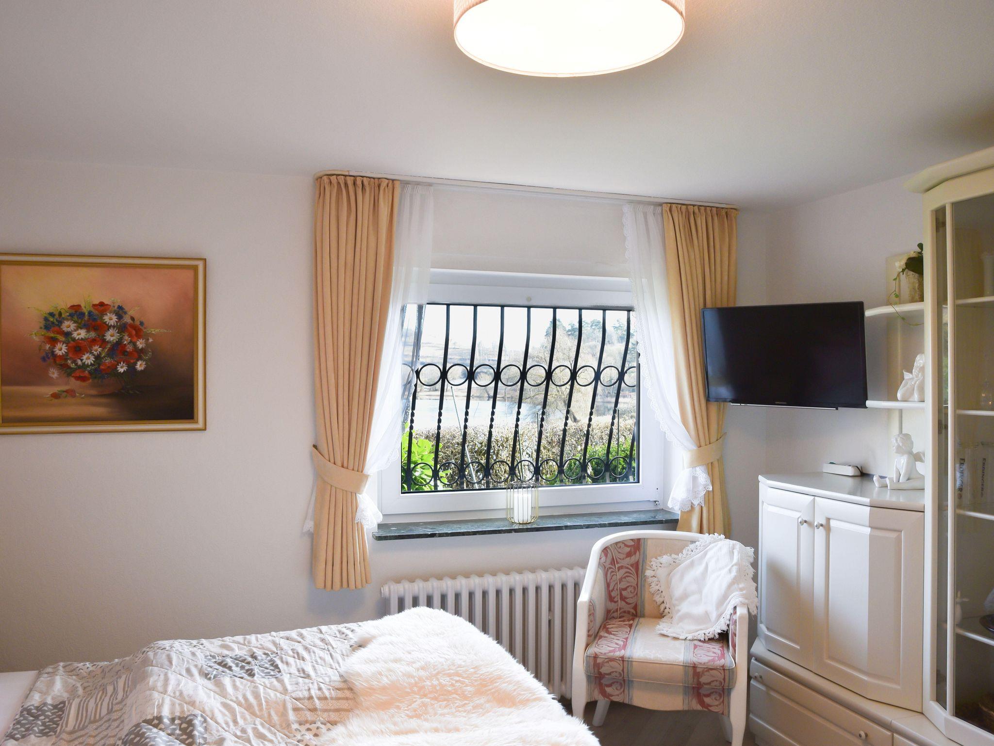 • Ein Doppelschlafzimmer mit Maarblick, Schlafkomfort mit hohen Schlaraffia Einzel-Matratzen 90 cm x 200 cm, LED Flachbild TV,