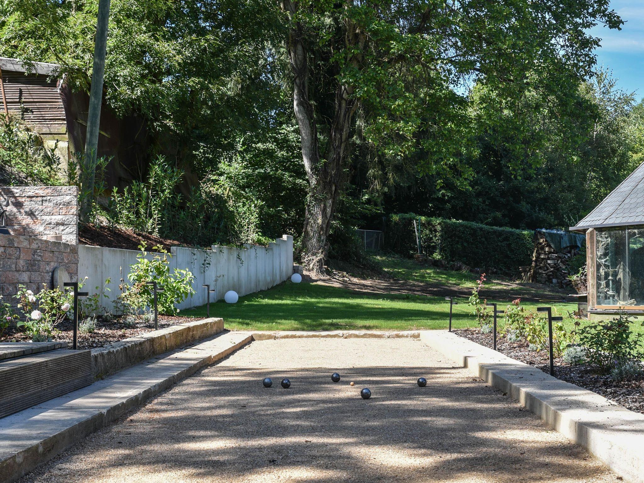 • Terrassen und Liegewiese mit Maarblick, grosse Gartenanlage mit Boccia Bahn