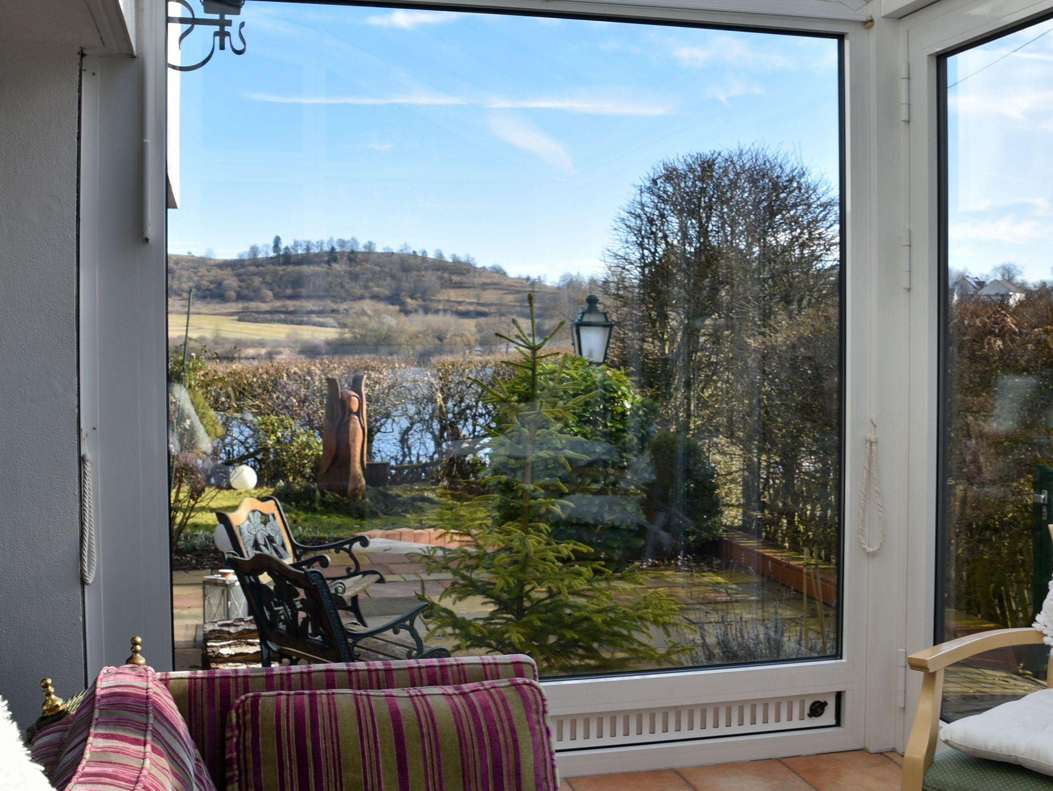 • Gemütlicher Wohnraum mit Maarblick, LED Flachbild TV und Schlafmöglichkeit für eine weitere Person oder zwei Kinder (Ausziehcoach 140 cm x 200 cm)