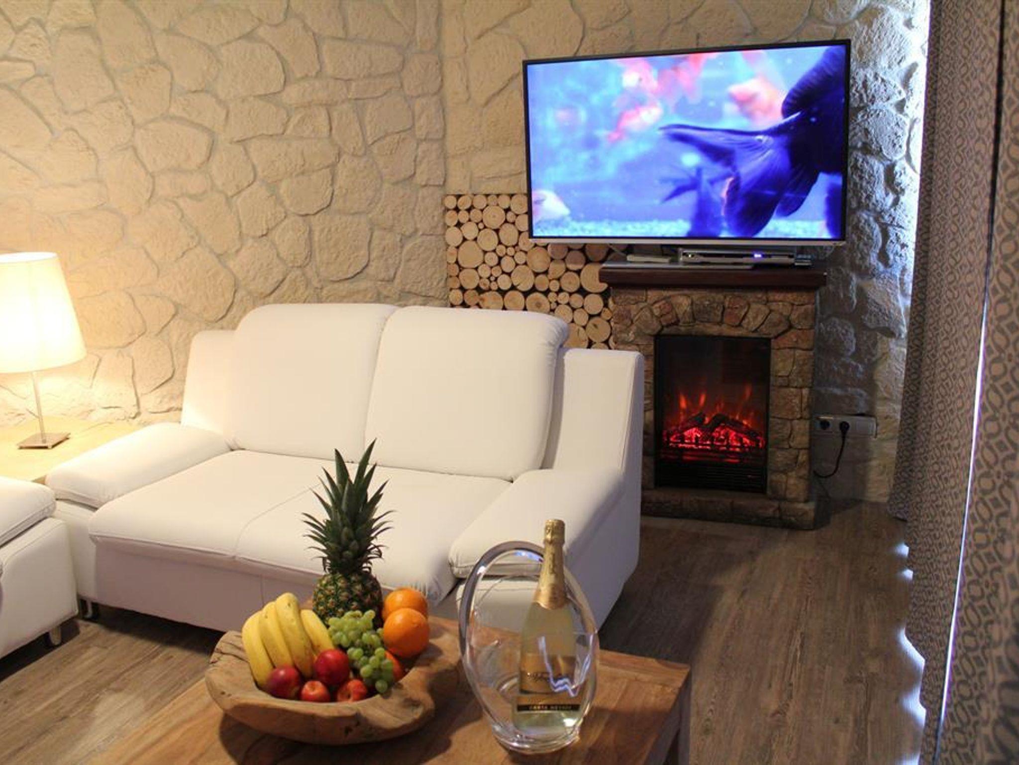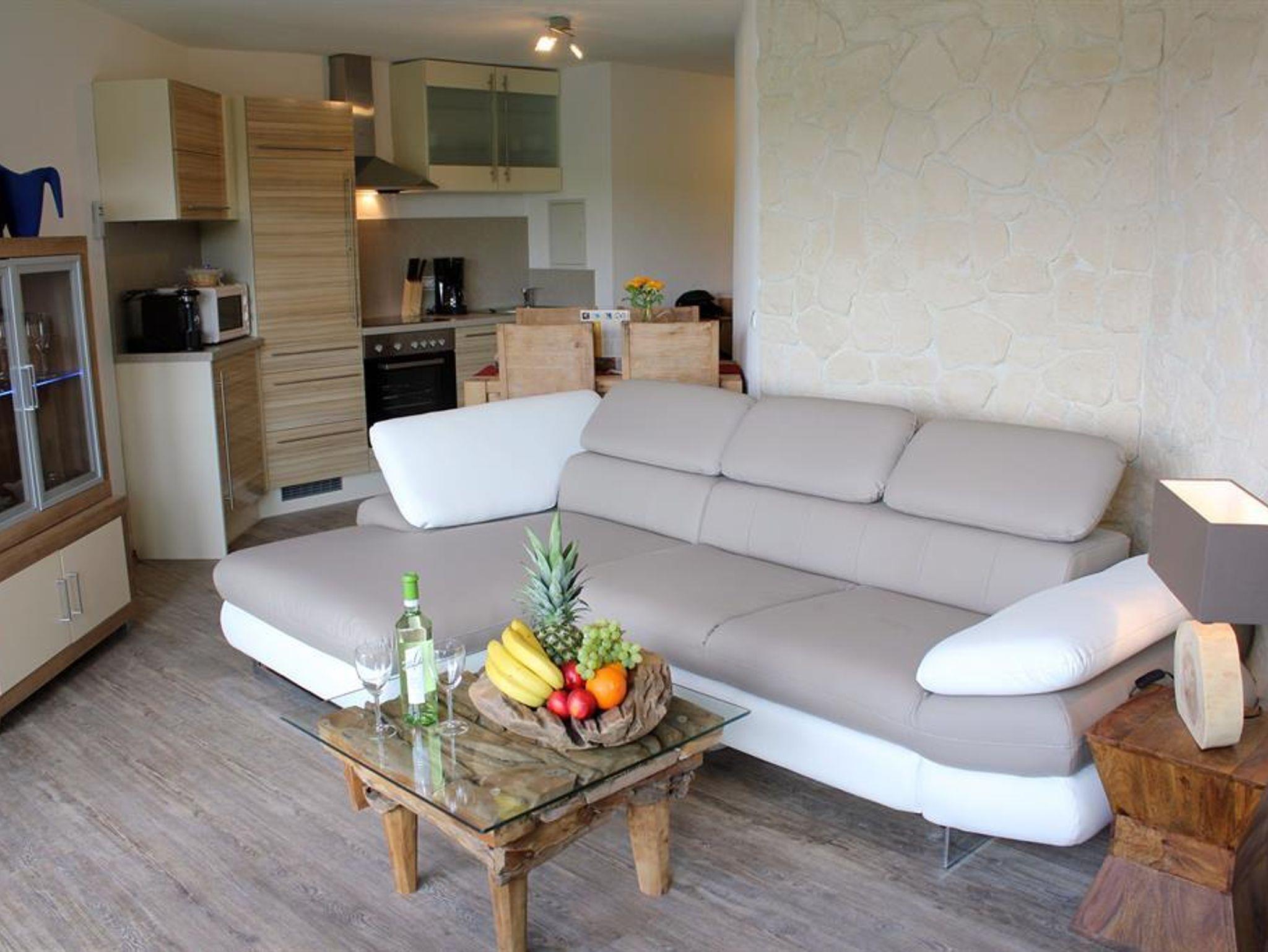 Im schönen Wohnraum finden Sie eine neue Sofagarnitur mit Bettfunktion und einen großen, 127 cm HD/3D Fernseher. Sie finden viele verschiedenen Fernseh- und Radiosender in vielen Sprachen (4 verschiedenen Satelliten). Mit 3D Blueray Player u. DVD-Player. Auch eine Musikanlage mit Radio, CD usw. befindet sich auf der Wohnung. Es gibt einen Internetzugang, WIFI (Wlan).