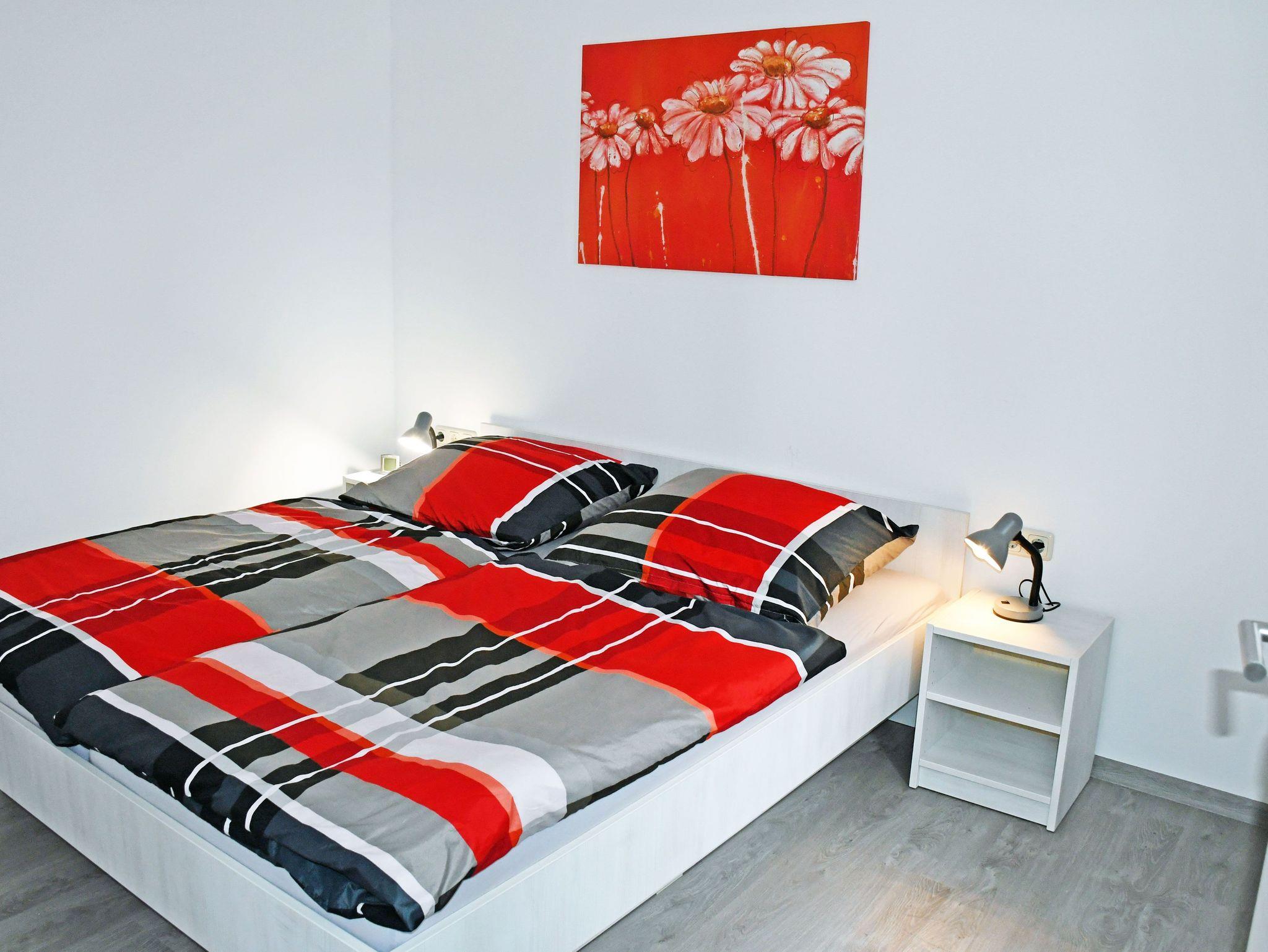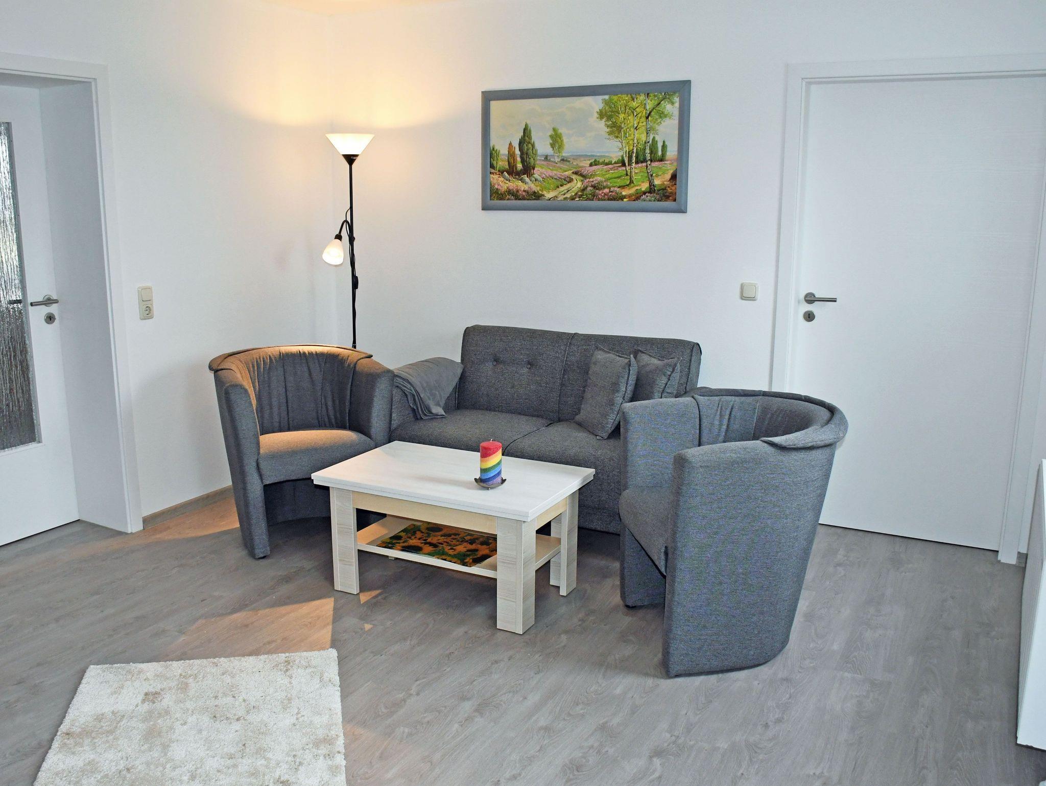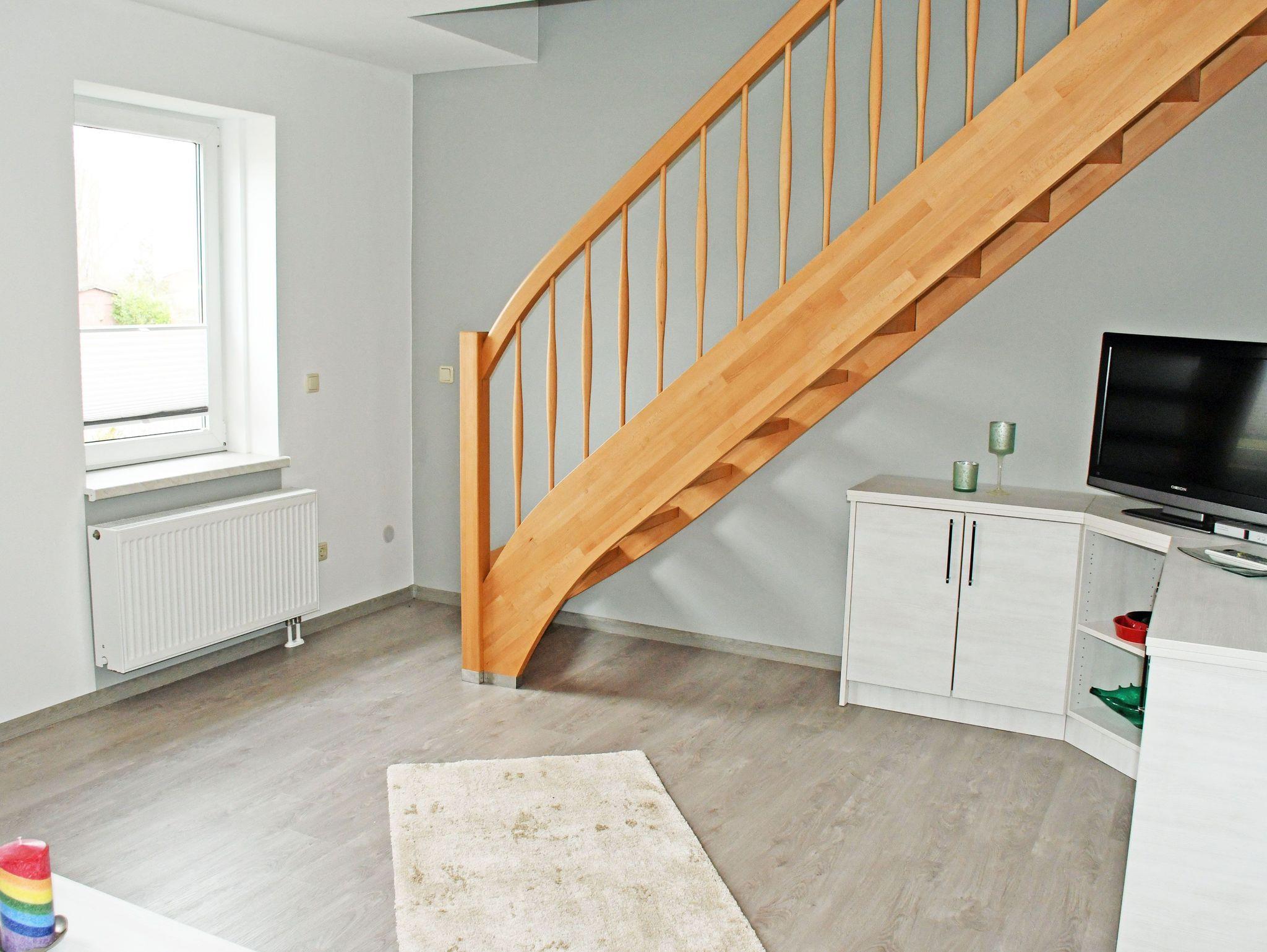 In dem im EG liegende großzügigen Wohnraum befinden sich eine Sitzcouch mit Tisch und Sessel, Leselampe und Flachbild-TV. Im ersten Schlafzimmer befindet sich ein bequemes Doppelbett mit Nachttischen und Leselampen sowie ein Kleiderschrank.