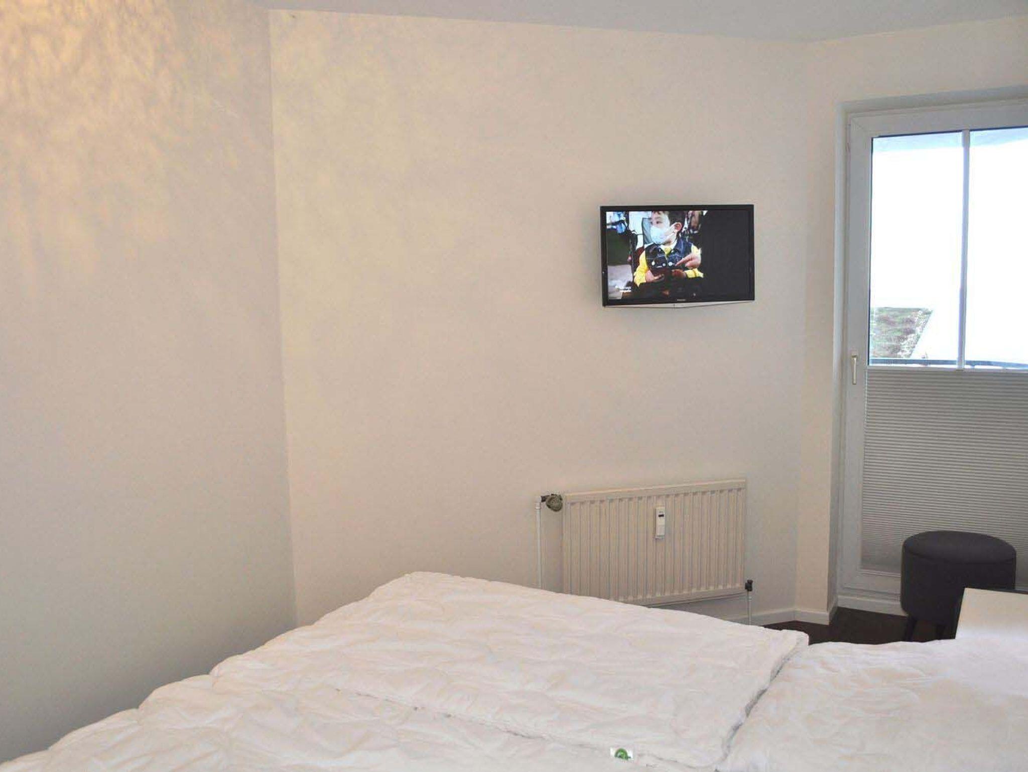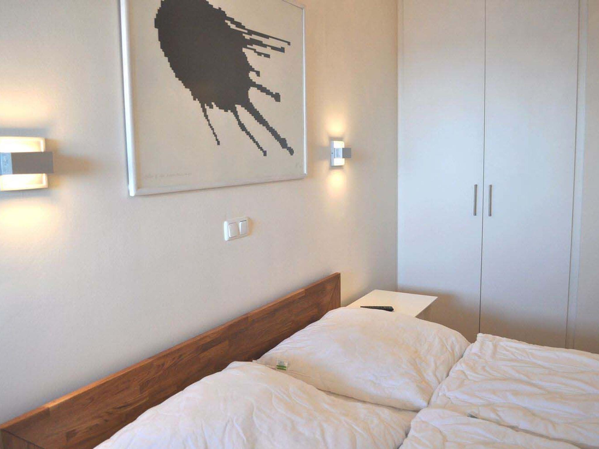 Schlafzimmer 1: 2 Matratzen, 2 Nachttische, aus dem Bett haben Sie direkten Meerblick, Doppelbett 2,00 x 1,80 m, Einbaukleiderschrank, Flachbildschirm, Kabel-TV