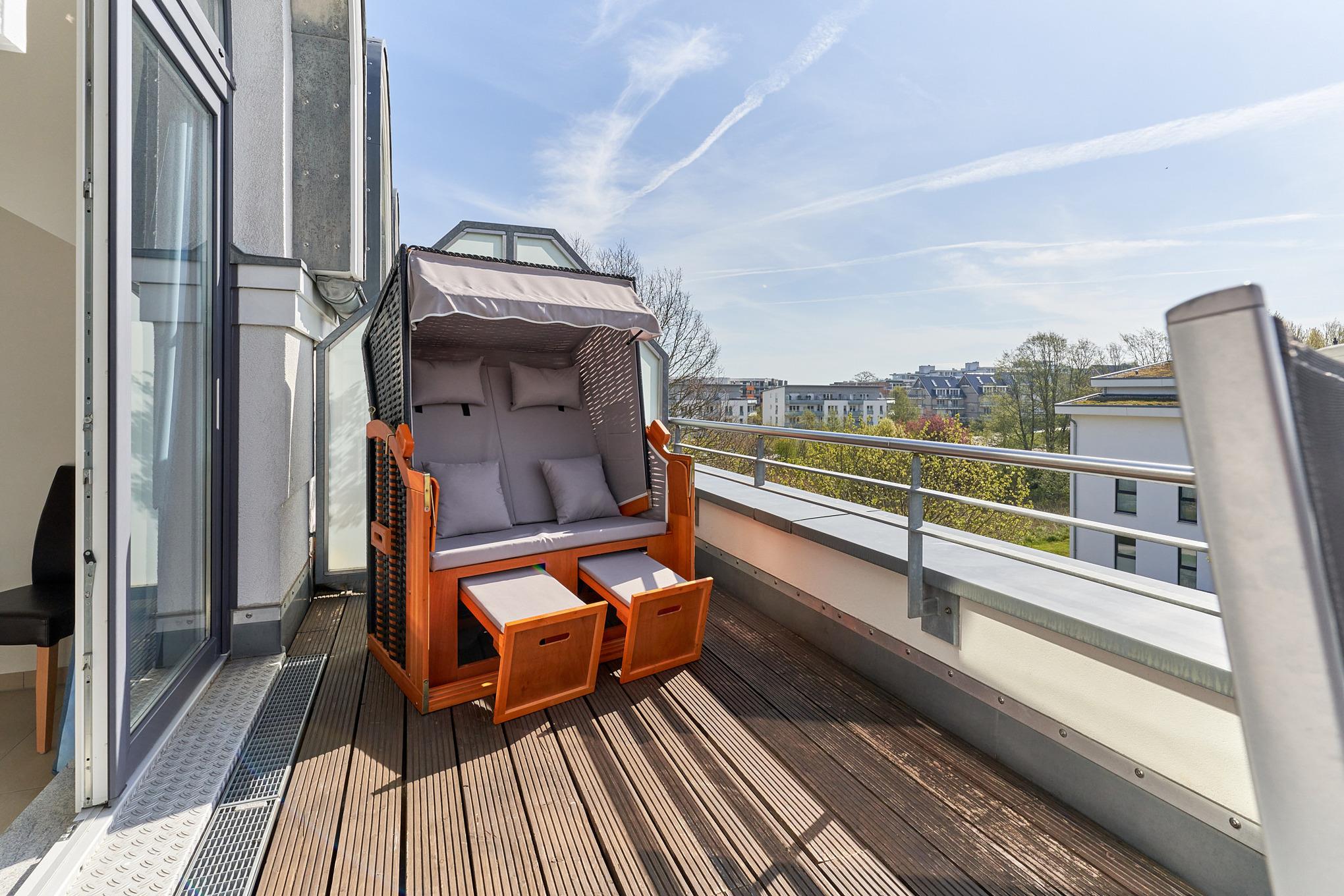 3-Zimmer-Ferienwohnung, ca. 88 m², ein "Ostseetraum" mit Sonnenterrasse, Duschbad, Waschmaschine, PKW-Stellplatz und Fahrstuhl, für bis zu 4 Personen.