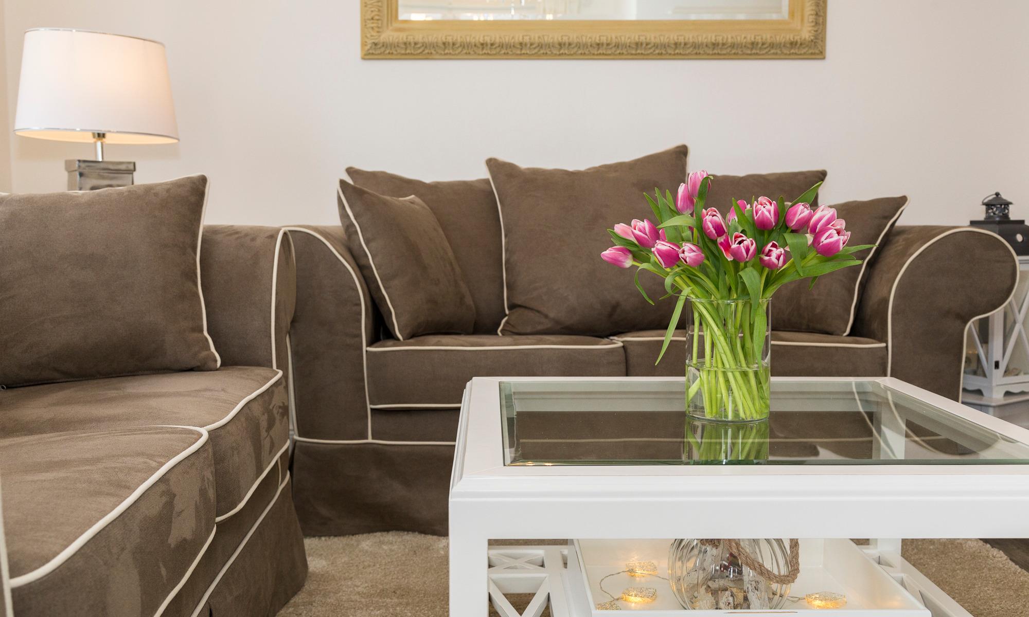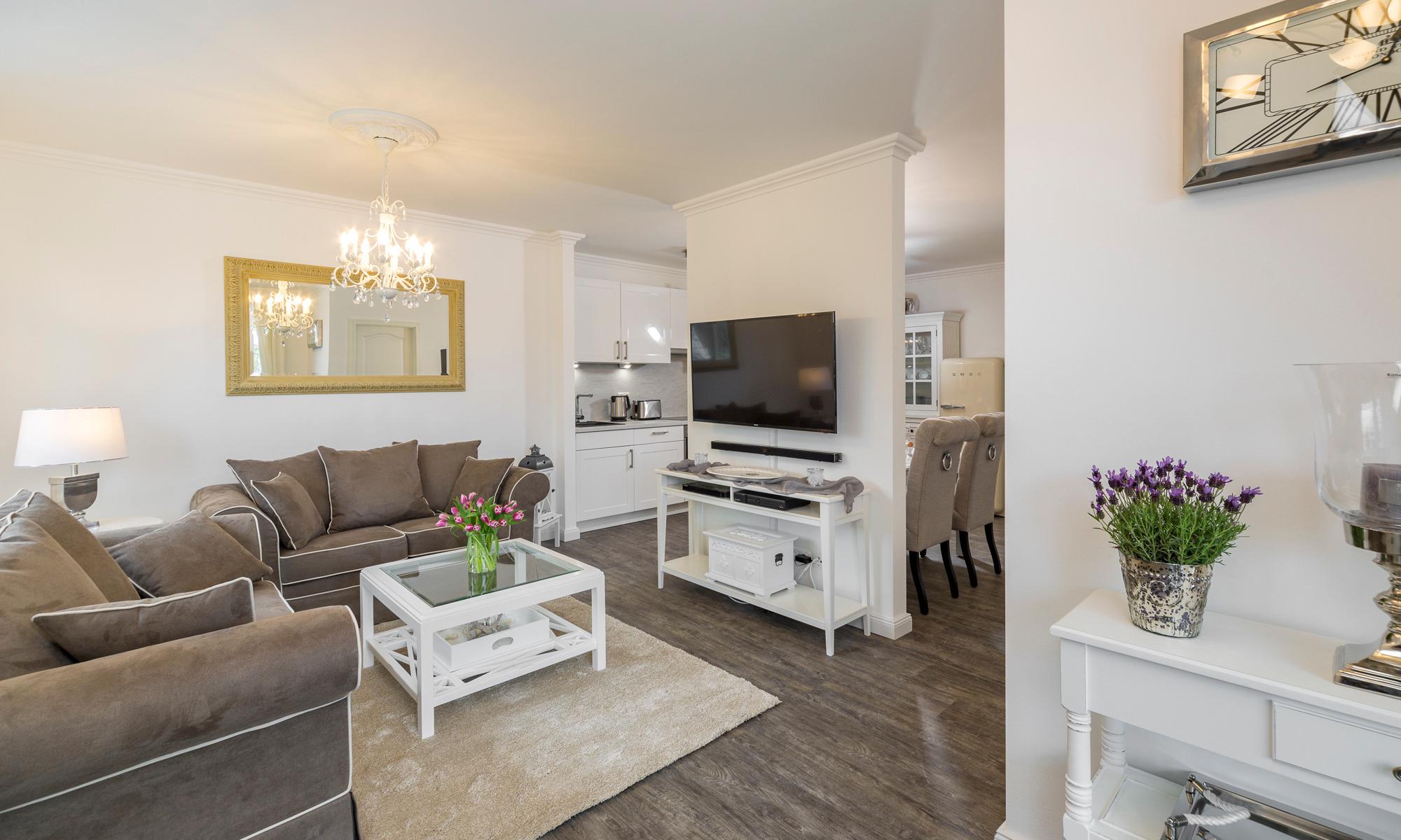3-Zimmerwohnung "Sunrise Suite", 2 Bäder, 2 Schlafzimmer, Tiefgaragenstellplatz (Durchfahrtshöhe 2,10 m) in der Strandvilla Augustusbad, bis zu vier Personen.