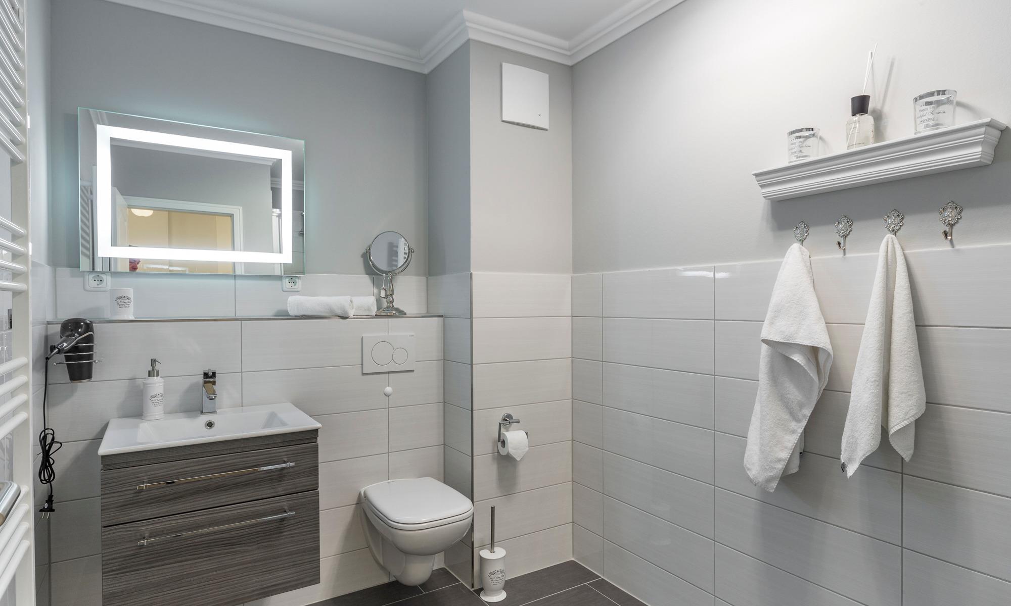Darüber hinaus ist die gesamte Wohnung durch elektrische Außenjalousien abdunkelbar. Um Ihnen zusätzlich das nötige Maß an Flexibilität einzuräumen, verfügt das Appartement über zwei moderne, voll ausgestattete Duschbäder. Für Frischluftliebhaber bietet die südostlich ausgerichtete Loggia die Möglichkeit, traumhafte Sonnenaufgänge zu genießen. Der begehrte feinsandige Ostseestrand liegt Ihnen in wenigen Schritten zu Füßen; Ein Strandkorb steht Ihnen saisonbedingt (15.05. – 15.09.)[nbsp] zur Verfügung.