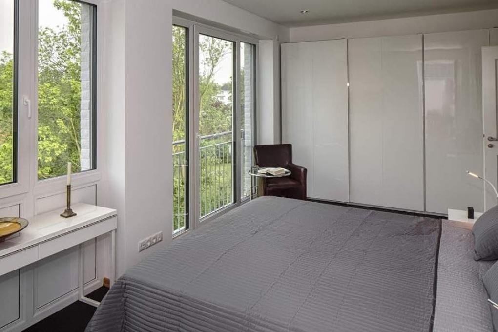 Diese Ferienwohnung heißt Sie in einem großen Flur willkommen. Der großzügige Wohn-Essbereich bietet Ihnen ein Ledersofa, Lederstühle und eine Bank sowie einen großzügigen Esstisch mit Stühlen für gesellige Stunden. Neben dem Flachbildfernseher, einem CD-Player und einem Blu-ray-Player steht Ihnen selbstverständlich kostenloses WLAN zur Verfügung. Die moderne und hochwertige Küche ist komplett ausgestattet, verfügt über eine Tchibo Cafissimo Kapselmaschine und lässt keine Wünsche offen. Die Kücheninsel mit Sitzgelegenheiten lässt Sie auch beim Kochen nicht alleine und die gemeinsame Zubereitung macht noch viel mehr Spaß. Die ca. 40 qm große, nicht einsehbare Dachterrasse ist mit Lounge-Elementen, einer Sonnenliege und einem Esstisch mit 4 Sesseln ausgestattet. Genießen Sie den Blick über den Kurpark und die Ruhe. Schlafzimmer 1 verfügt über ein Boxspringbett (180 cm breit), 2 Nachttischschränke, einen Kleiderschrank, einen Ledersessel, einen Schreibtisch und einen Flachbildfernseher. Schlafzimmer 2 verfügt über ein Boxspringbett (100 cm), Nachttischschrank, Schreibtisch, Sessel, Kleiderschrank und einen Flachbildfernseher. Schlafzimmer 3 verfügt über ein Boxspringbett (160 cm), 2 Nachttischschränke, einen Kleiderschrank und einen Flachbildfernseher. Sie gelangen von allen Schlafzimmern auf die Dachterrasse. In allen Räumen sind zur Verdunkelung elektrische Rollläden angebracht. Das große Tageslicht-Bad ist mit einer bodentiefen Dusche, einem Waschtisch, einem großen Spiegel und neben der Fußbodenheizung mit einem zusätzlichen Handtuchheizkörper ausgestattet. Hier ist auch die Waschmaschine mit Trockner untergebracht. Im zweiten Bad ist ebenso eine bodentiefe Dusche und neben der Fußbodenheizung ein zusätzlicher Handtuchheizkörper vorhanden.