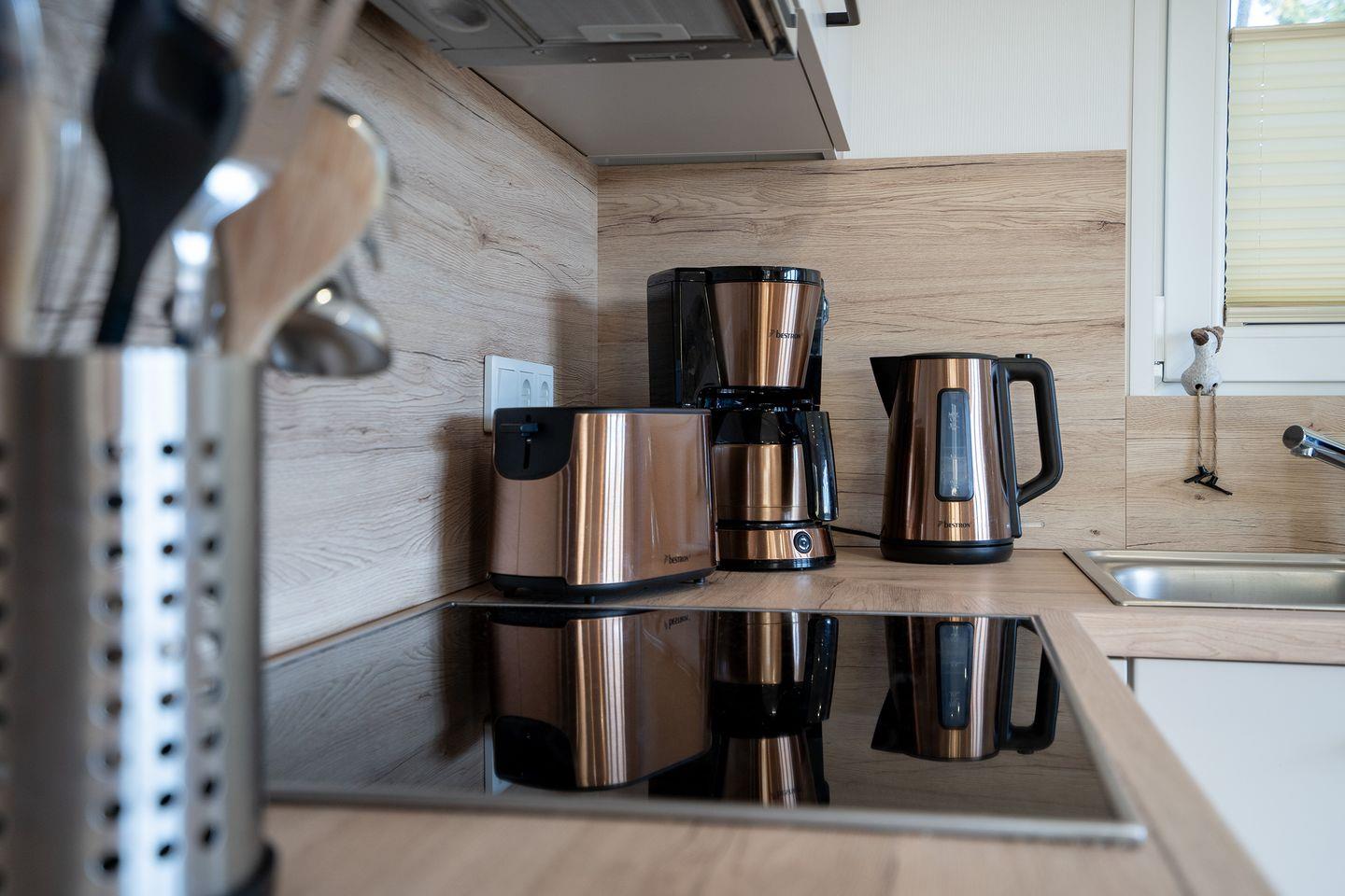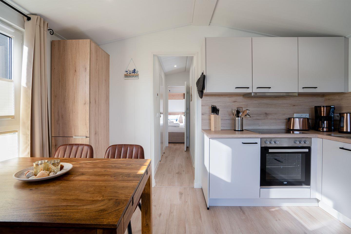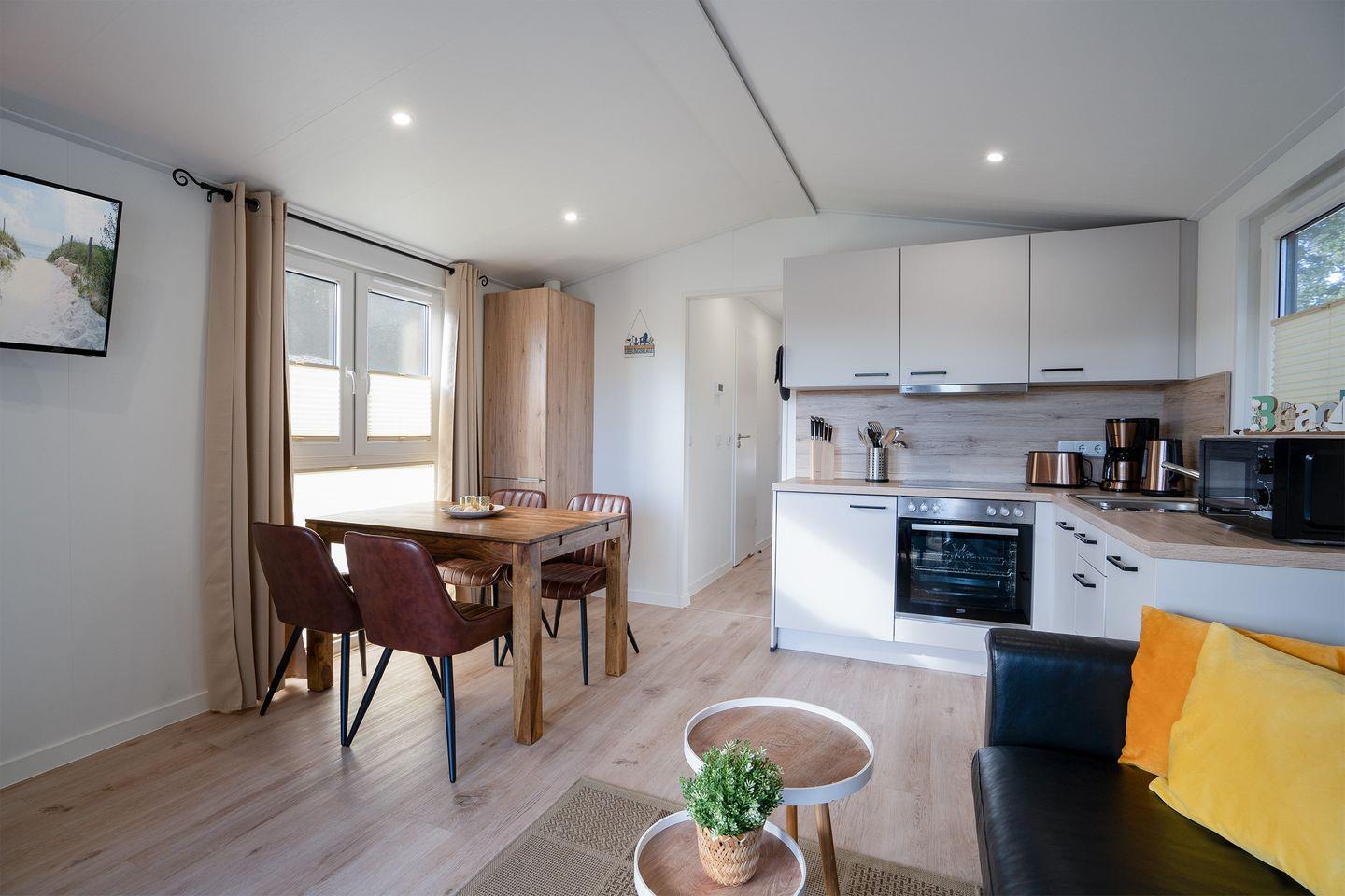 willkommen zu ihrem unvergesslichen Urlaub in unserem modern eingerichteten Ferienhaus „Morgensonne“ aus dem Jahr 2022. Auf ca. 40m² bietet es ihnen Komfort, einen schönen, offenen Wohn- und Essbereich mit sehr gut ausgestatteter Küche und eigenem Badezimmer.