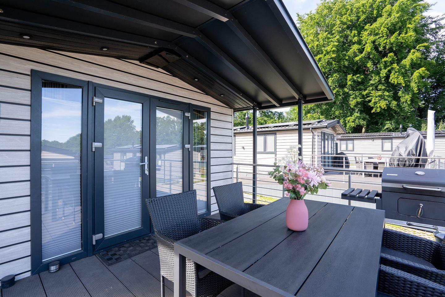 Gemütlich Terrasse mit (Holzkohle) Grill und Sitzgelegenheiten