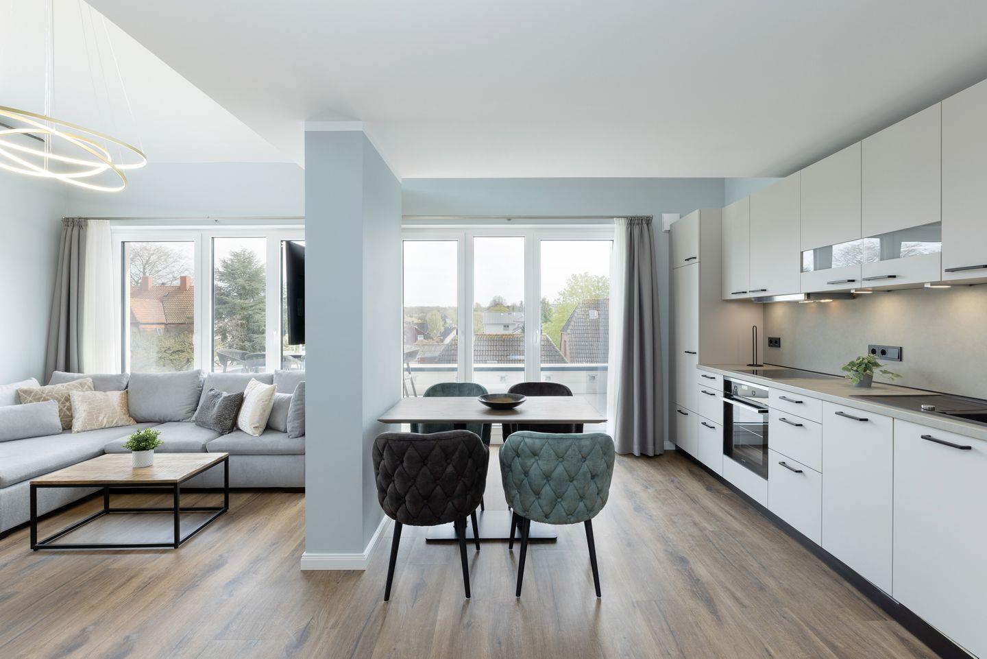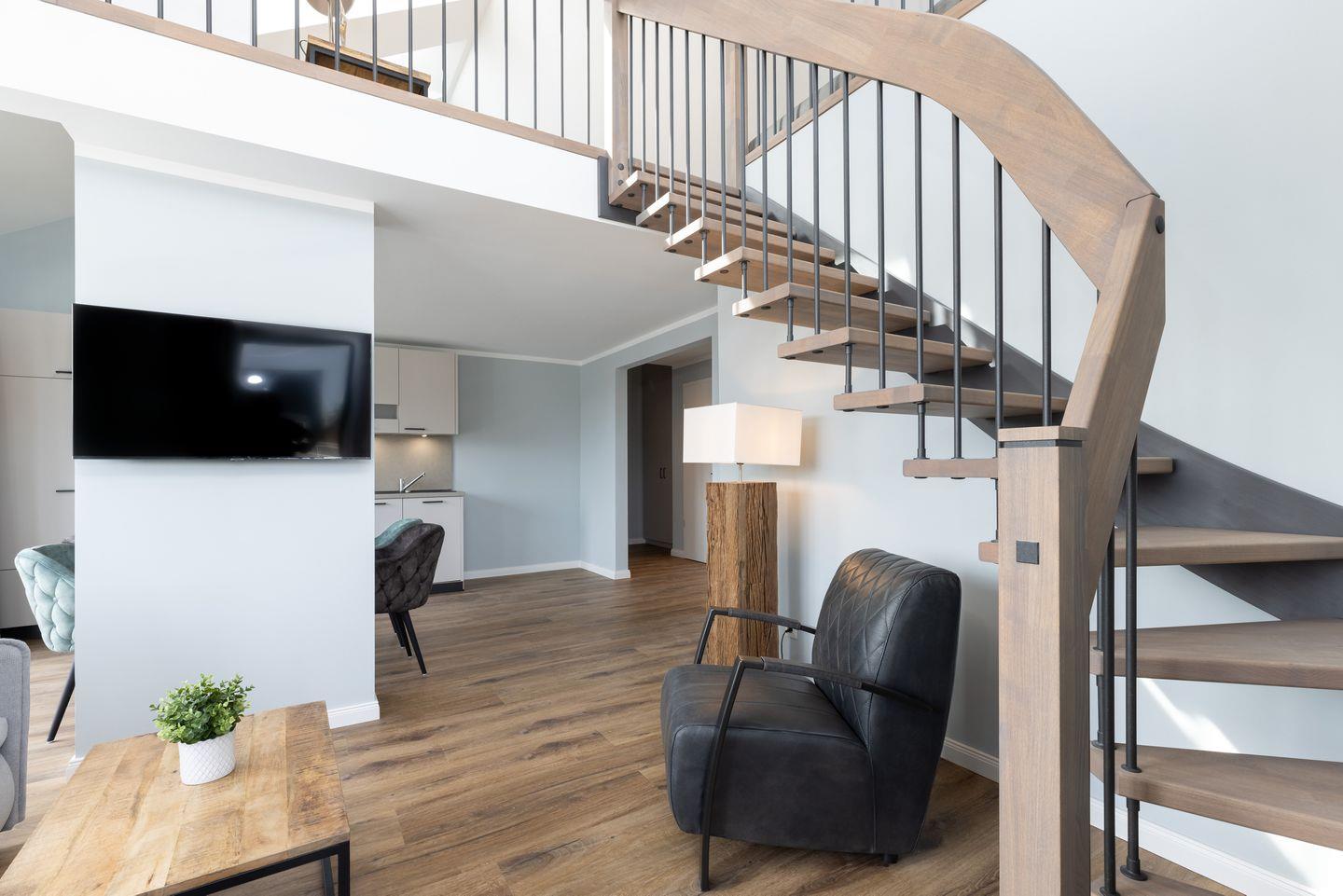 Lichtdurchflutete Galeriewohnung über zwei Etagen für bis zu 6 Personen unterm Dach des Appartementhauses “Sturmfrei” mitten im Ostseebad Scharbeutz.