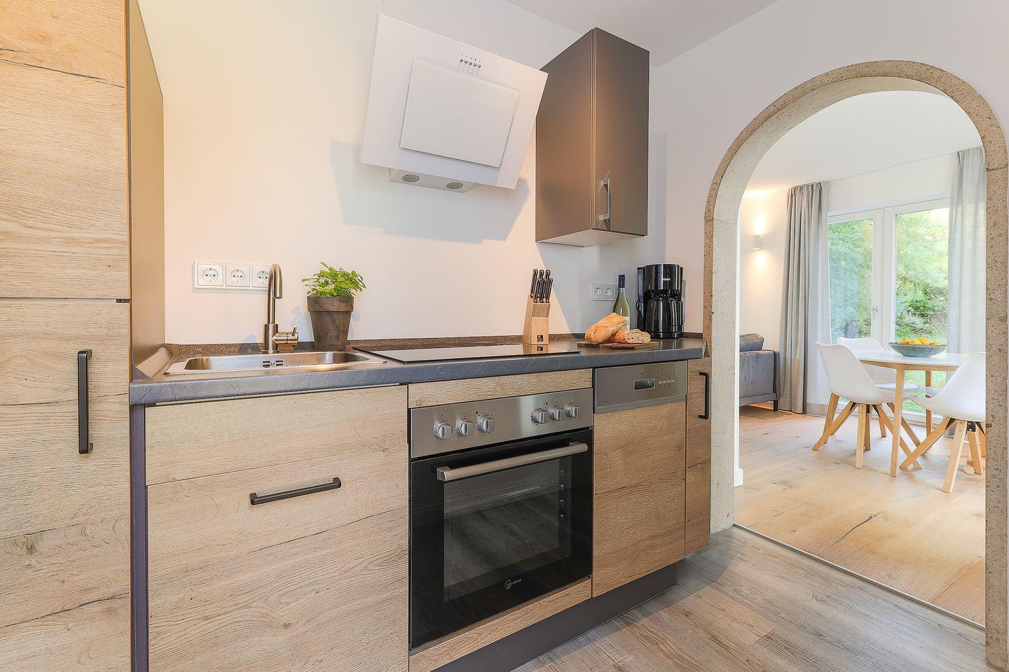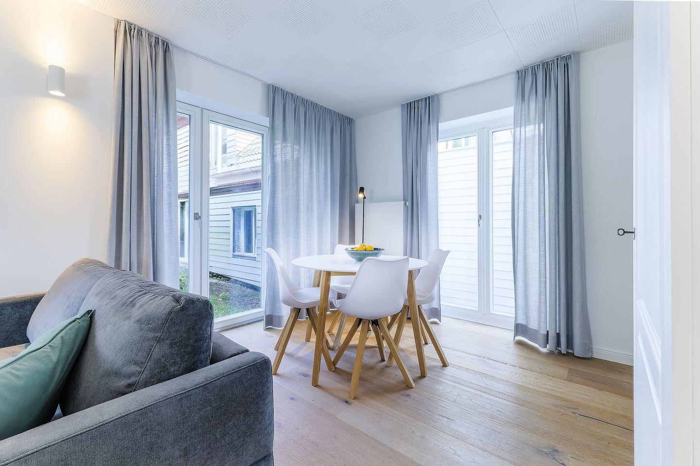 Das gemütliche Schlafzimmer ist mit einem komfortablen Boxspringbett ausgestattet, das Ihnen erholsamen Schlaf garantiert. Im offenen Wohn- und Essbereich können Sie entspannte Stunden verbringen. Die moderne Einbauküche verfügt über alle nötigen Geräte, um bequem Mahlzeiten zuzubereiten. Bodentiefe Fenster lassen viel Tageslicht herein und schaffen eine helle, einladende Atmosphäre.