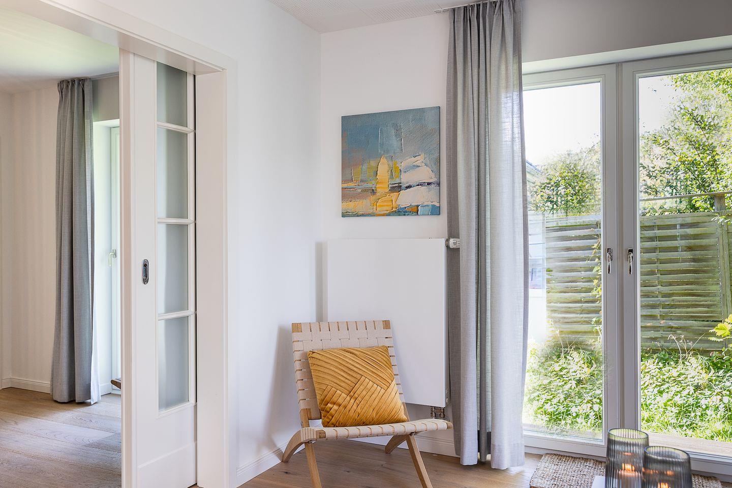Meerblau überzeugt mit hochwertigem Parkettboden. Ein privater PKW-Stellplatz ist ebenfalls vorhanden. Ihre Fahrräder können sicher untergebracht werden, sodass Sie die Umgebung bequem erkunden können.