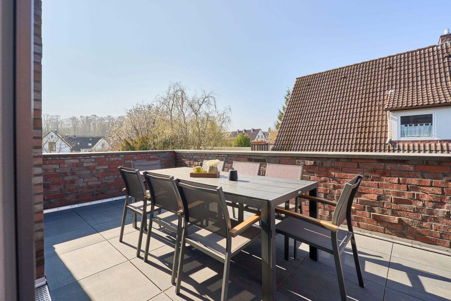 Ein besonderes Highlight ist die große Dachterrasse mit Weber-Elektrogrill und bequemen Sitzmöglichkeiten – ideal, um die Abendsonne zu genießen. Ein Hängestuhl auf dem Balkon lädt zusätzlich zum Verweilen ein. Der private Abstellraum der Wohnung verfügt über einen Waschtrockner, einen Dyson-Akkustaubsauger, einen Wäscheständer, Bügeleisen und Bügelbrett.