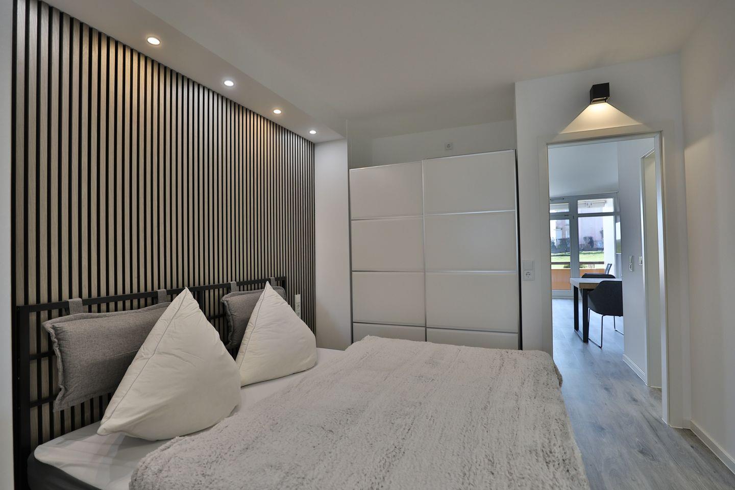 Diese modern kernsanierte Ferienwohnung in Scharbeutz bietet auf 46,78 Quadratmetern Platz für bis zu vier Personen und liegt in ruhiger Lage direkt an der Strandpromenade. Der durchdachte Grundriss macht sie besonders attraktiv für Paare oder Familien mit Kindern. Das Schlafzimmer ist mit einem großzügigen Elternbett (180x200 cm) ausgestattet und verfügt über eine offene Duschnische. Ein separates WC mit großem Waschbecken sorgt für zusätzlichen Komfort und ermöglicht es den Eltern, ungestört zu bleiben, wenn die Kinder im Schlafzimmer schlafen.