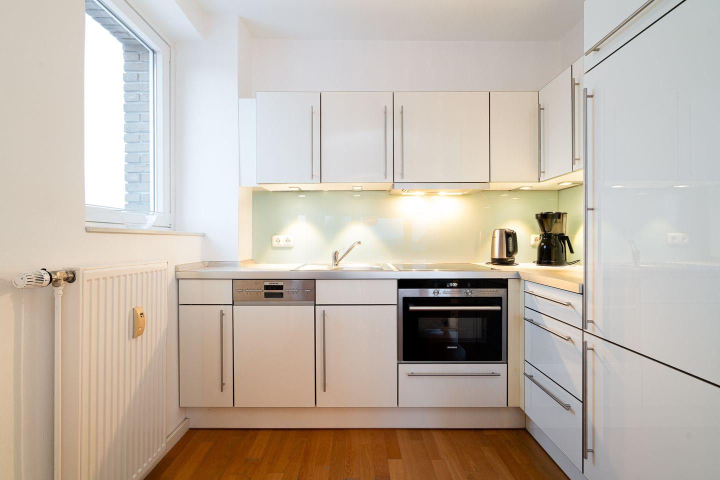 Vom Wohnraum gelangen Sie auf den überdachten und windgeschützten Balkon, der gemeinsam mit den Gartenmöbeln zum entspannten Verweilen einlädt. Die offen zum Wohnzimmer gestaltete Küche ist mit Backofen und Herd ausgestattet, sowie umfangreichen Küchenutensilien wie Kaffeemaschine, Wasserkocher und Toaster. Das Badezimmer bietet eine Dusche mit Wanne, Waschbecken, Spiegel und WC.
