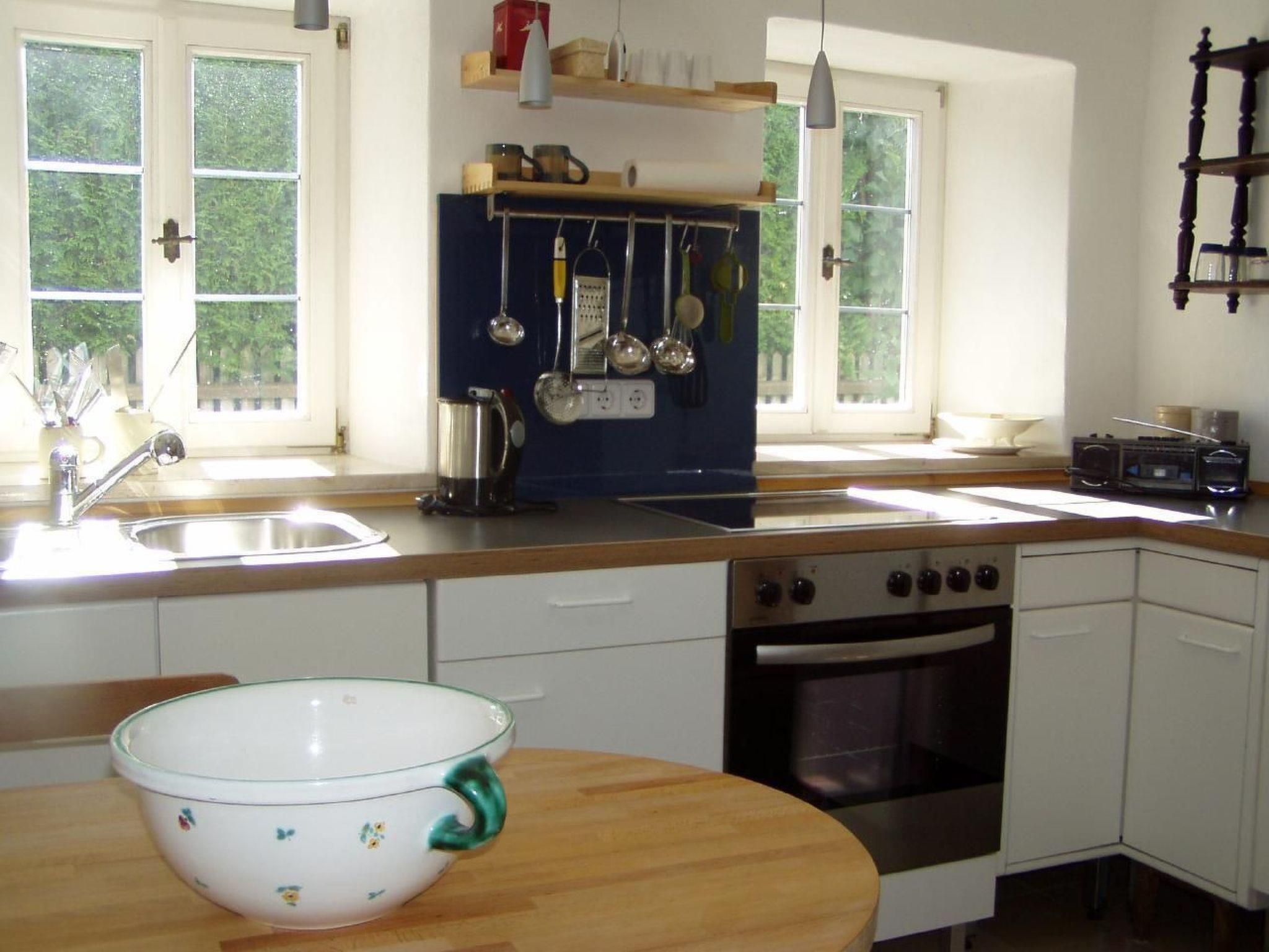 Inside the house you will find a large, cosy living room with an old, but currently inoperable cast iron stove. A modern kitchen with dishwasher, oven, electric hob, freezer, coffee machine, fridge, toaster and kettle is at your disposal. Two bedrooms offer quiet retreats, and for the comfort of our guests there is a bathroom with WC on the first floor and a separate WC on the ground floor, which is located in the old smokehouse. Additional sleeping accommodation is provided by a sleeping loft, which can be separated by a curtain and has a double sofa bed.