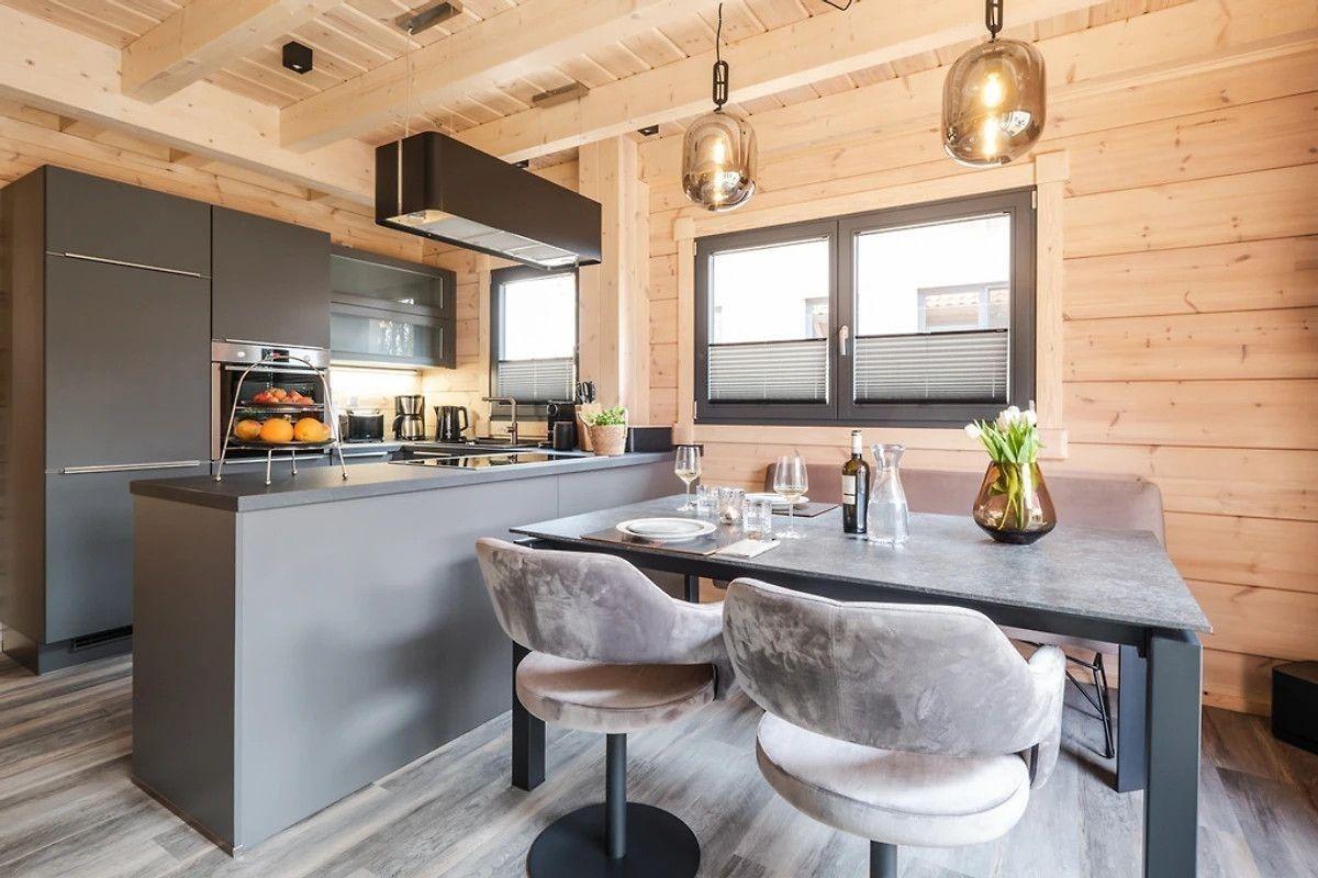 Exklusives , modernes Blockhaus am Berghang inkl. Kaminofen, Sauna, Fußbodenheizung, zwei Bädern, Einbauküche mit Vollausstattung, möblierte Terrasse, SmartTV im Wohn- und den zwei Schlafzimmern, kostenloses WLAN . Genießen Sie die Natur, in vollen Zügen.