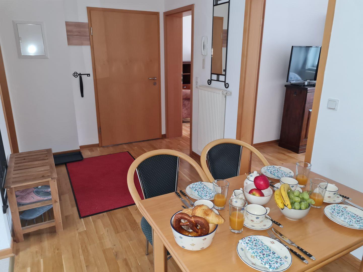 Die Ferienwohnung bietet Platz für maximal 4 Personen und ist komplett ausgestattet. Im Eingangsbereich der Wohnung erwartet Sie ein Essbereich mit offener Einbauküche. Das geräumige Schlafzimmer ist mit Doppelbett, Kleiderschrank und TV ausgestattet und hat einen eigenen Zugang zum Balkon.
