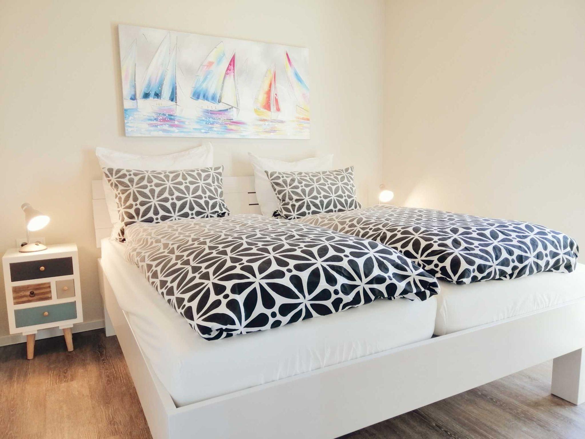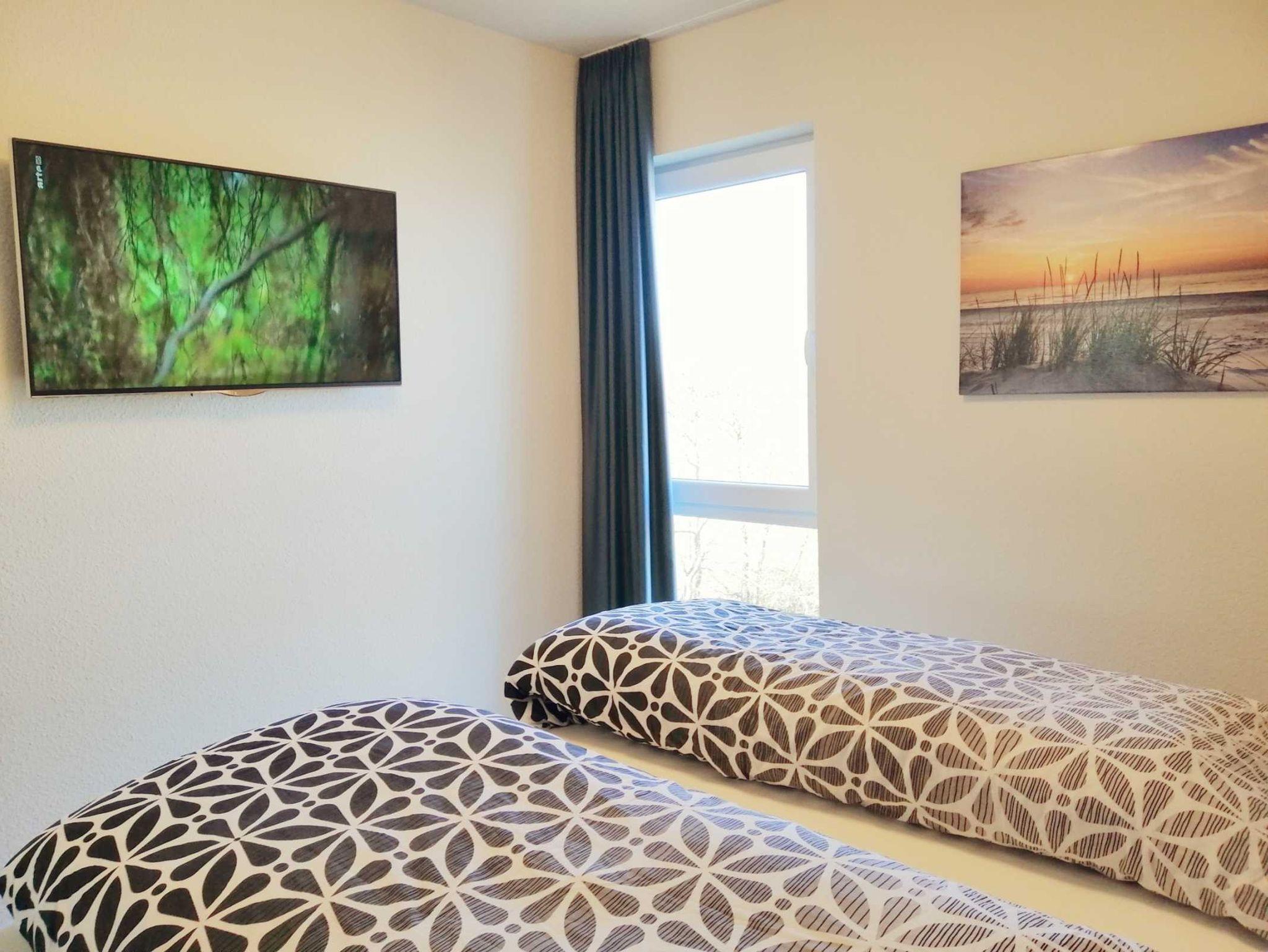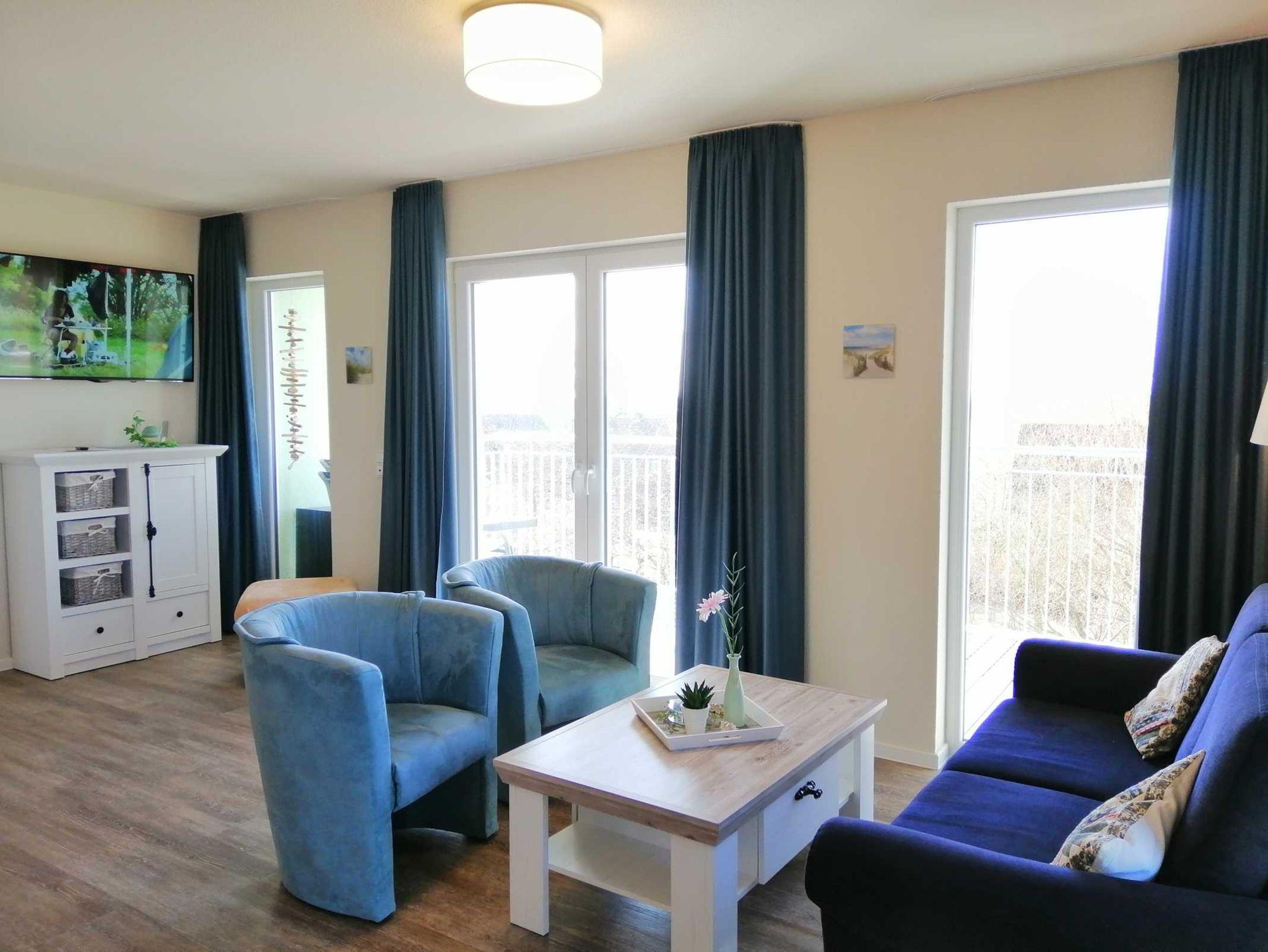 Herzlich Willkommen am Meer! Direkt hinter dem Deich erwartet Sie unsere lichtdurchflutete Neubau-Ferienwohnung mit gemütlichem Wohnbereich nebst Essplatz, offener Küche, zwei Schlafräumen und geräumigem Bad inkl. Sauna. Die moderne und hochwertige Einrichtung ist für 4 Personen ausgelegt. In einem zeitlos schönen Design bietet Ihnen die ansprechende Einbauküche alles, was Sie benötigen (Geschirr, Besteck, Gläser, Töpfe und Pfannen). Der Wohnraum und die beiden Schlafzimmer sind mit Satelliten-TV ausgestattet. Sie können nicht nur eine Vielzahl von Fernsehprogrammen, sondern auch zahlreiche Radiosender empfangen. Selbstverständlich ist auch Internet-Nutzung über WLAN möglich. Jedes Schlafzimmer verfügt über ein Doppelbett mit Nachtkonsolen und einen Kleiderschrank. Durch dichte Vorhänge vor den bodentiefen Fenstern können Sie die Lichtverhältnisse nach Ihren Bedürfnissen regulieren. Das Badezimmer bietet mit integrierter Sauna, ebenerdiger (Regen-)Dusche und großer Eck-Badewanne bei jedem Wetter Entspannung für Körper und Seele. Auch ein großzügiger möblierter Süd/West-Balkon lädt zur Erholung ein. Hier können Sie mit herrlichem Blick auf die Graft und ins Grüne tagsüber die gute Seeluft mit wärmenden Sonnenstrahlen genießen und abends traumhafte Sonnenuntergänge beobachten. Von der westl. Ecke des Balkons, ebenso wie aus den seitlichen Fenstern der Ferienwohnung , kann man über den Deich aufs Wattenmeer schauen ? bis hin zu den Inseln Wangerooge und Minsener Oog. Liebe Gäste, bitte haben Sie dafür Verständnis, dass aus Sicherheitsgründen das Grillen im gesamten Ferienpark verboten ist. Wir möchten auch darauf hinweisen, dass sich die Ferienanlage derzeit noch im weiteren Ausbau befindet und es aufgrund dieser Bautätigkeiten zu optischen und akustischen Beeinträchtigungen kommen kann. Sollten sich für Sie daraus Fragen ergeben, werden wir Ihnen diese gerne beantworten. Zur Ferienwohnung gehört auch ein PKW-Stellplatz. Besondere Merkmale Barrierefrei zu erreichen (Aufzug). Eigene Sauna, Fußbodenheizung, großer Süd-West-Balkon mit seitlichem Meerblick. Für Ihre Wertsachen (z.B. Schmuck, Smartphone, Papiere) steht Ihnen ein kleiner Schranksafe mit individuell programmierbarer Codierung kostenlos zur Verfügung. Während der Saison steht Ihnen ein Saisonstrandkorb am Strand kostenfrei zur Verfügung.