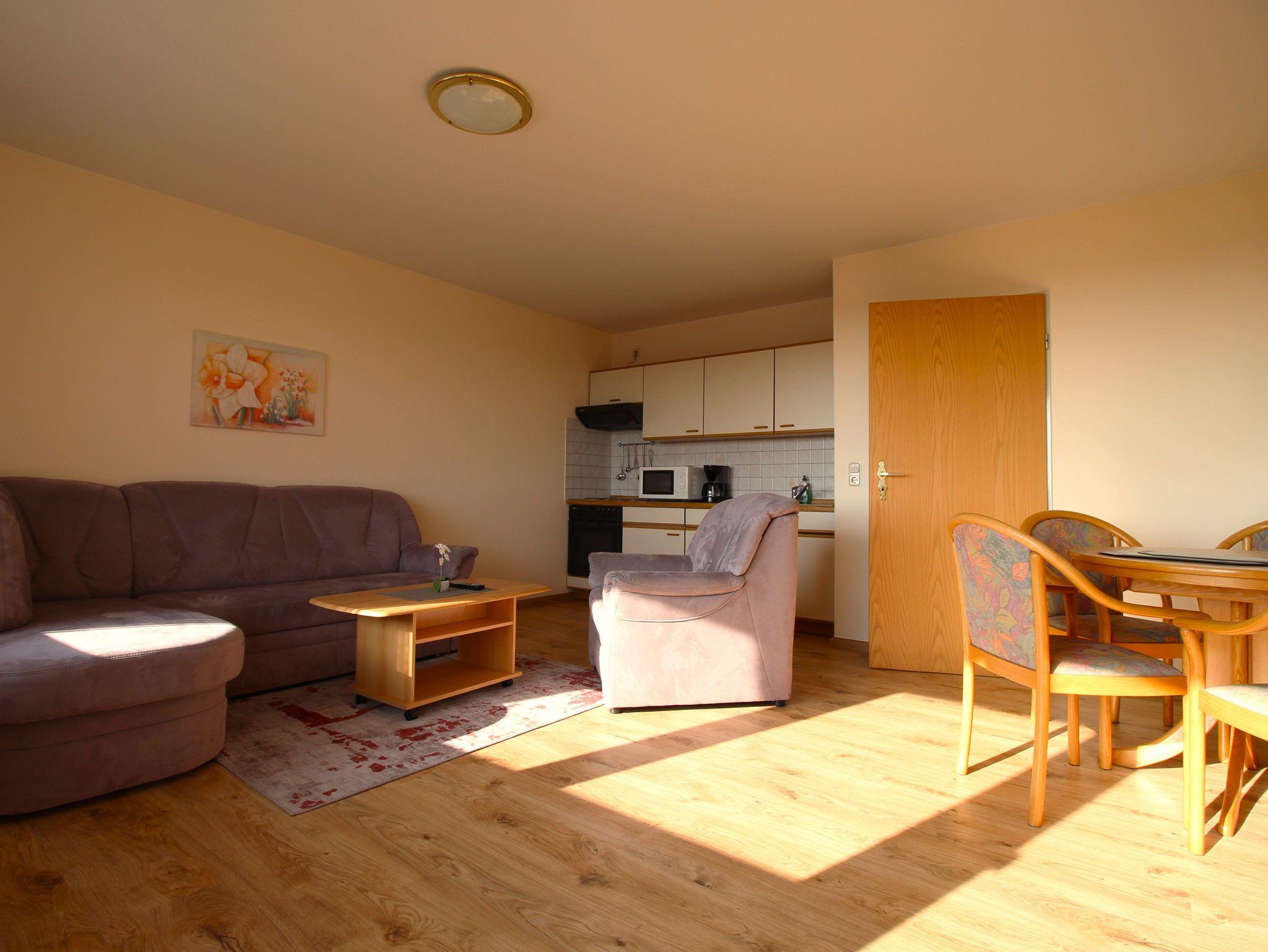 Die Ferienwohnung Typ Seepferdchen IV verfügt über einen Balkon zur Seeseite und Nordseeblick. Die Wohnung teilt sich in ein Wohnzimmer mit gemütlicher Couch, TV, einer offenen Küche sowie einem Schlafzimmer mit Doppelbett und einem Bad mit Dusche/WC auf. Diese Wohnung befindet sich in der 2ten Etage mit Seeblick.