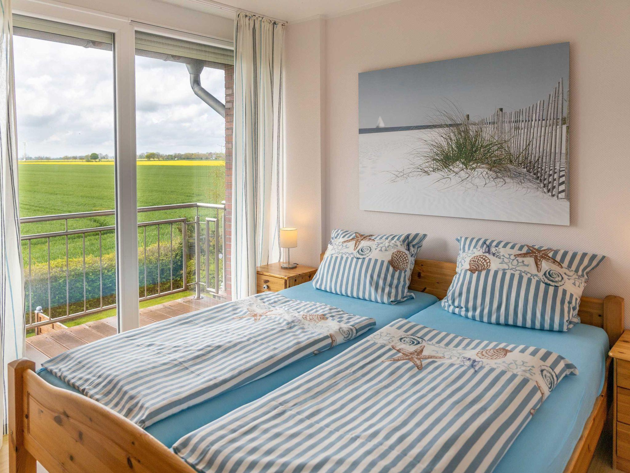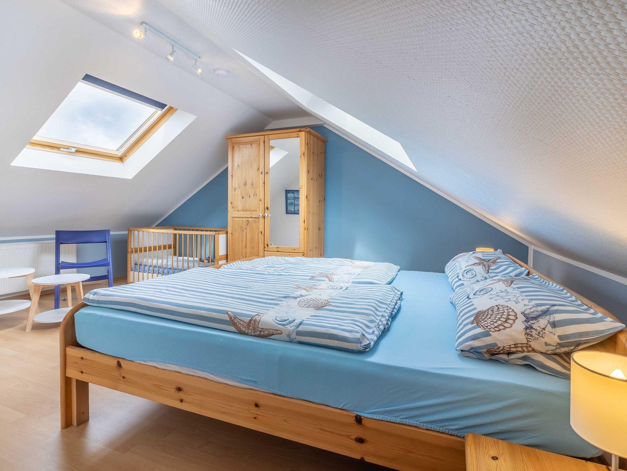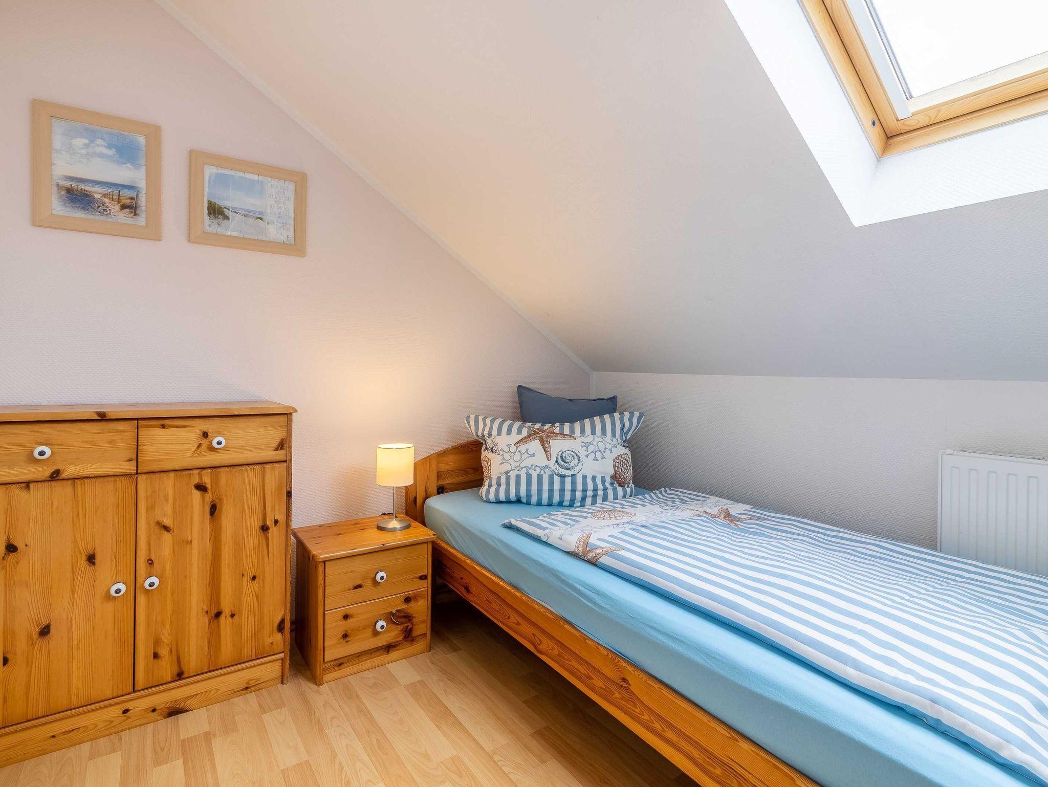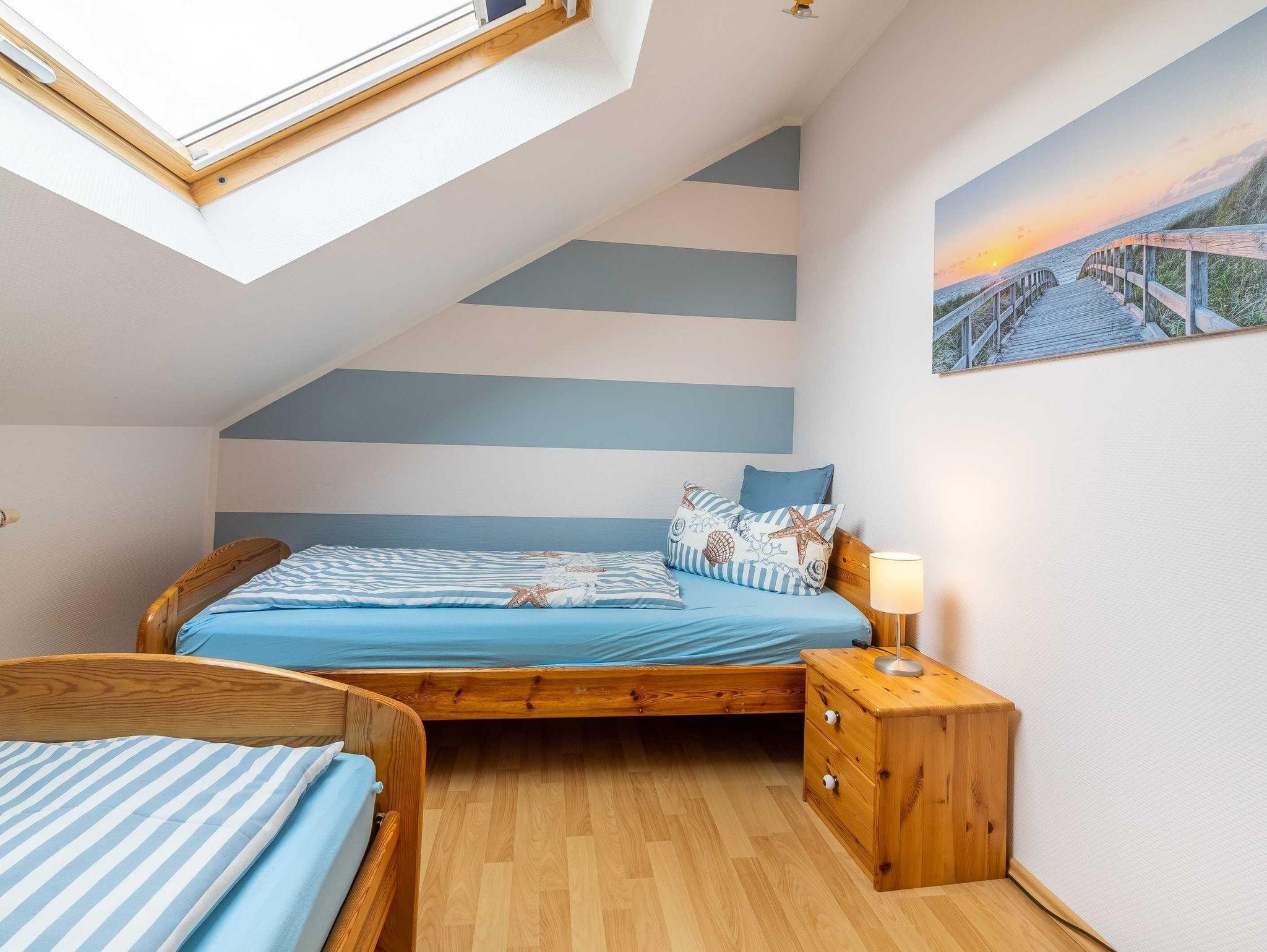 Die Ferienwohnung Sonne verfügt über 120 m² Wohnfläche. Im Erdgeschoss befindet sich das Wohnzimmer mit direktem Durchgang auf die Terrasse und dem anschließenden Garten. Die vollausgestattete Küche ist offen zum Wohnzimmer und verfügt über einen Geschirrspüler, Mikrowelle, Backofen und Herd, Kühlschrank mit Gefrierfach, Toaster, Wasserkocher, Kaffeemaschine etc. Ebenso befindet sich im Erdgeschoss eines von zwei Badezimmern mit Badewanne, Dusche, WC, Waschmaschine und Trockner. Die erste Etage verfügt über zwei Schlafzimmer. Ein Schlafzimmer verfügt über ein Doppelbett, das andere Schlafzimmer über zwei Einzelbetten. Von einem der Schlafzimmer haben Sie direkten Durchgang auf einen Balkon mit Ausblick auf die Felder. Auf dieser Etage ist ein weiteres Badezimmer mit Dusche und WC. Im Dachgeschoss sind zwei weitere Schlafzimmer. Auch hier ist eines der Schlafzimmer mit Doppelbett und ein Schlafzimmer mit zwei Einzelbetten ausgestattet. Die Schlafzimmer mit Doppelbetten sind so geräumig, dass ohne Probleme ein Kinderbett gestellt werden kann. Alle Fenster sind mit elektrischen Rollläden bzw. Nachtrollos ausgestattet. Die Räume lassen sich komplett verdunkeln. Das Objekt befindet sich in ruhiger Sackgassenlage. Der Strand ist wenige Gehminuten vom Objekt entfernt. Ein Parkplatz ist direkt an der Ferienwohnung vorhanden. Haustiere sind auf Anfrage gestattet.