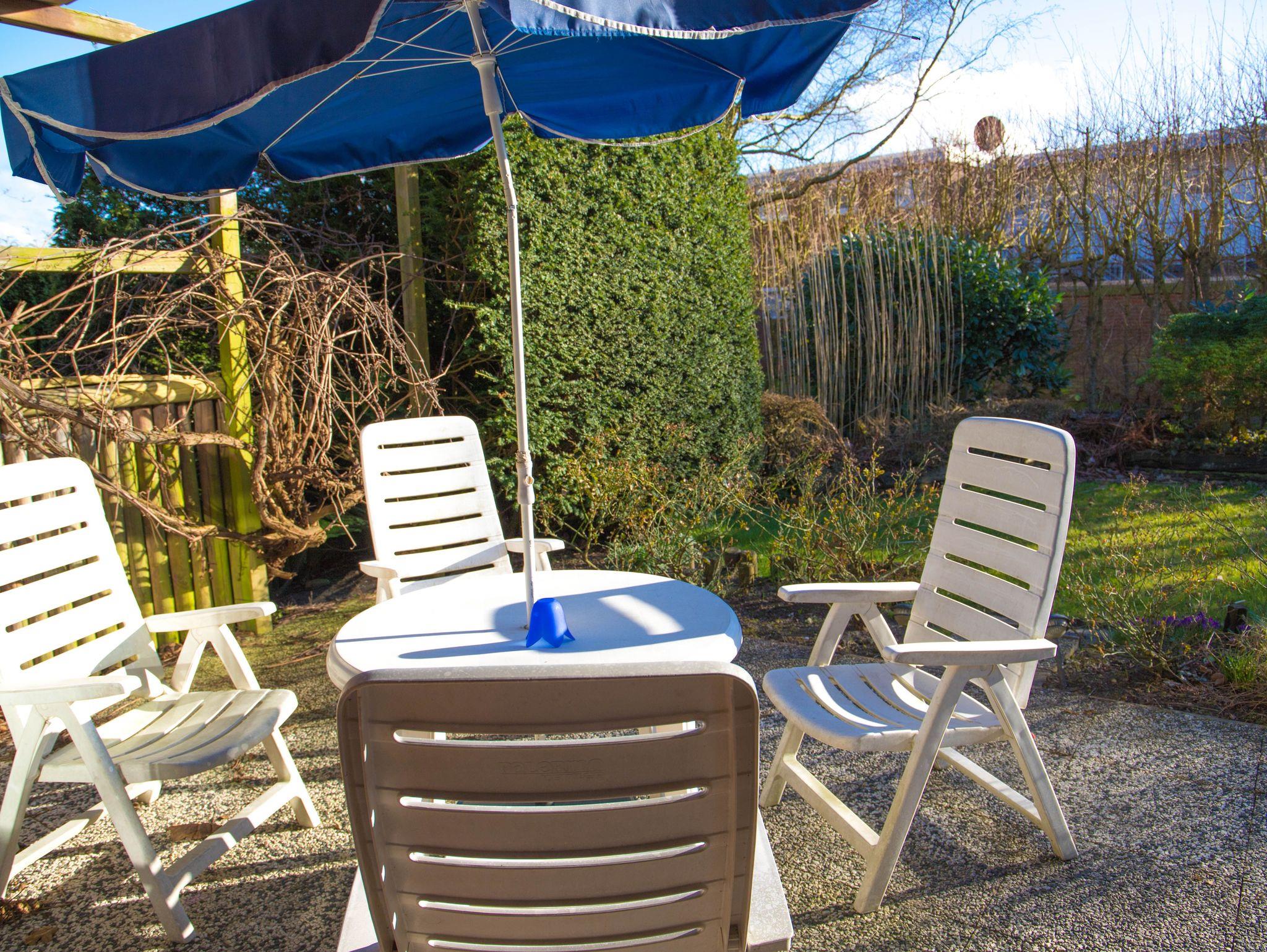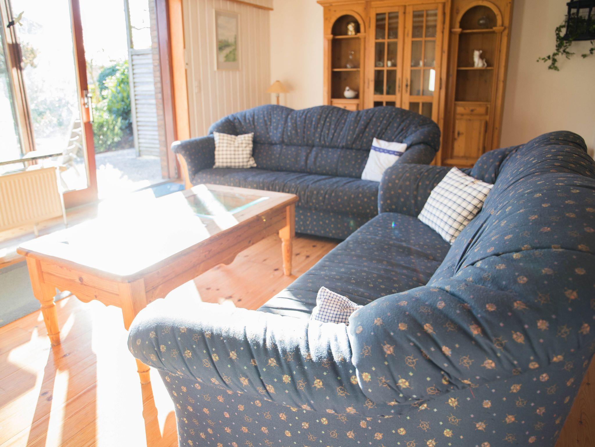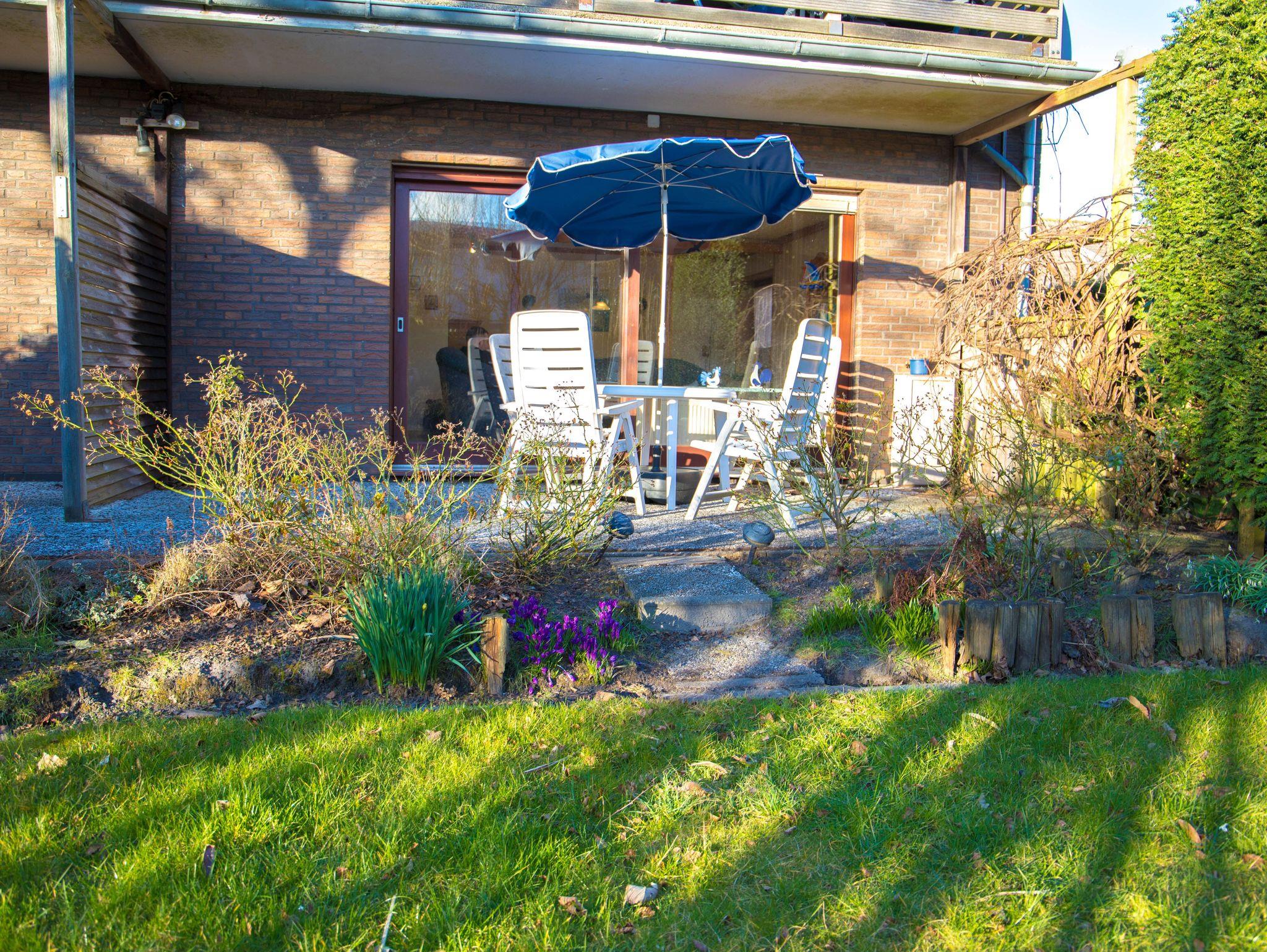 Relaxen Sie in unserem hellen Wohnzimmer, wo Sie am Flachbildfernseher entspannen oder gesellige Abende am Essplatz genießen können. Der direkte Zugang zum Garten mit eigener Terrasse mit Gartenmöbeln und einem Strandkorb lädt ein, die Sonne zu genießen und den Tag ausklingen zu lassen.