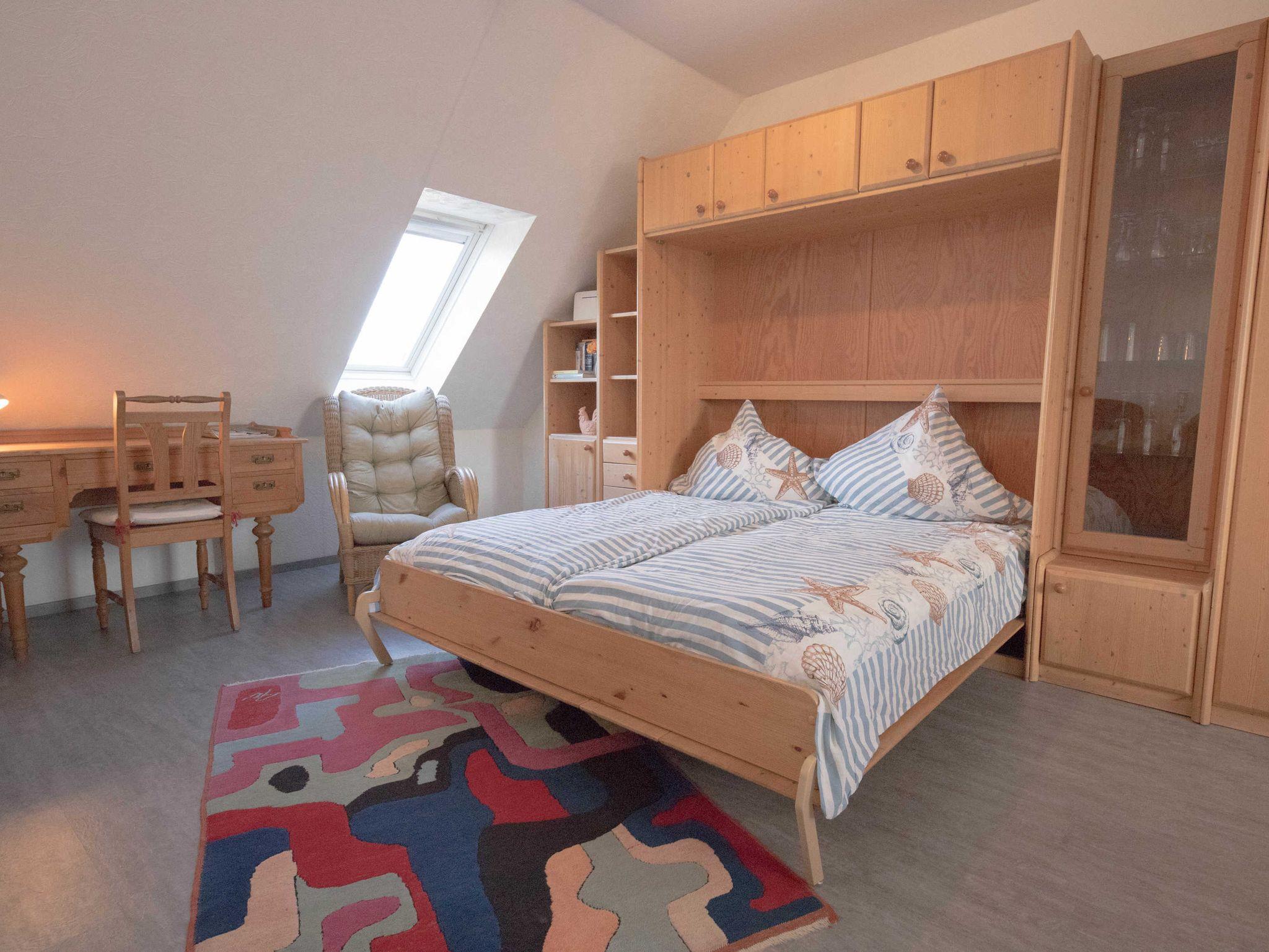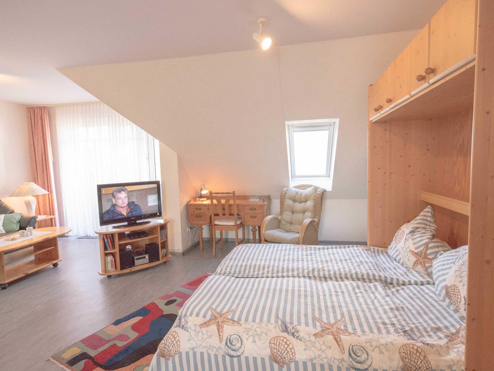 Gemütliches, voll ausgestattetes Appartment für 4 Personen, zentral aber trotzdem ruhig gelegen ca. 200 m vom großen Sandstrand entfernt ... Das Appartment liegt im 2 OG am Ende des Laubengangs. In der unteren Ebene gelangen Sie über den Flur in einen großen Wohnschlafraum , mit gemütlicher Sitzgruppe und einer Schrankwand in der ein Doppelbett integriert ist, eine komplette Küche mit 4 Plattenkochfeld, Mikrowelle, Kühlschrank, Toaster, Wasserkocher und Kaffeemaschine und der Essecke und ein Bad mit Dusche.Vom Balkon aus haben Sie einen direkten Blick auf die Nordsee, Über eine Treppe gelangen Sie in den oberen, separaten Schlafraum,in dem sich zwei Einzelbetten befinden und eine kleine Spielecke für die Kinder.