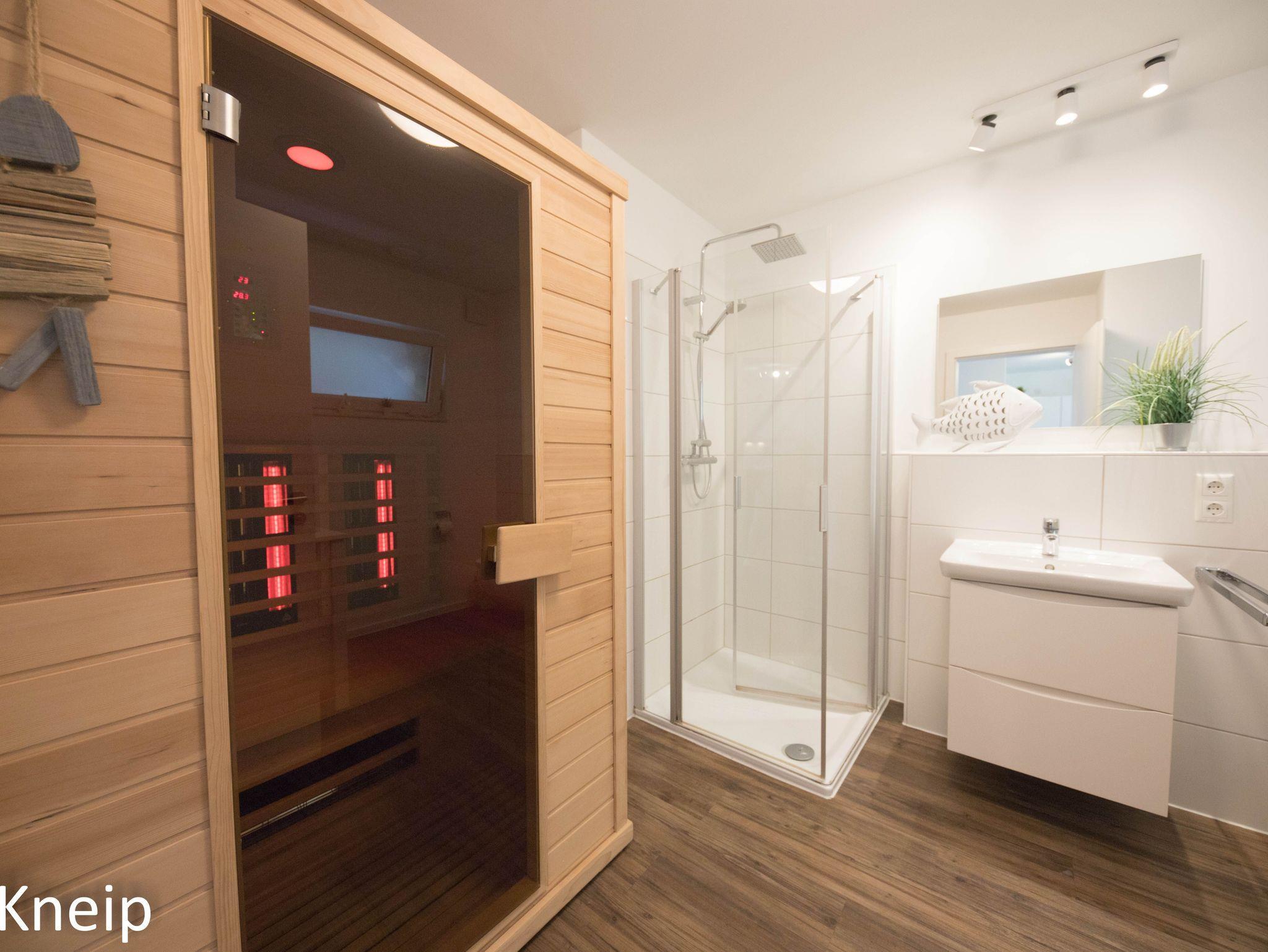 Das Bad als Wellnessoase! Das Badezimmer ist sehr großzügig geschnitten und mit einer modernen Dusche und einer Infrarotkabine ausgestattet. Hier können Sie bei jedem Wetter die Seele baumeln lassen.