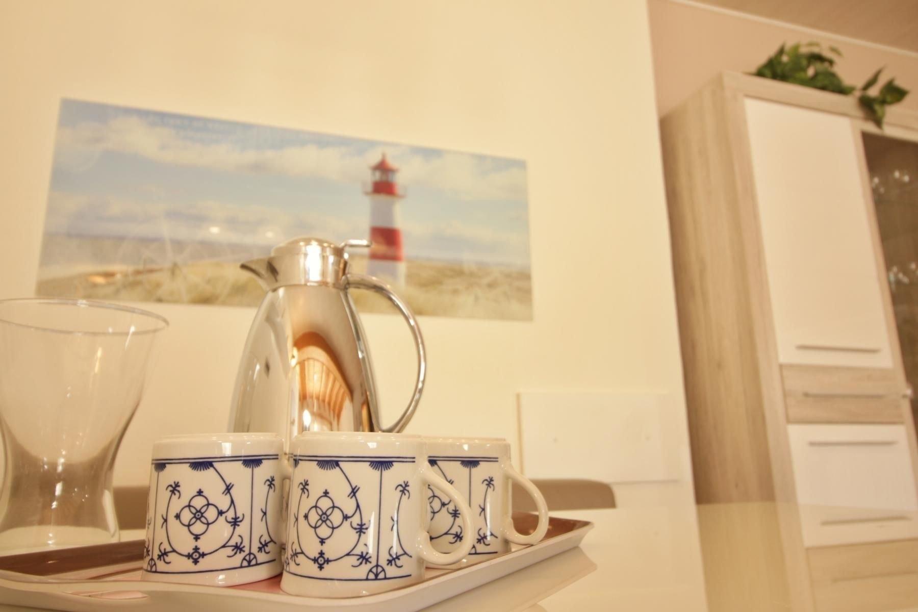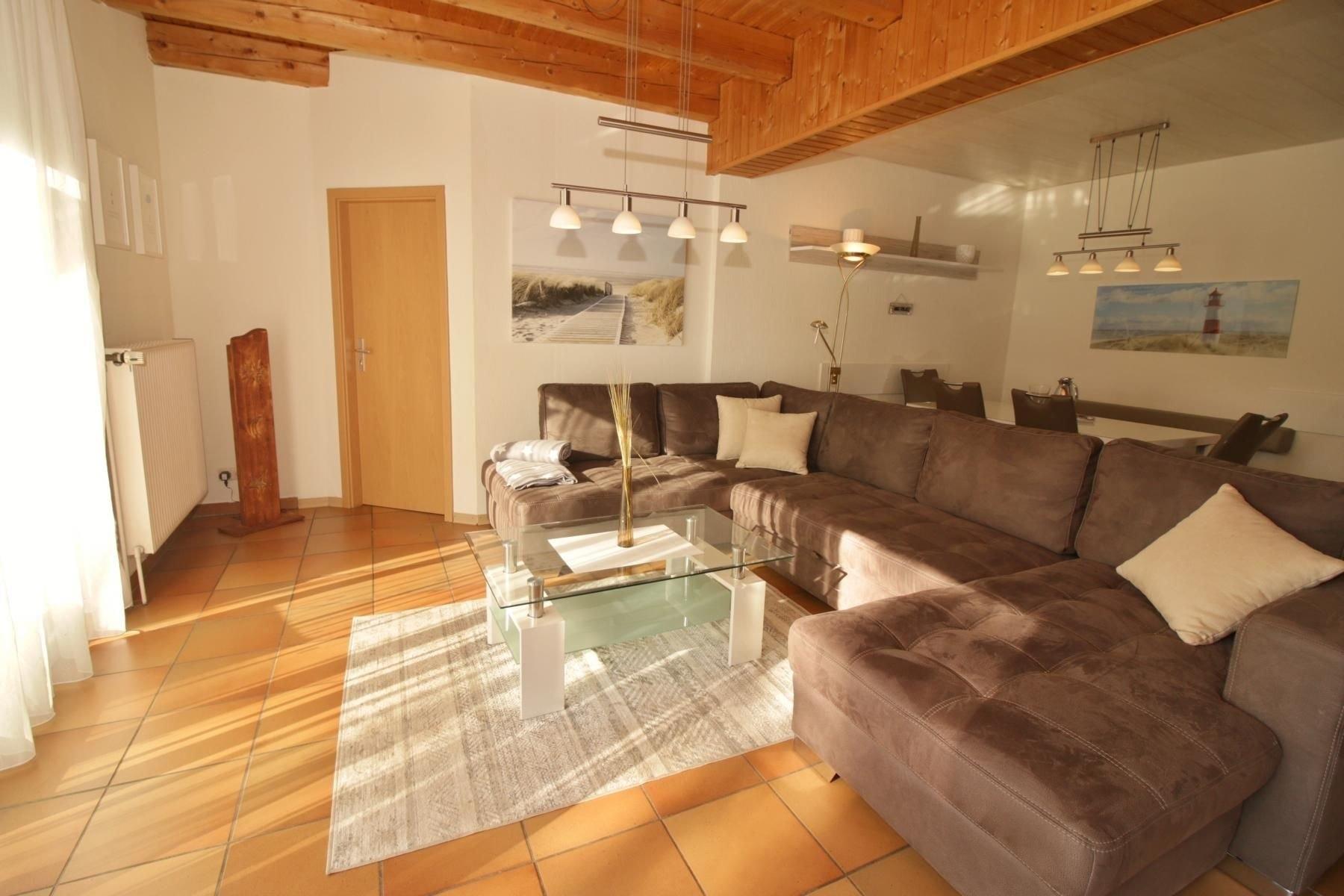 Unser Ferienhaus liegt in Schillig im schönen Inselviertel im Langeoogweg. Bis zum Deich sind es ca. 200m. Es bietet den Komfort eines freistehenden Hauses mit umliegenden Garten.Durch die lichtdurchfluteten Fenster bietet das Haus mit dem großen sehr gemütlichen Wohnbereich einen tollen Ausblick auf die möblierte Außenterrasse.Das Haus ist gemütlich eingerichtet, damit sie sich im Urlaub so wohl wie zu Hause fühlen können.Das Wohnzimmer ist mit TV und DVD-Player ausgestattet und bietet ausreichend Platz zum gemütlichen Beisammensein auf der Couch oder zum kommunikativen Essen an dem Esstisch. Die Küche ist ausgestattet mit Backofen / Herd, Mikrowelle, Spülmaschine. Zusätzlich befindet sich in der Küche die Waschmaschine. Ein großer Kühl- Gefrierschrank lässt alle Einkäufe für den Urlaub problemlos verstauen. Wir haben zwei Schlafzimmer, eins mit Doppelbett und ein Zimmer verfügt über zwei Einzelbetten.