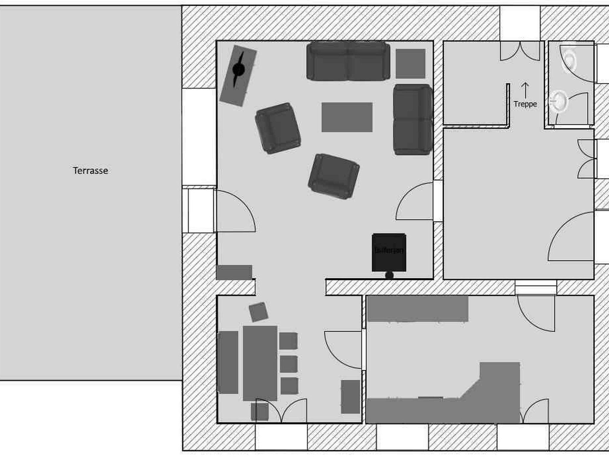 Der Wohnraum ist mit großzügigen Sofas und Sesseln mit Liegefunktion ausgestattet, der gemütliche Bullerjan-Holzofen sorgt für zusätzliche Wärme und Behaglichkeit. Ein Flachbildfernseher und eine moderne Hifi-Anlage mit Anschluss für IPhone/i/Pad sowie ein Fundus an Spielen und Lesefutter runden das Gesamtbild ab.