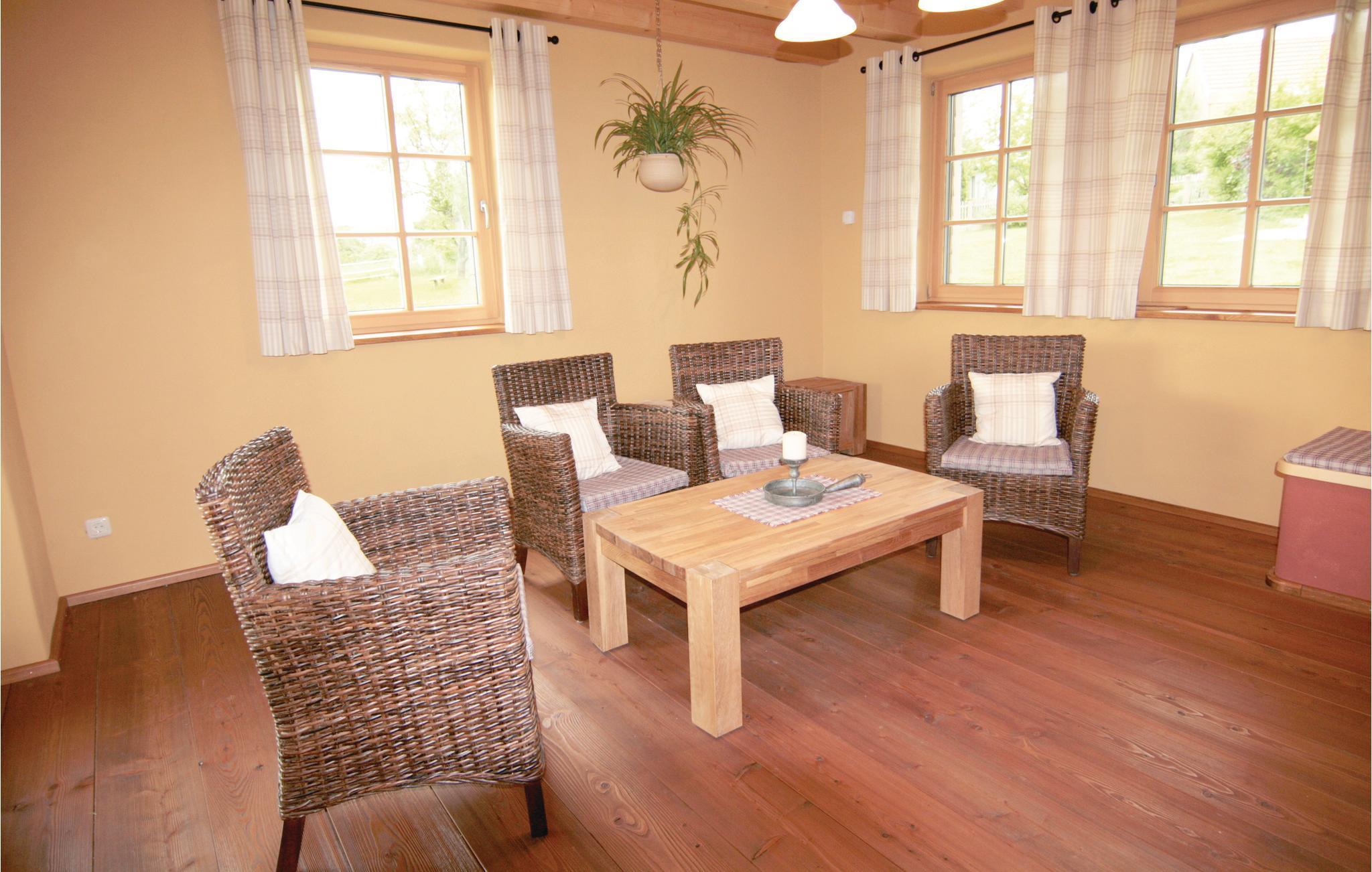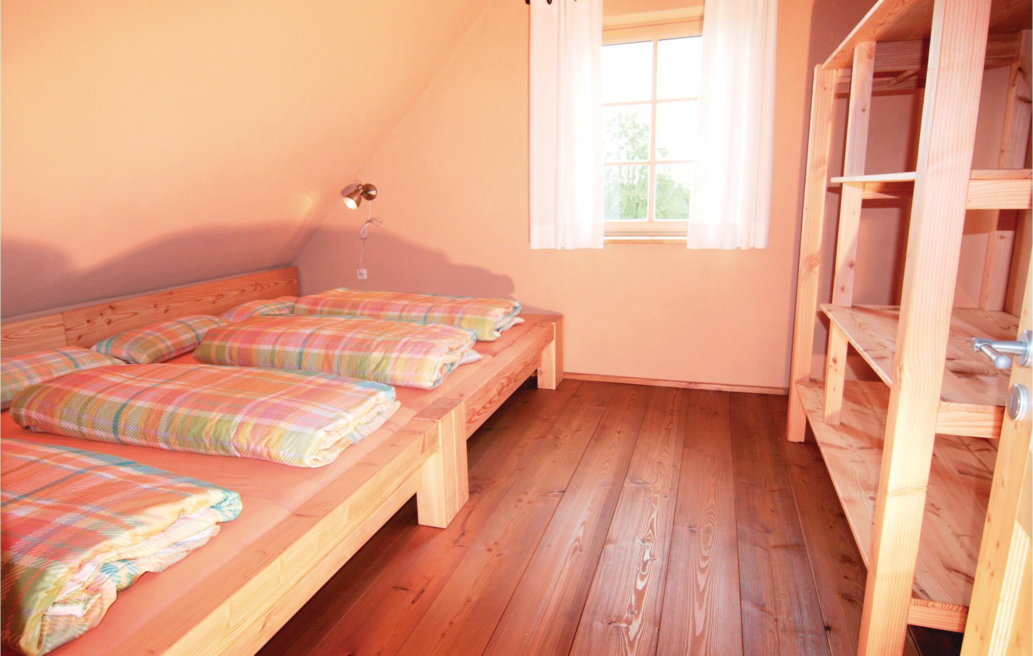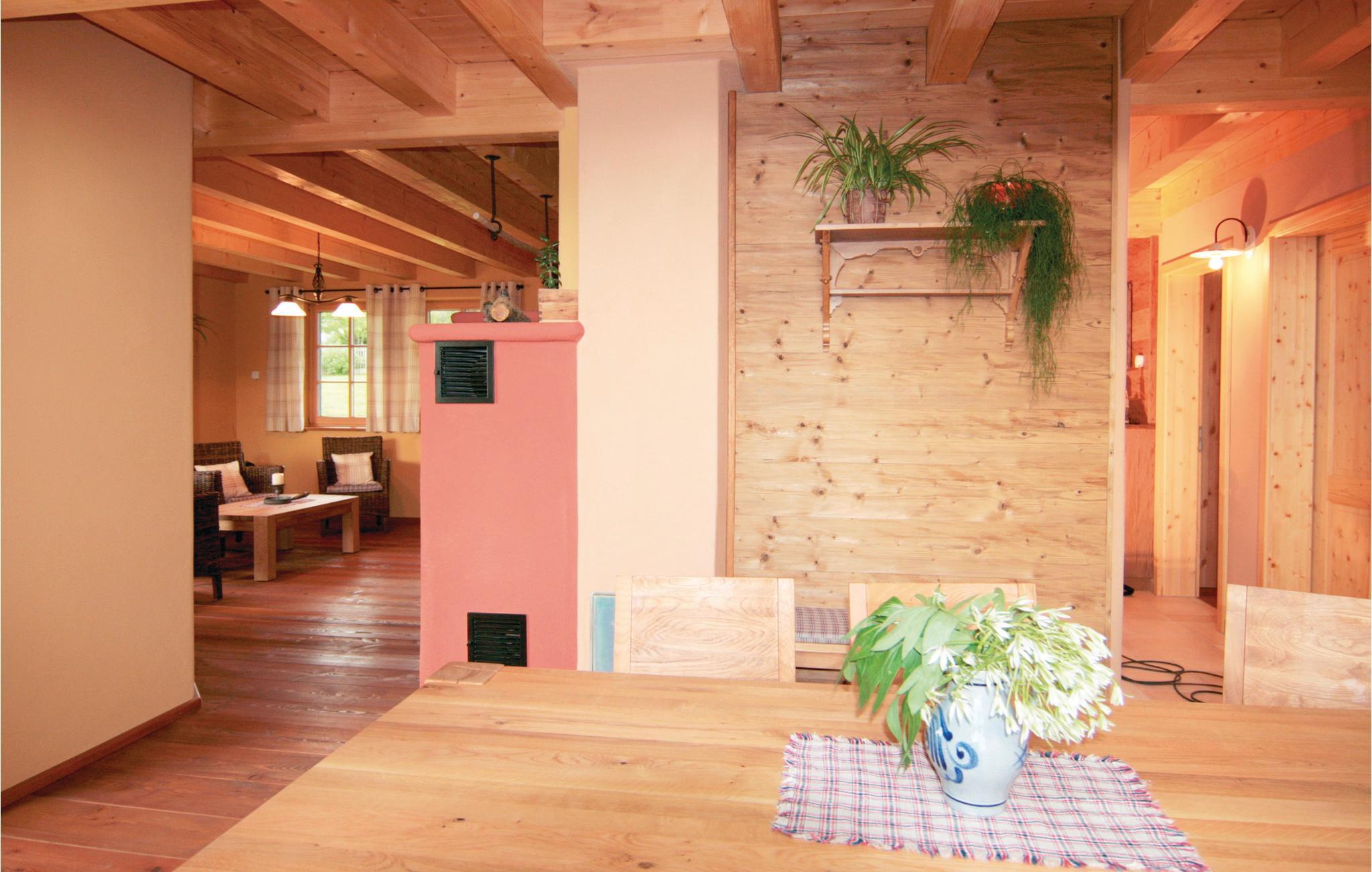 Feriehuset er innredet i en moderne landlig stil og utstråler en hjemmekoselig hygge takket være tremøbler av høy kvalitet. Spesielt i den kalde årstiden utstråler kakkelovnen med ovnsbenk i stuen en ekstra koselig varme. Stuen i første etasje flyter inn i spisestuen med et stort spisebord og det fullt utstyrte kjøkkenet. Også i første etasje er et soverom og et bad, som kan nås barrierefritt.