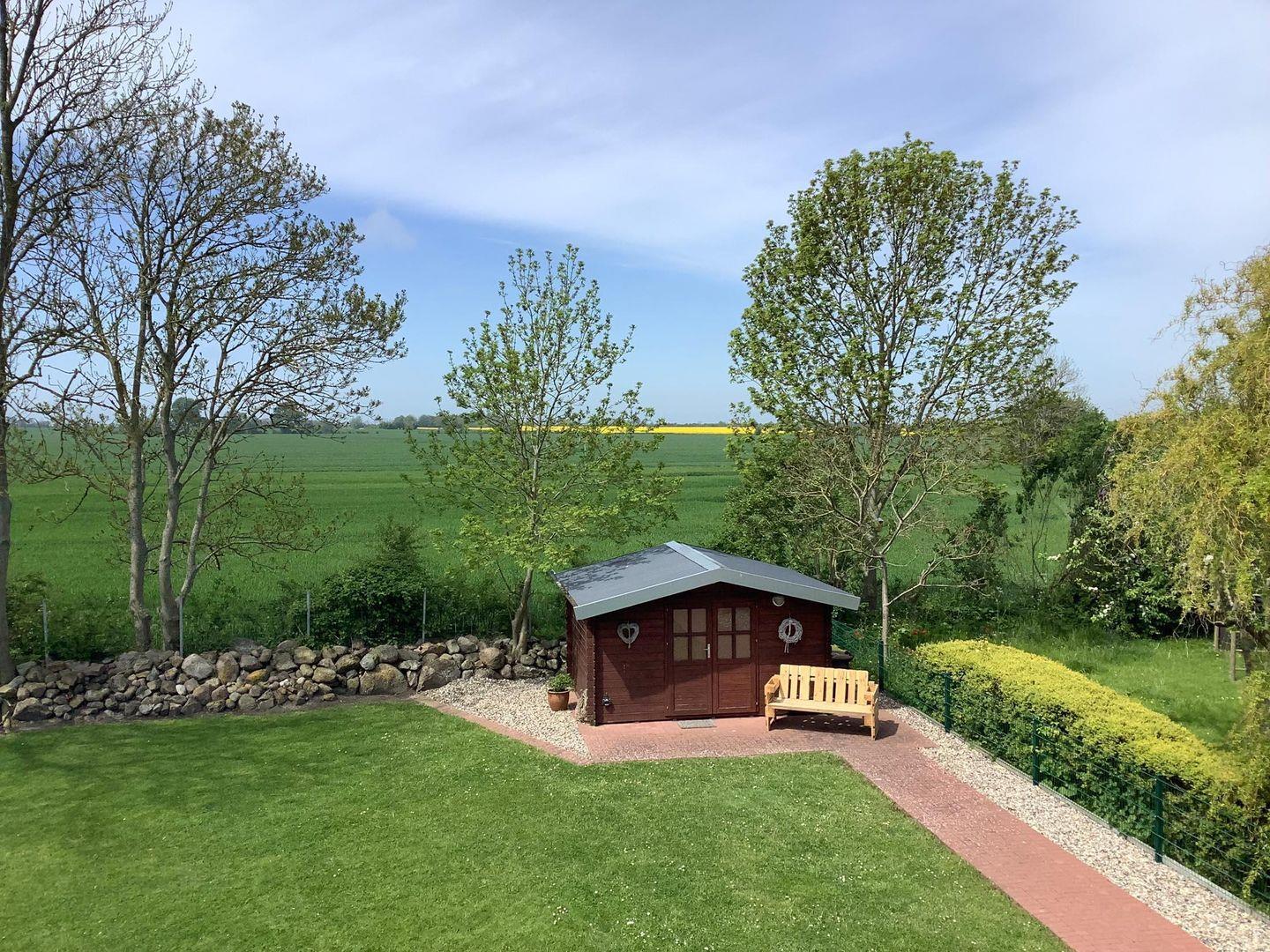 Schlagsdorf ist ein kleines Dorf im schönen Inselwesten mit einem idyllischen Dorfteich.Das Ferienhaus liegt sehr ruhig am Dorfrand und hat einen tollen Ausblick über die angrenzenden Felder in Richtung Ostsee. Der Badestrand mit Strandkörben in Bojendorf ist ca. 3 km entfernt. Ebenso weit ist es zum Strand in Westermakelsdorf, einem beliebten Surfrevier. Auf den vielen Wegen durch die Felder und auf den Deichen kann man herrliche Fahrradausflüge machen, z.B. zu den Leuchtürmen Flügge oder Westermakelsdorf und zum kleinen Hafen in Orth. Einkaufsmöglichkeiten gibt es im 3 km entfernten Petersdorf. Außer einem Supermarkt und einem Discounter gibt es einen Bäcker, einen Friseur, eine Arzt- und eine Physiotherapiepraxis. Kleine Restaurants, Cafés und Boutiquen laden zum Verweilen ein. Auch die schöne Petersdorfer Kirche und das Wasservogelreservat Wallnau sind einen Besuch wert.