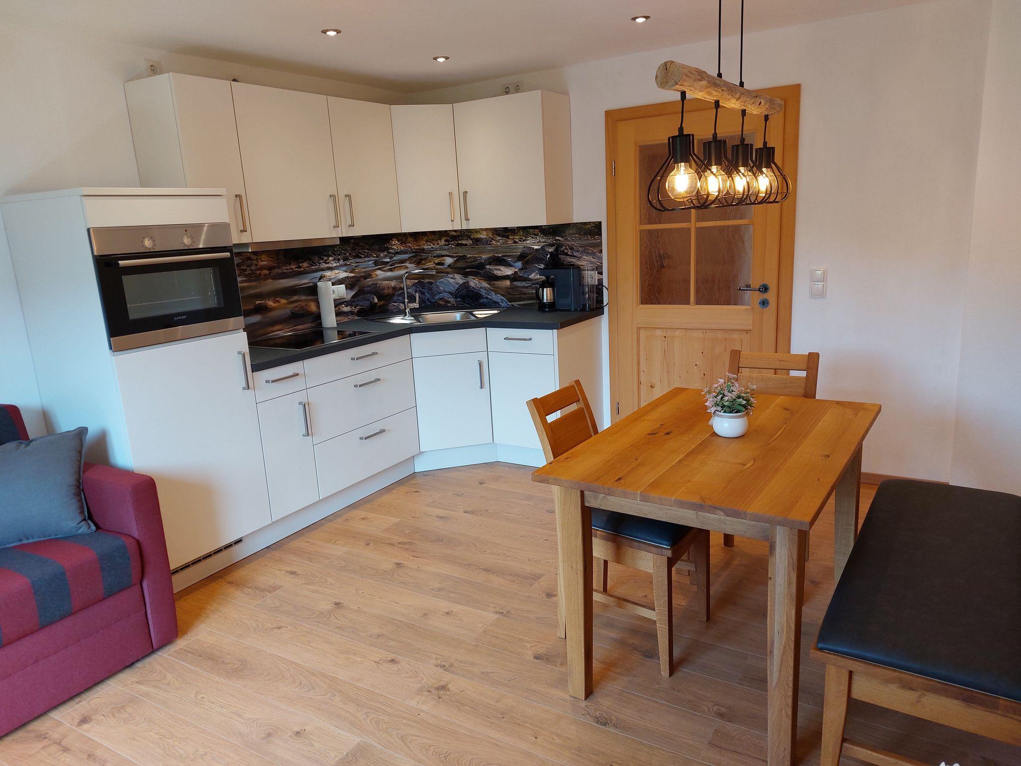 Unsere neue Ferienwohnung im 1. OG des Pilzhofes, mit seperaten Eingang, ist ideal für zwei Personen die im wunderbaren Achental eine schöne Zeit verbringen wollen. Sie verfügt über ein Schlafzimmer mit Doppelbett, einen Wohn-und Essbereich sowie ein Bad mit großer ebenerdiger Dusche. Beide Zimmer haben einen Zugang zum Balkon, der jeweils einen wunderschönen Blick auf die Kampenwand (nordseits) sowie die Streichenkirche (südseits) ermöglichen. Zusätzlich finden Sie Liegen auf einer Freifläche neben dem Haus. Das Parken ist direkt am Haus möglich. Selbstverständlich ist kostenfreies WLAN inklusive.