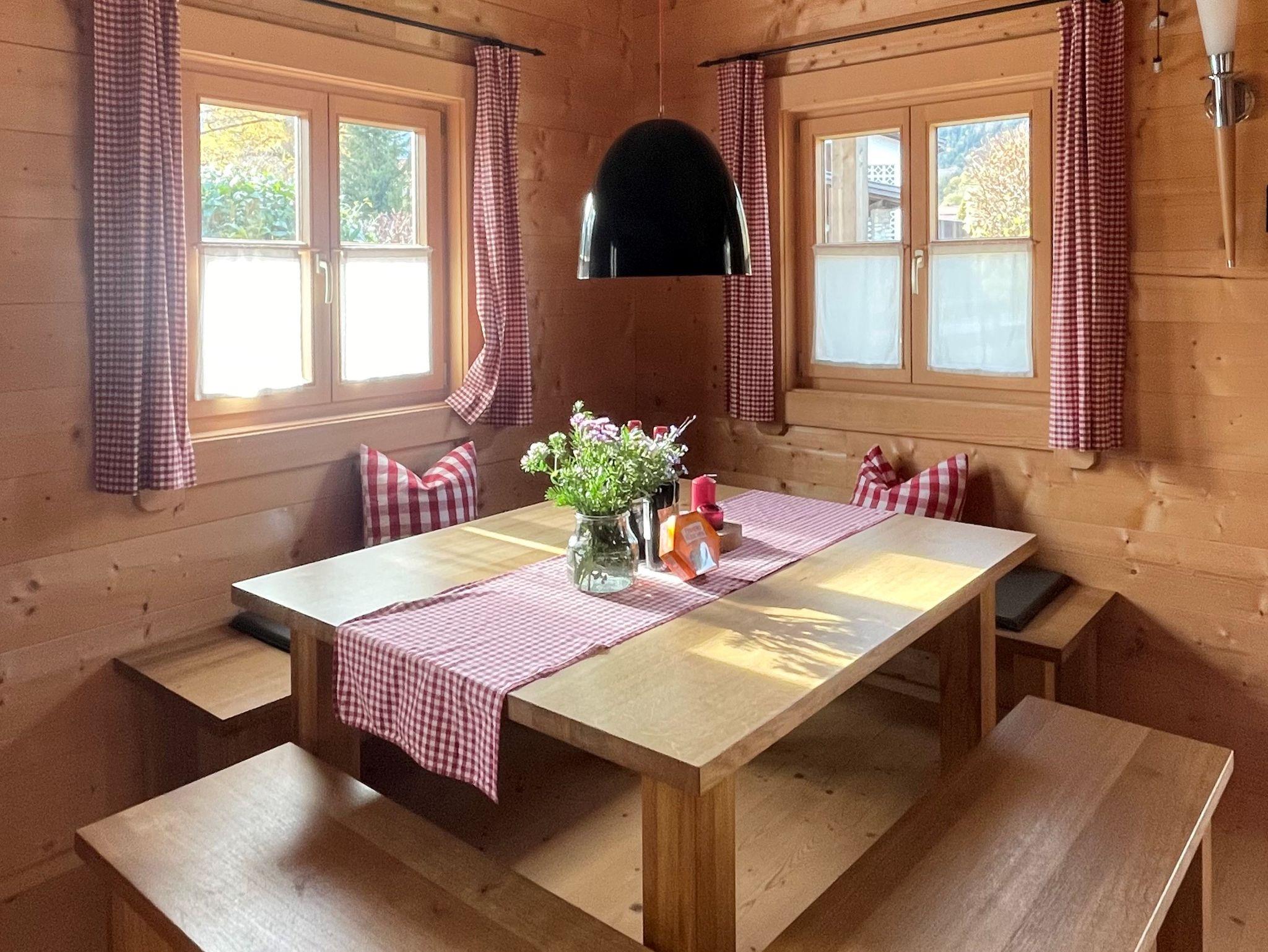 Das Chalet Chiemgau ist ein Ferienhaus für zwei bis vier Personen und besteht aus einem Eingangsbereich, einem Bad, einem Schlafzimmer sowie einem großzügigen Wohn- und Essbereich mit Küchenzeile. Die Einrichtung ist neuwertig und die fast ausschließlich aus Massivholz gefertigten Möbel befinden sich in einem einwandfreien Zustand.