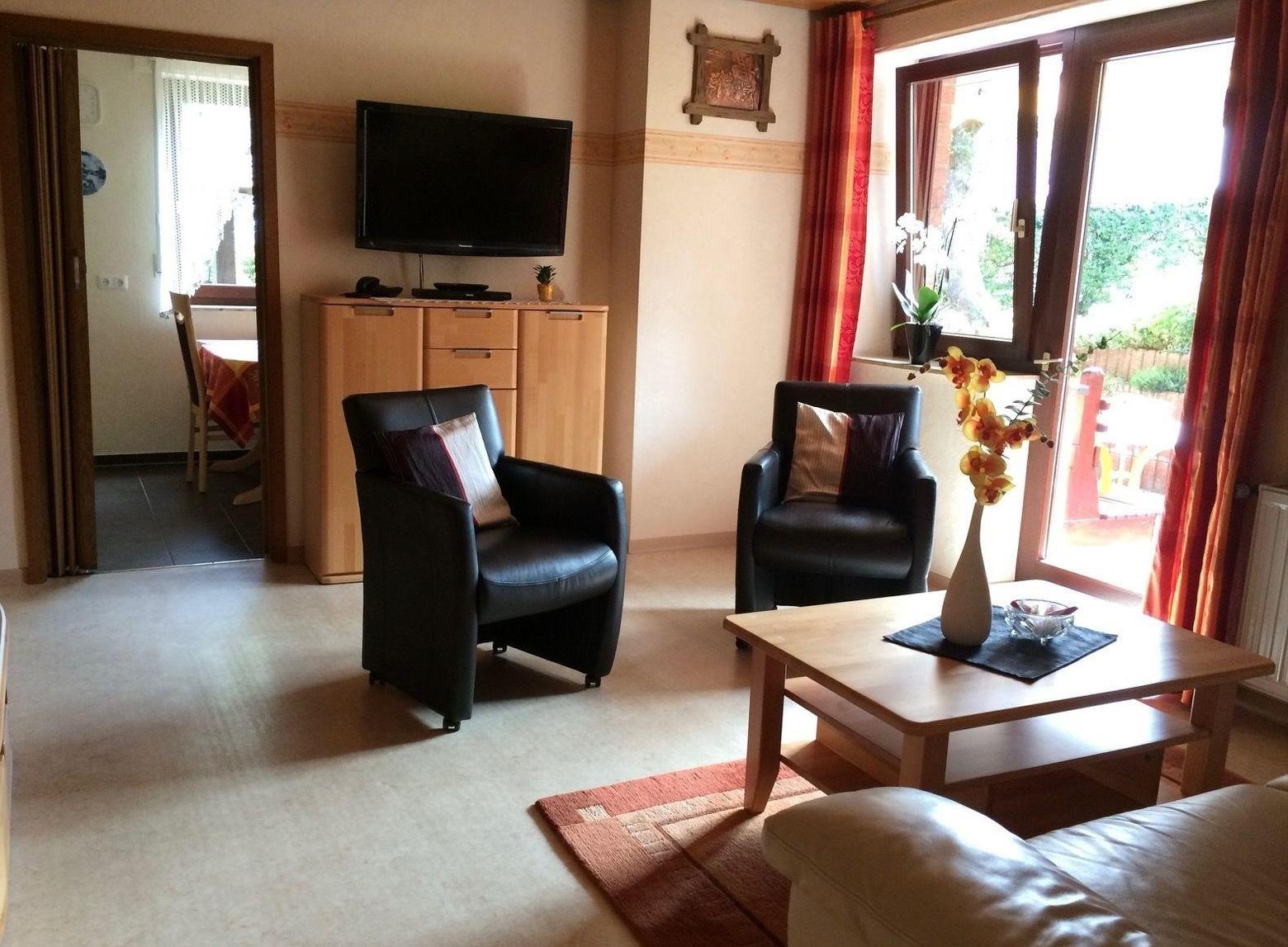 Die 4-Sterne-Wohnung im Erdgeschoß mit Terrasse ist komfortabel und gemütlich eingerichtet, ist ca. 75 qm groß, für 2-3 Personen, mit Schlafzimmer, Wohnzimmer und sep. Küche sowie Bad und Flur. Ausstattung: W-LAN, SAT-TV, CD-Spieler, Radio, Telefon - es ist einfach alles da!