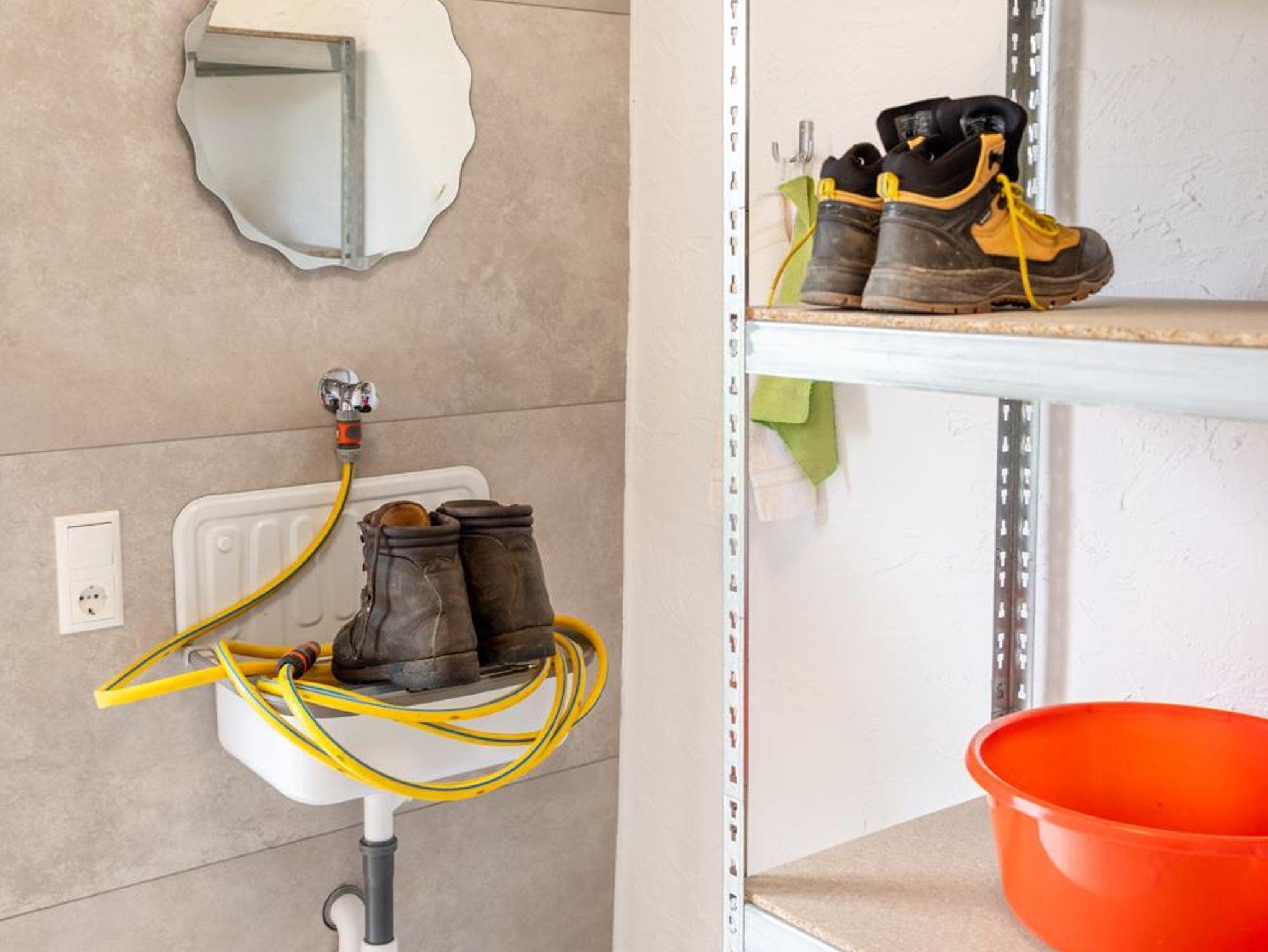 Sollten Ihre Sachen einmal nass oder schmutzig geworden sein, so finden Sie im Keller einen Trockenraum mit Waschmaschine.