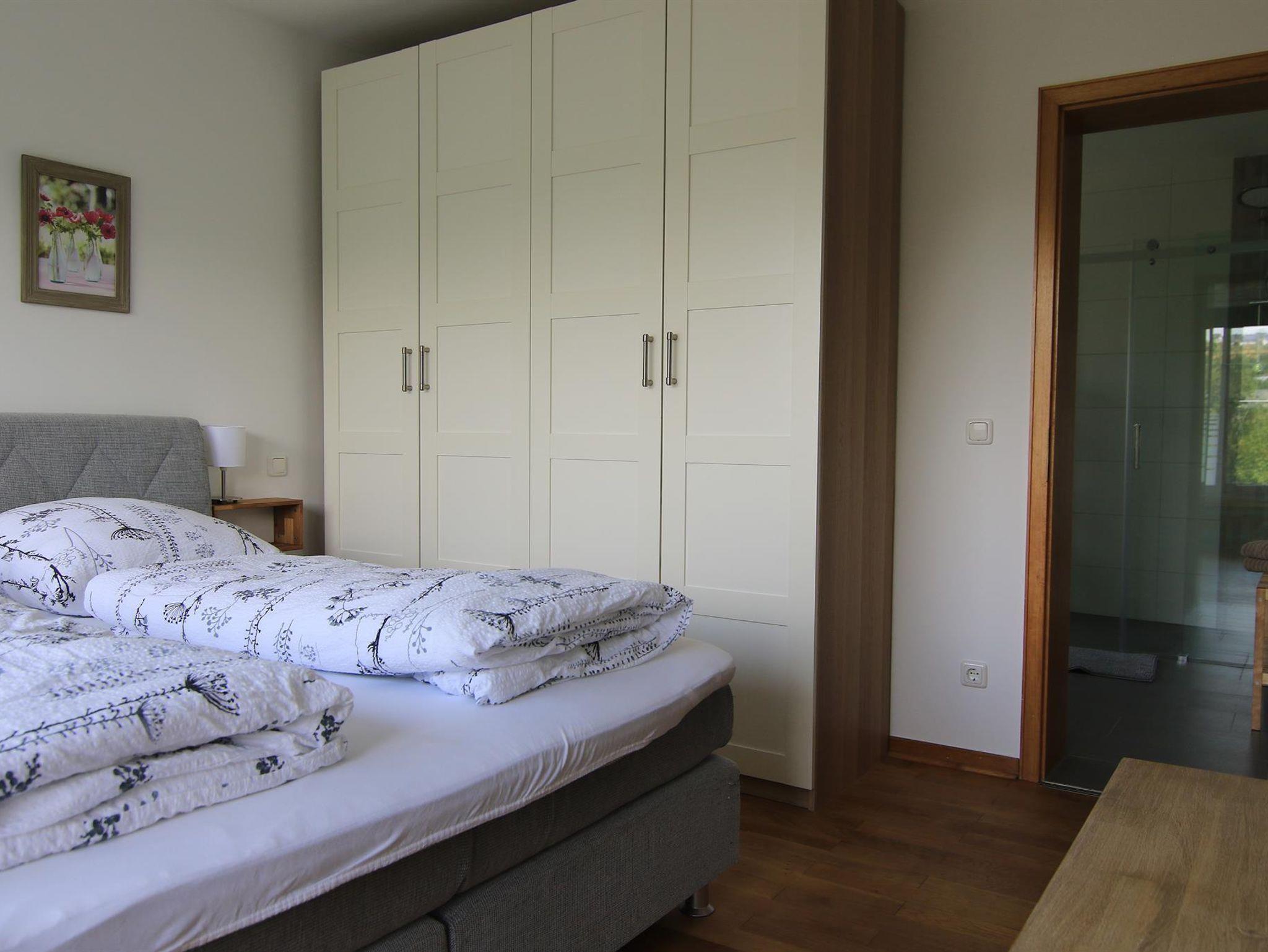 Vom großen gemütlichen Schlafzimmer gelangt man direkt in das Badezimmer.