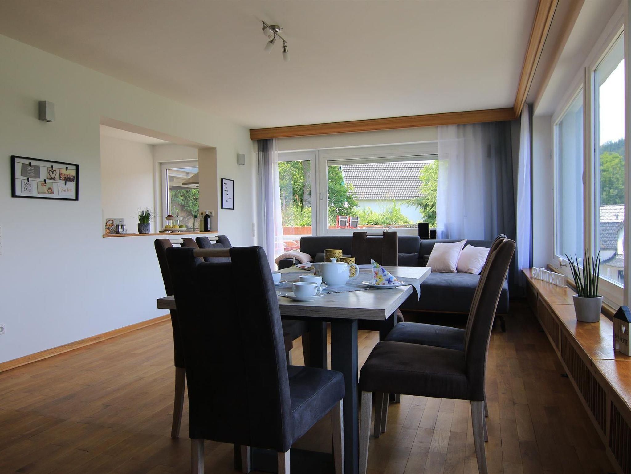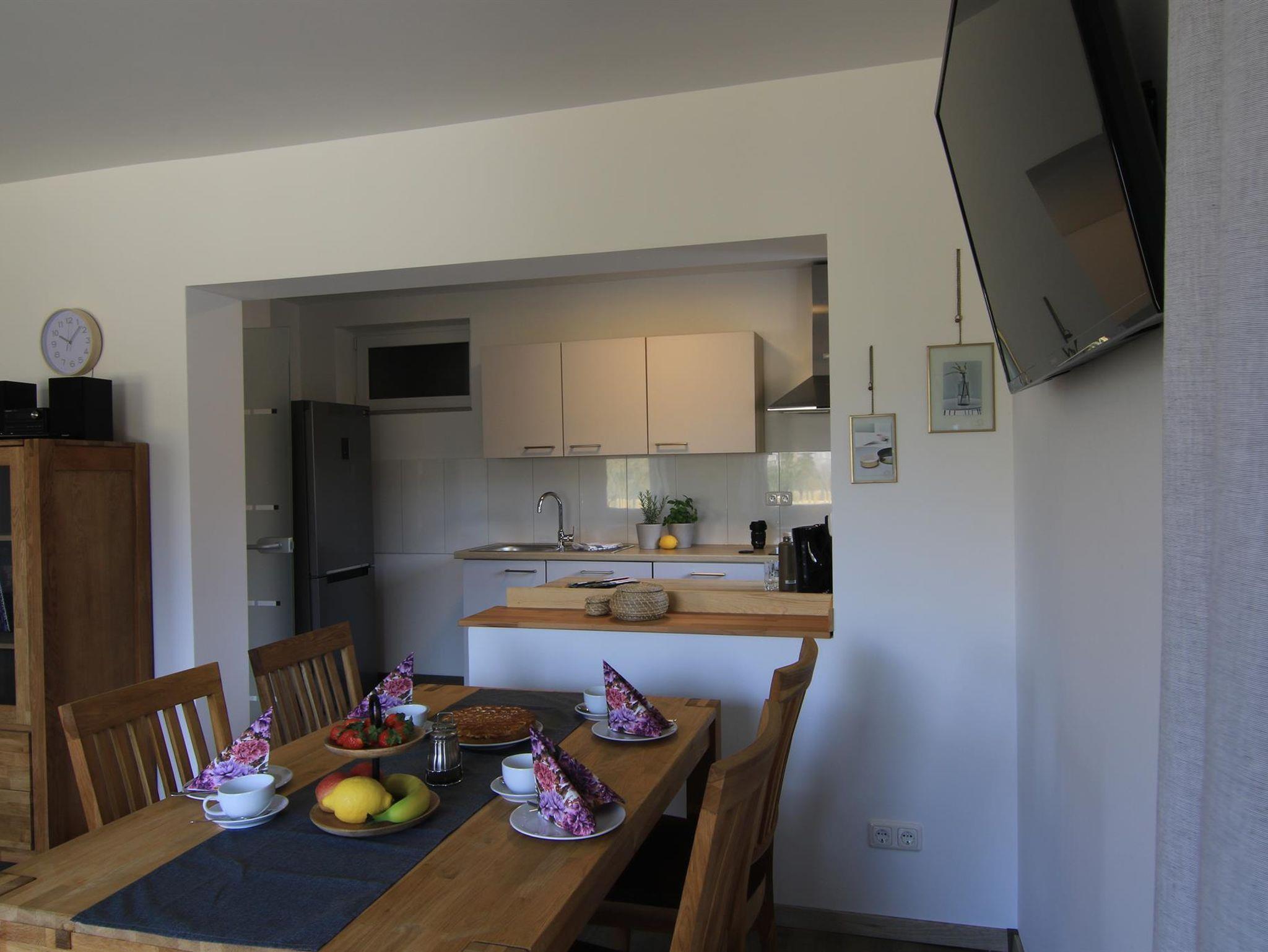 Die offene Küche mit dem geräumigen Wohn-/ Esszimmer lädt zum Verweilen ein.