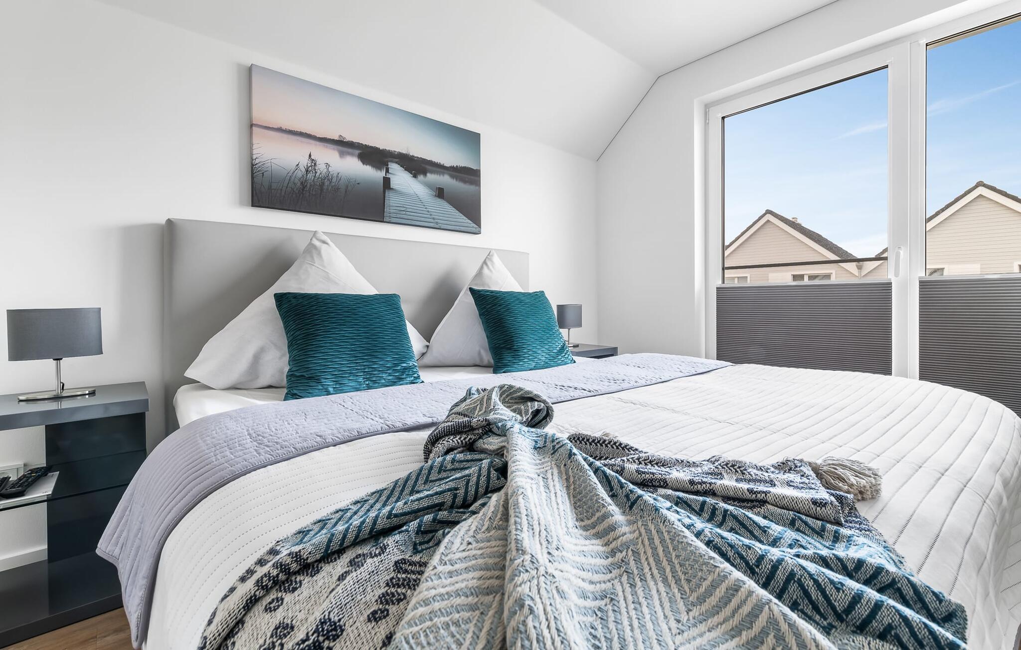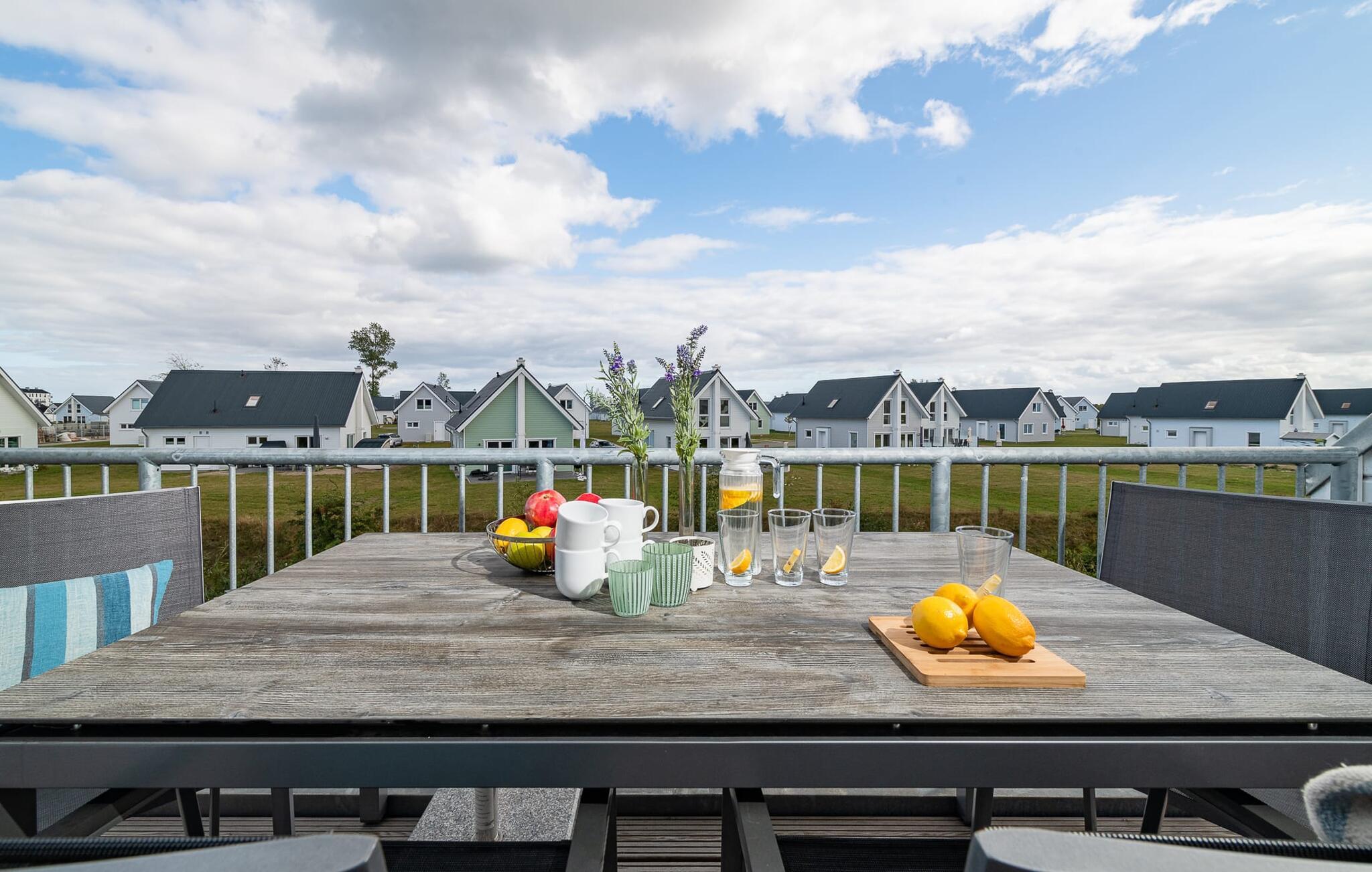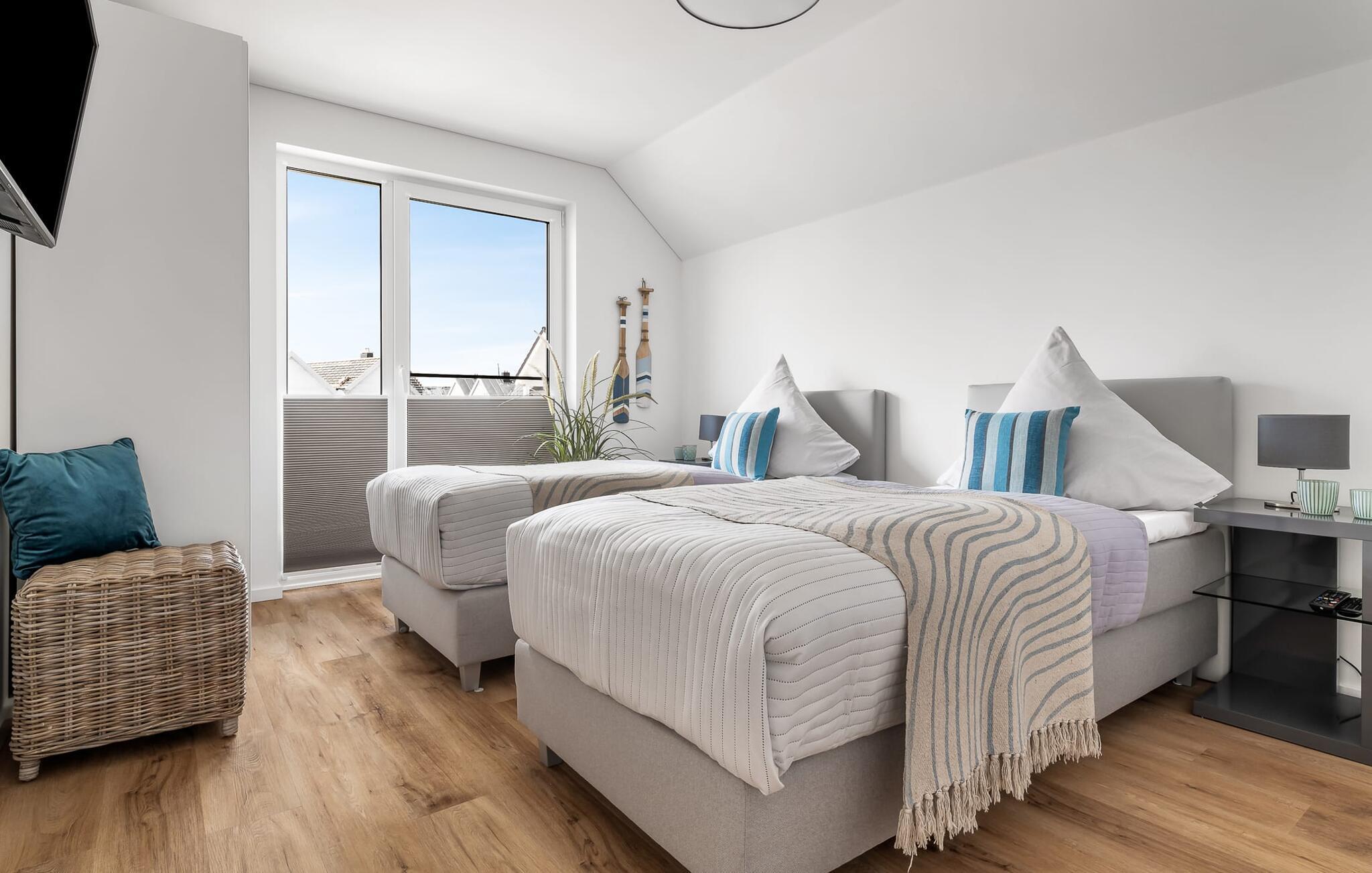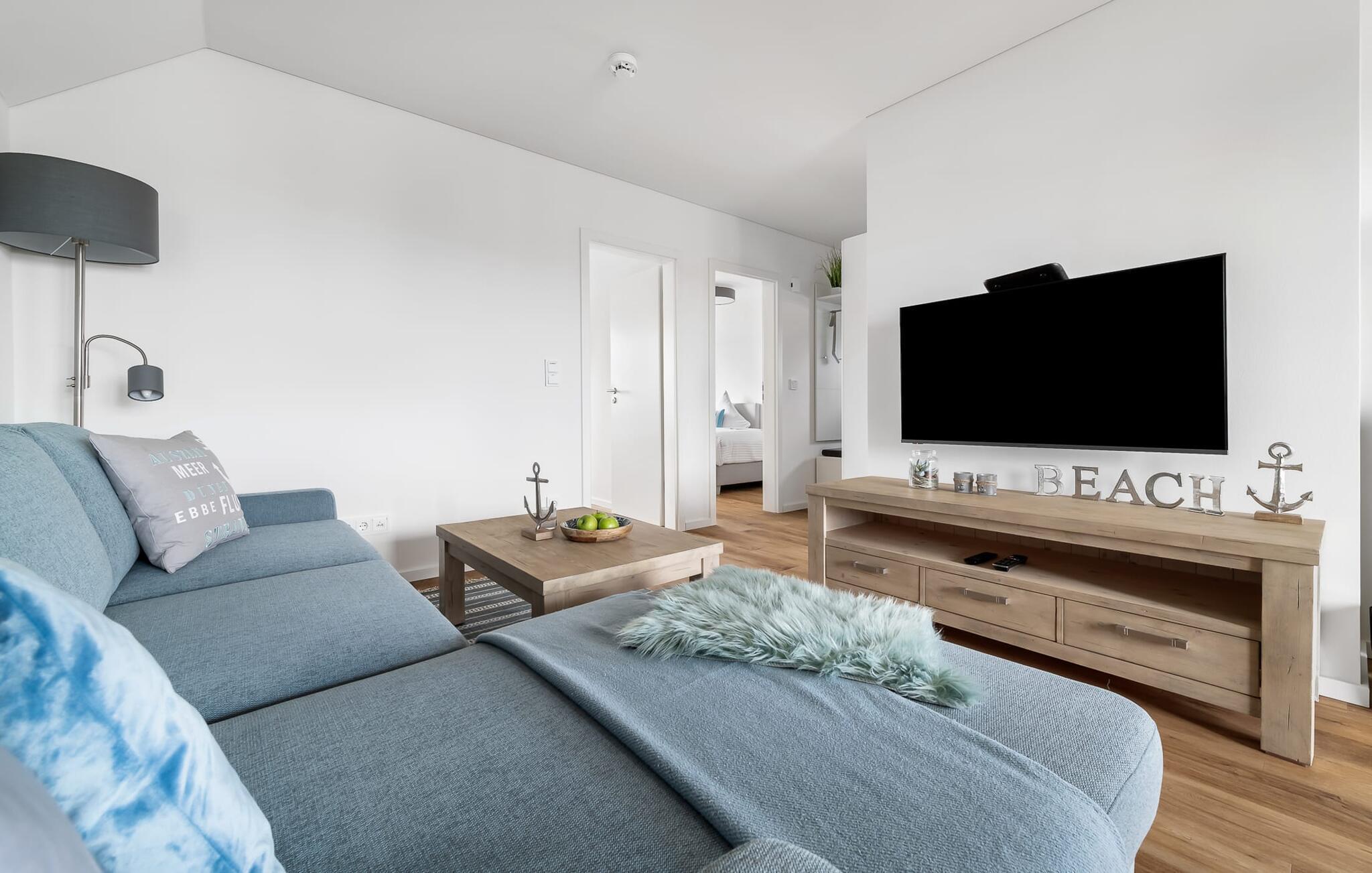 Sandstranden Weidefeld med kiosk, restaurant og strandstoler ligger innen gangavstand og er et attraktivt reisemål når som helst på året. Minigolfbanen i maritim stil ligger også i umiddelbar nærhet og er en fryd for både store og små. Småbåthavnen og havnepromenaden med supermarked og restaurant ligger også bare noen minutters gange unna.
