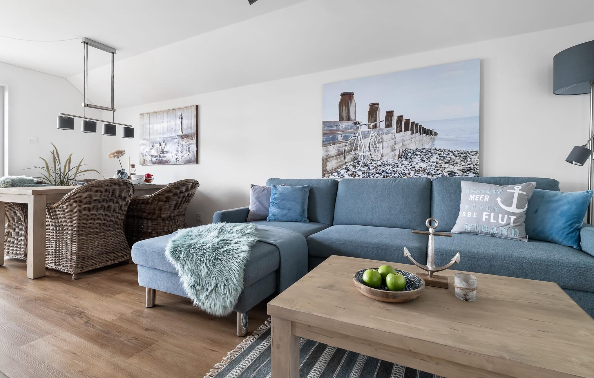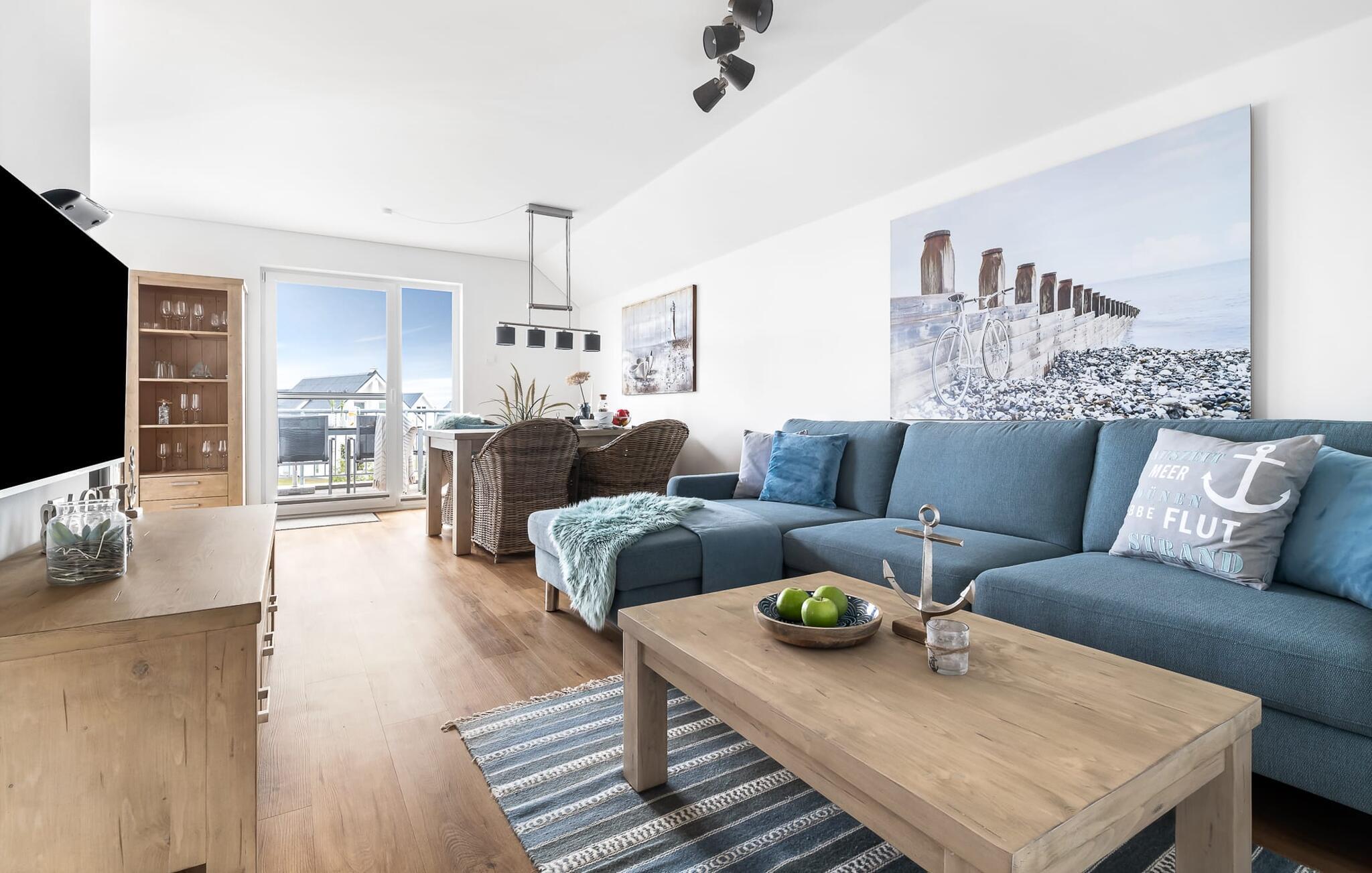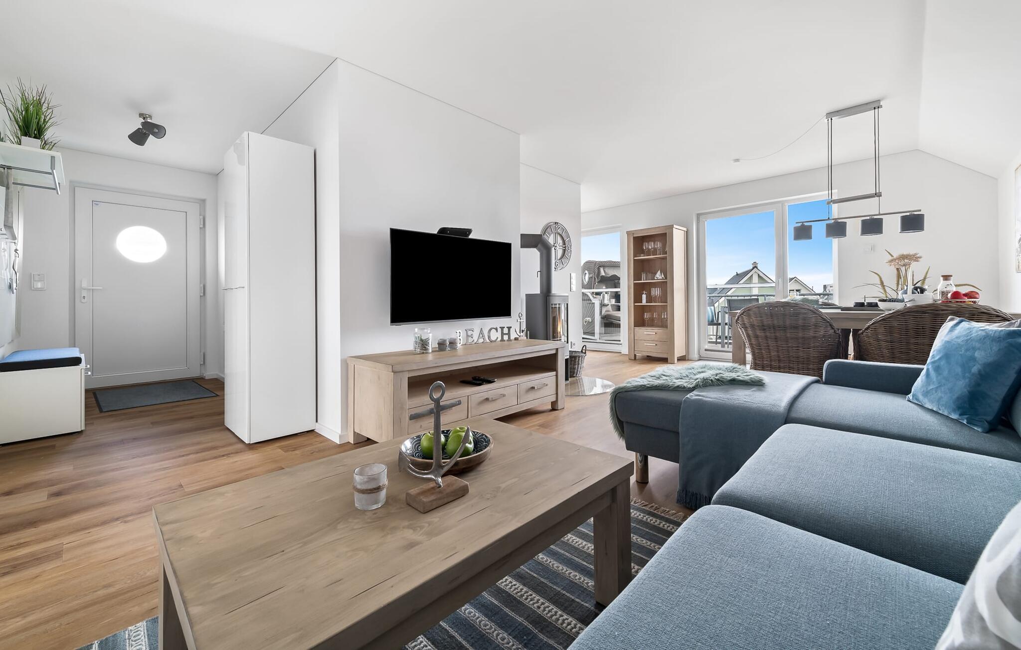 Når du kommer inn i leiligheten, blir du møtt av det lyse og vennlige oppholdsrommet med vinduer fra gulv til tak. De friske, nordiske møblene skaper umiddelbart en følelse av ferie. Slapp av og nyt Østersjøsolen i strandstolen på den romslige terrassen, eller tilbring kvelden med en god bok og et glass vin i den koselige sofaen foran den knitrende peisen. Ren avslapning!