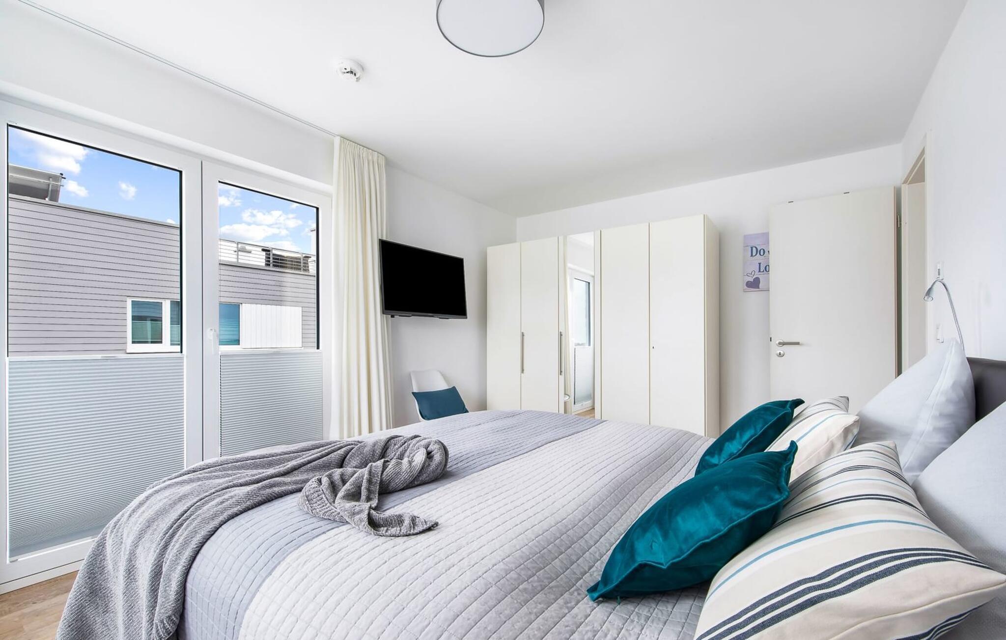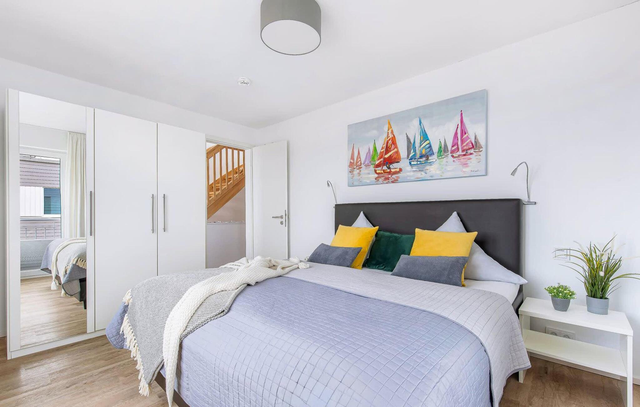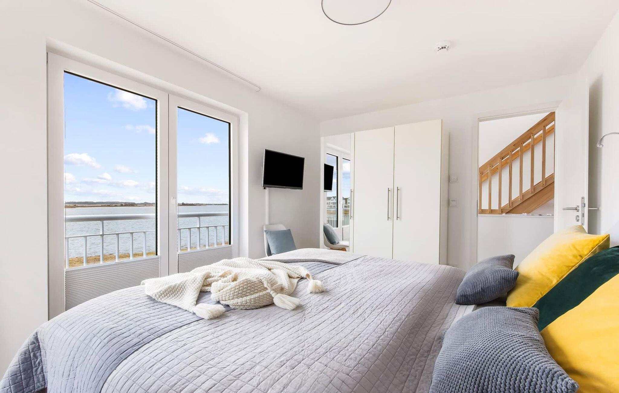 I første etasje ligger avslapningsområdet. Her er det to soverom med god plass til å lade batteriene. I hovedsoverommet med direkte utsikt over Schlei kan du våkne opp og sovne med en drømmebakgrunn. Et annet soverom har utsikt over gaten til seil- og sportsbåthavnen på feriestedet ved Østersjøen. På dette nivået finner du også et komplett bad med dusj og avslappende boblebad for et privat velværeprogram.