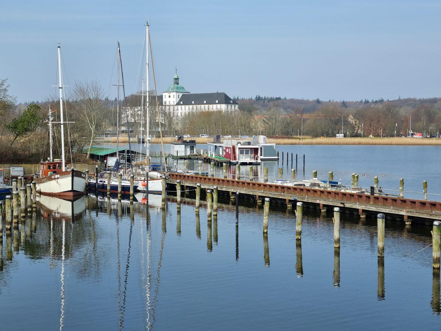 Die Ferienwohnung Schleiloge überwältigt mit dem Panoramablick über den Ostseeausläufer aus nahezu jedem Winkel der Wohnung. Egal ob am Esstisch, direkt an der Fensterfront, mit Blick auf die Schlei und die Sehenswürdigkeiten Schleswigs, wie den Dom, oder auf dem großzügigen Sofa und auch von der offenen Küche aus, ist der Blick stets auf diese Naturschönheit gerichtet. Die kleine Loggia rundet dieses optische Vergnügen in der Gänze ab.